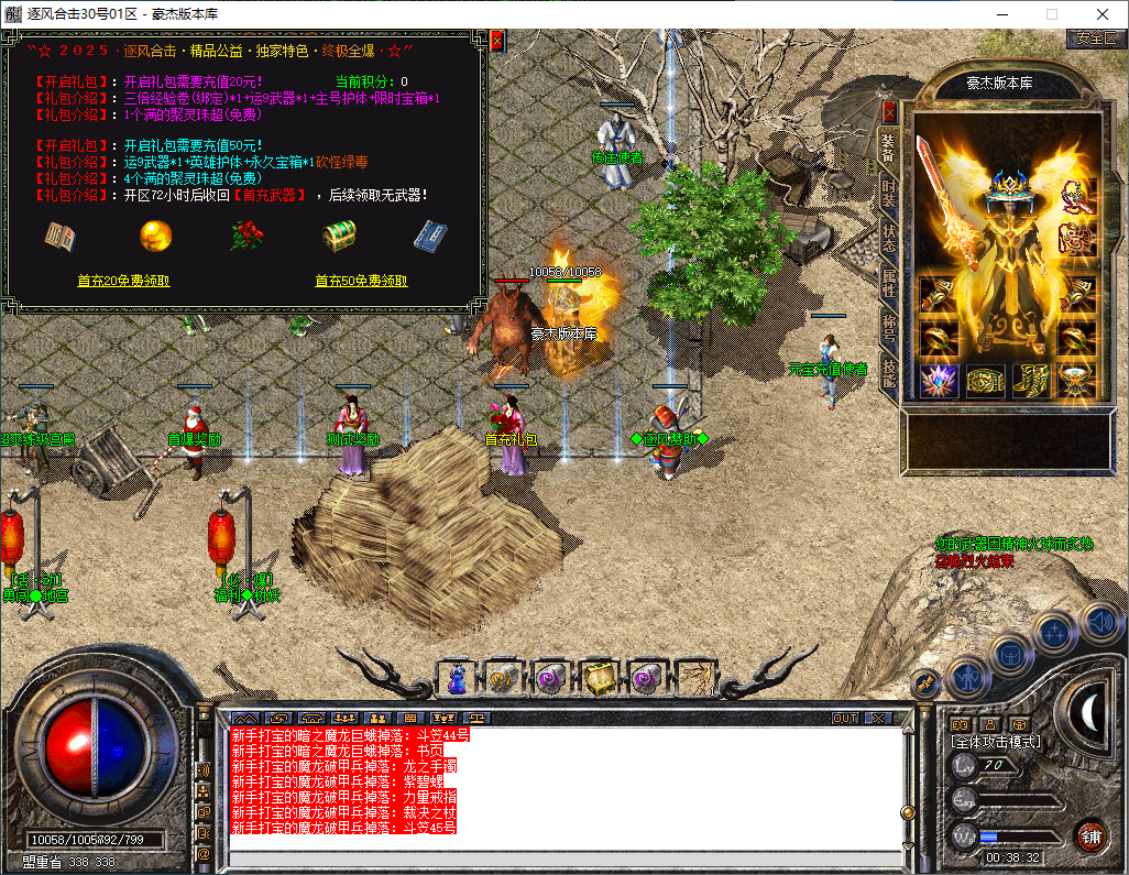 所有职业配合双运9威力更大,前期建议100米首冲礼包领取9套小红剑让你成长更快!!