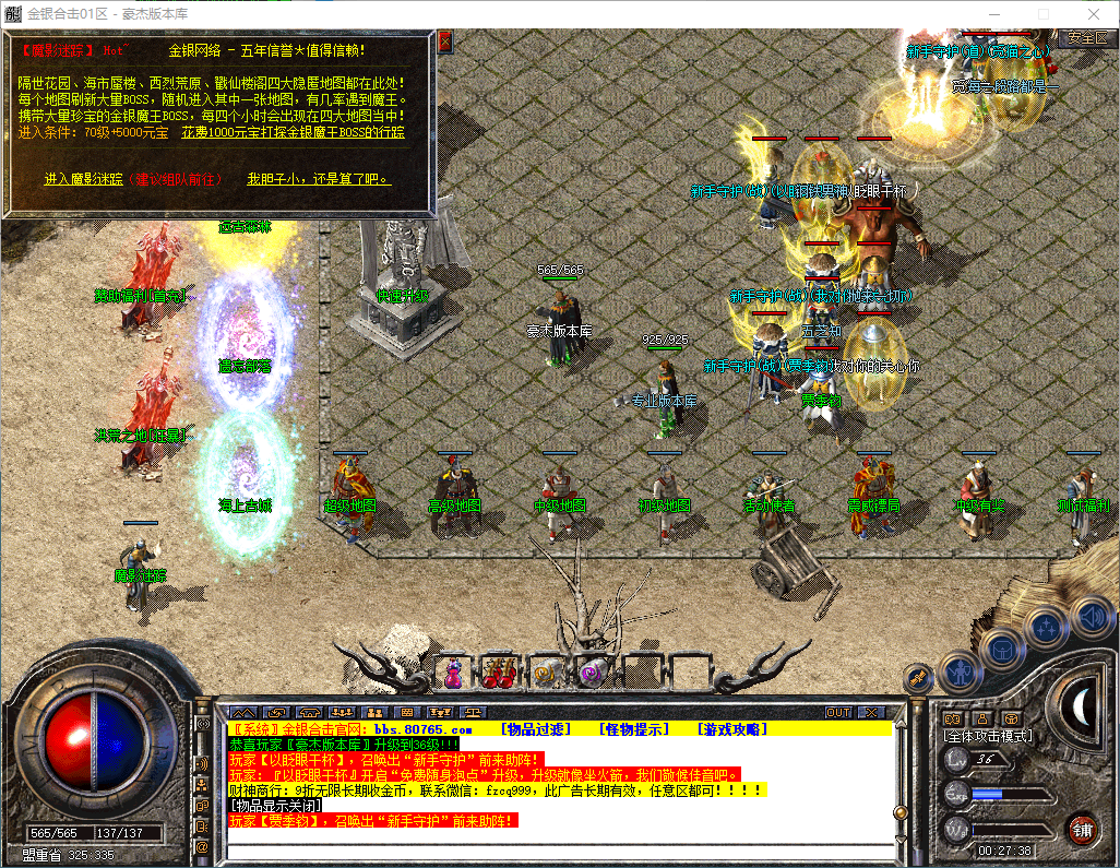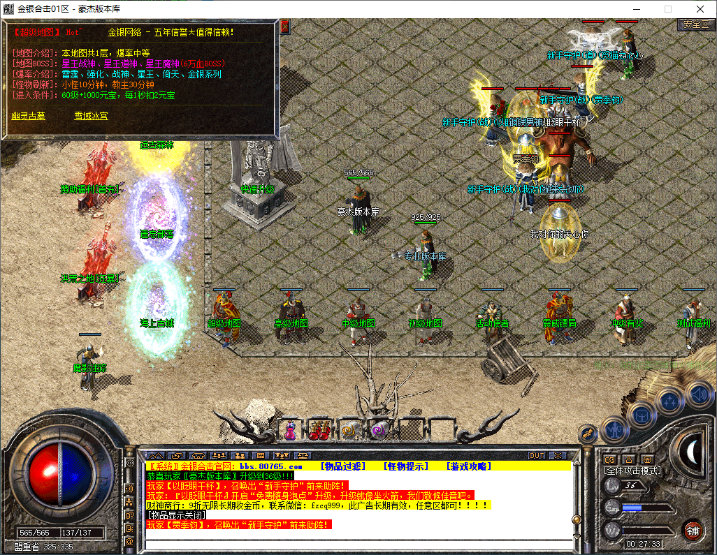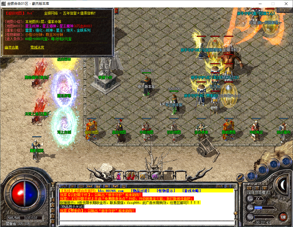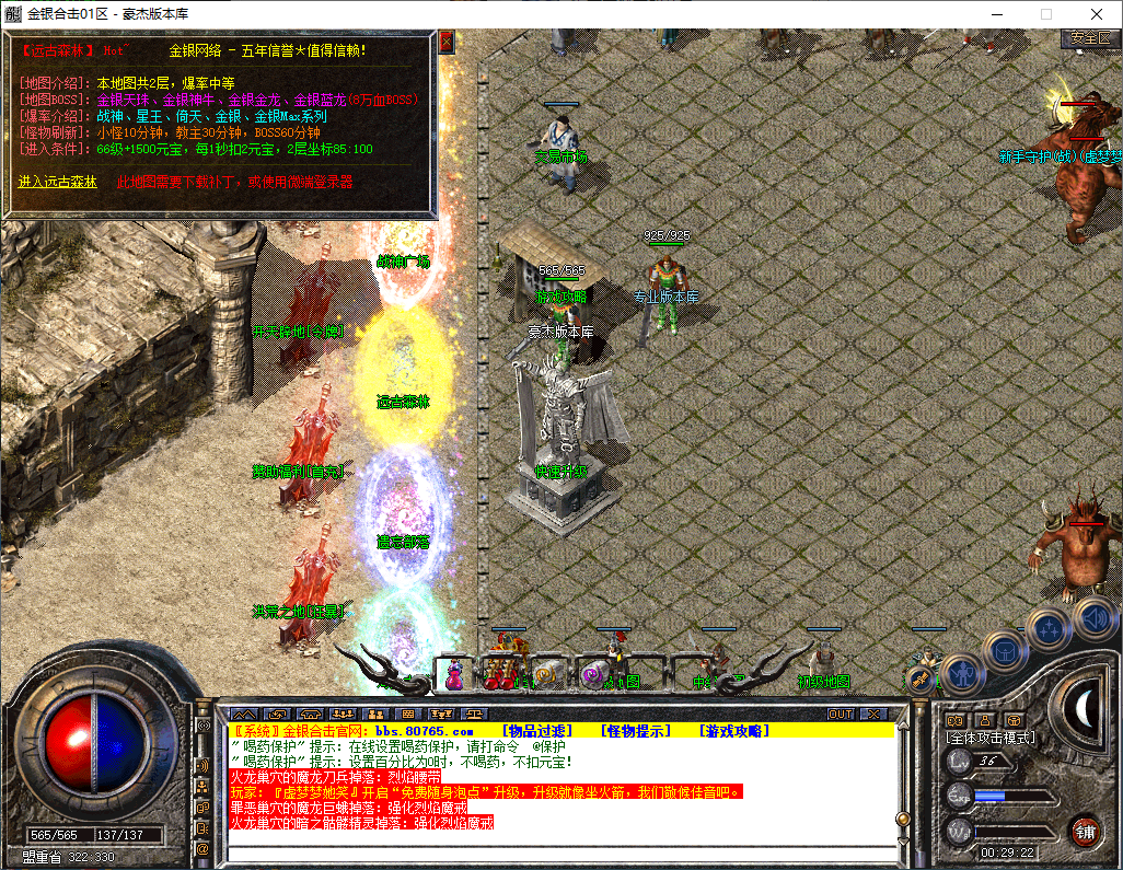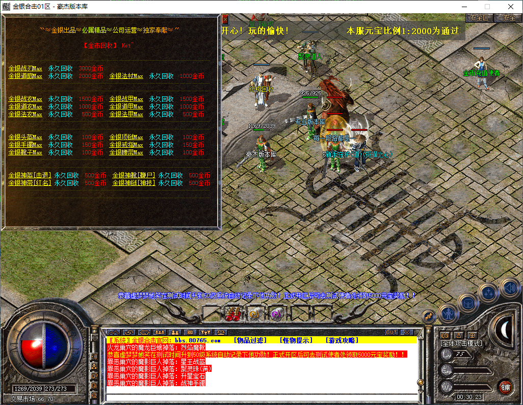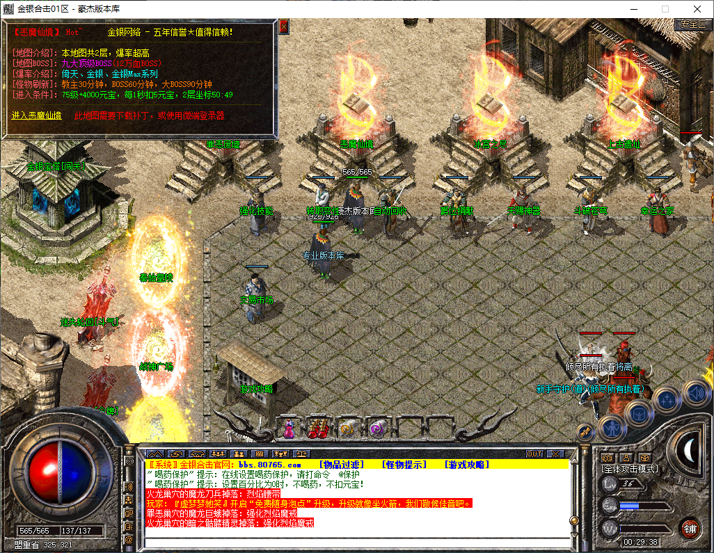 所有怪物暴经验聚灵珠(满) (5000元宝释放5000万经验),BOSS几乎必暴。