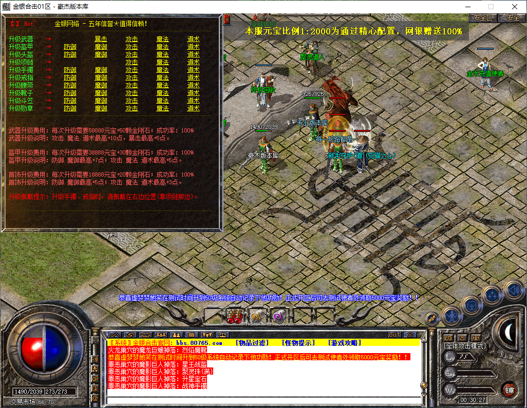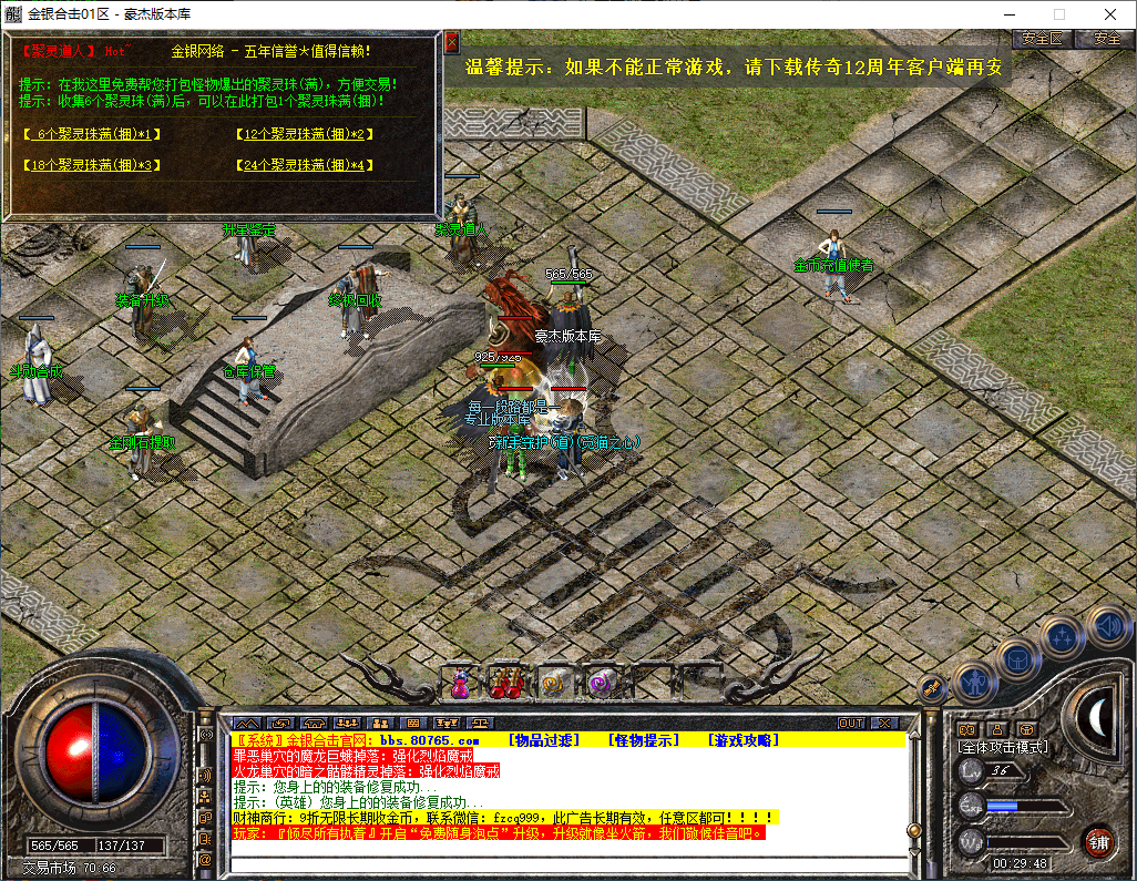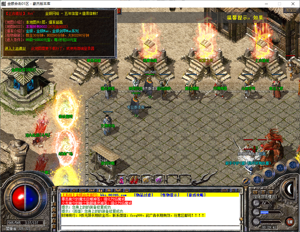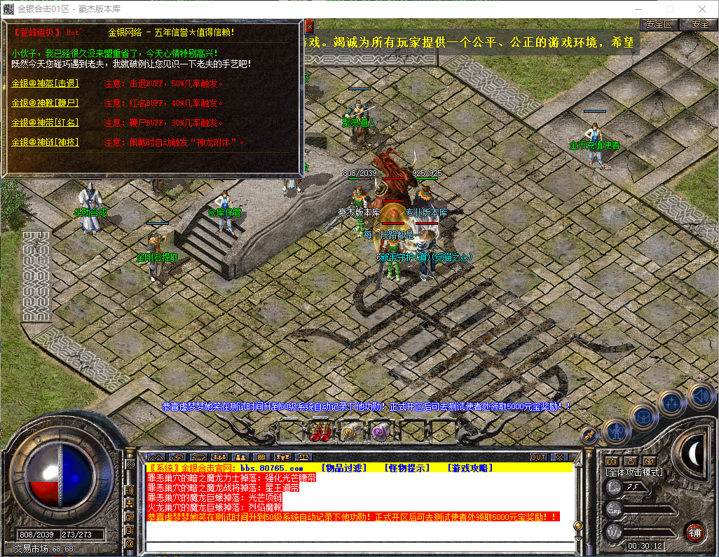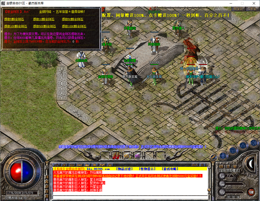 所有怪物暴经验聚灵珠(满) (5000元宝释放5000万经验),BOSS几乎必暴。
