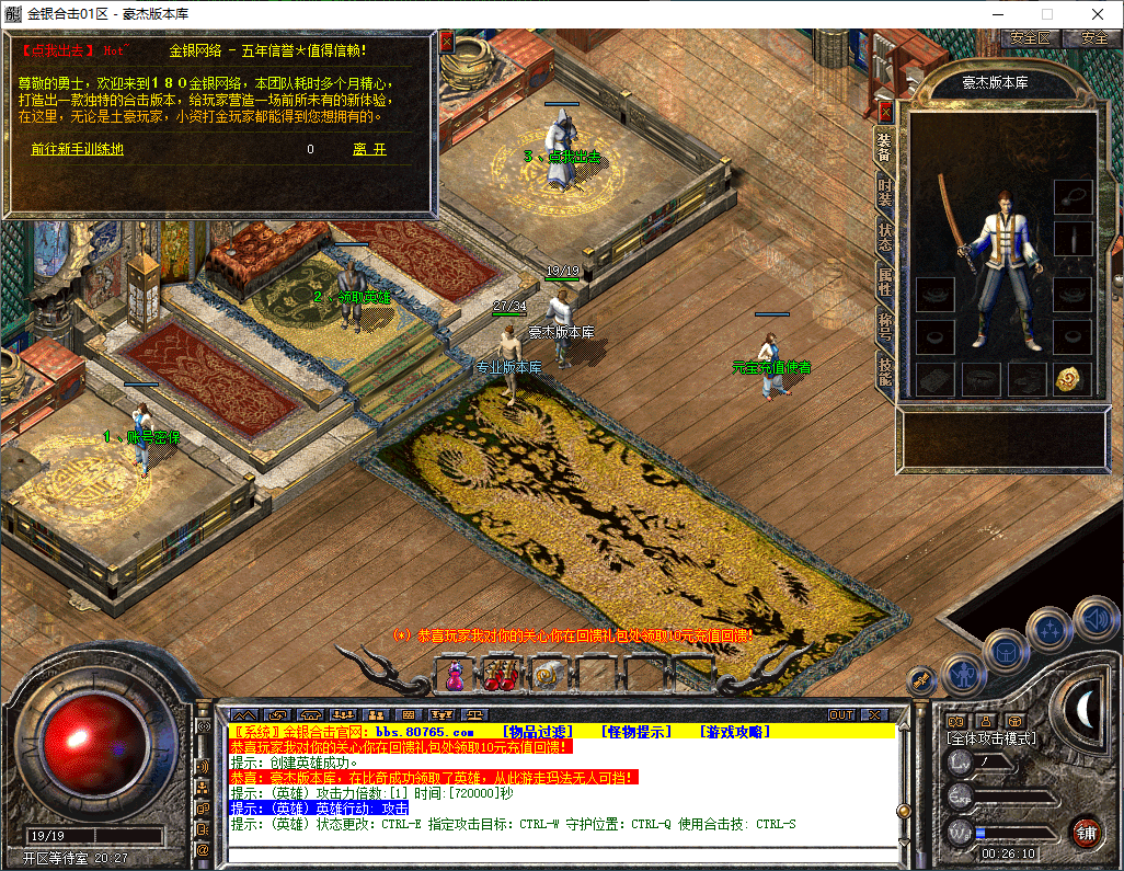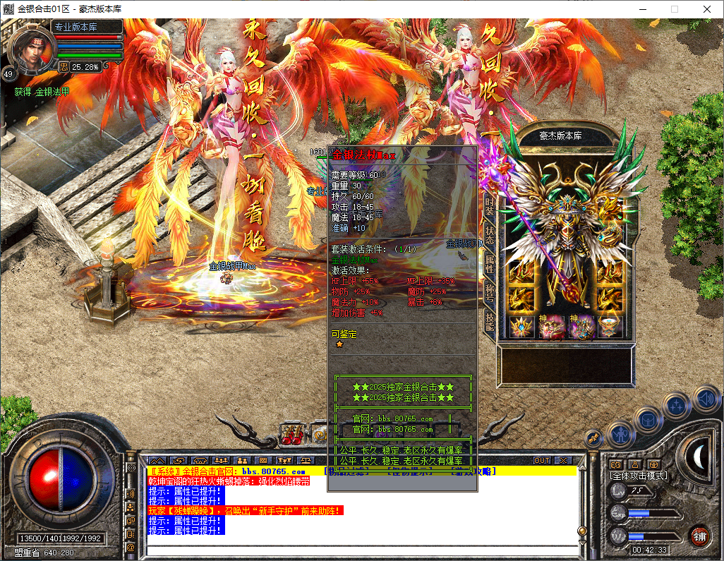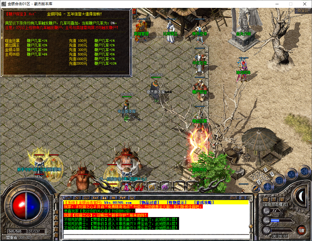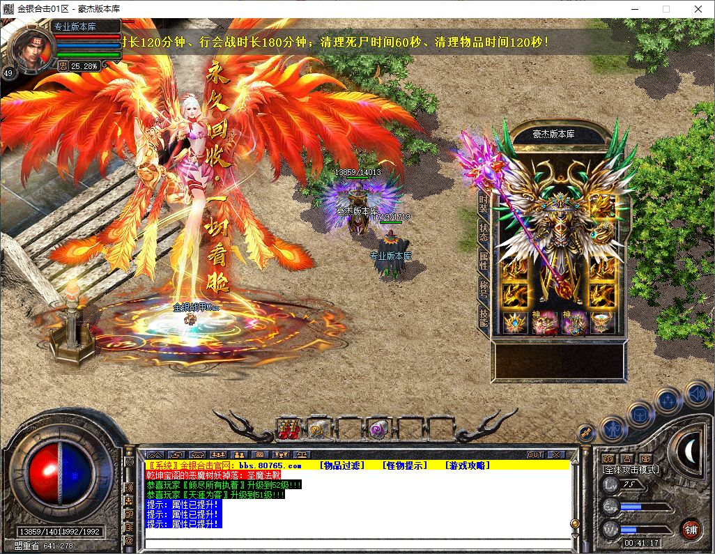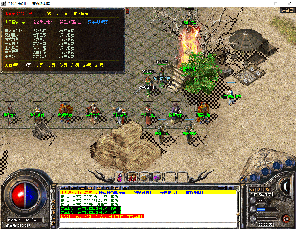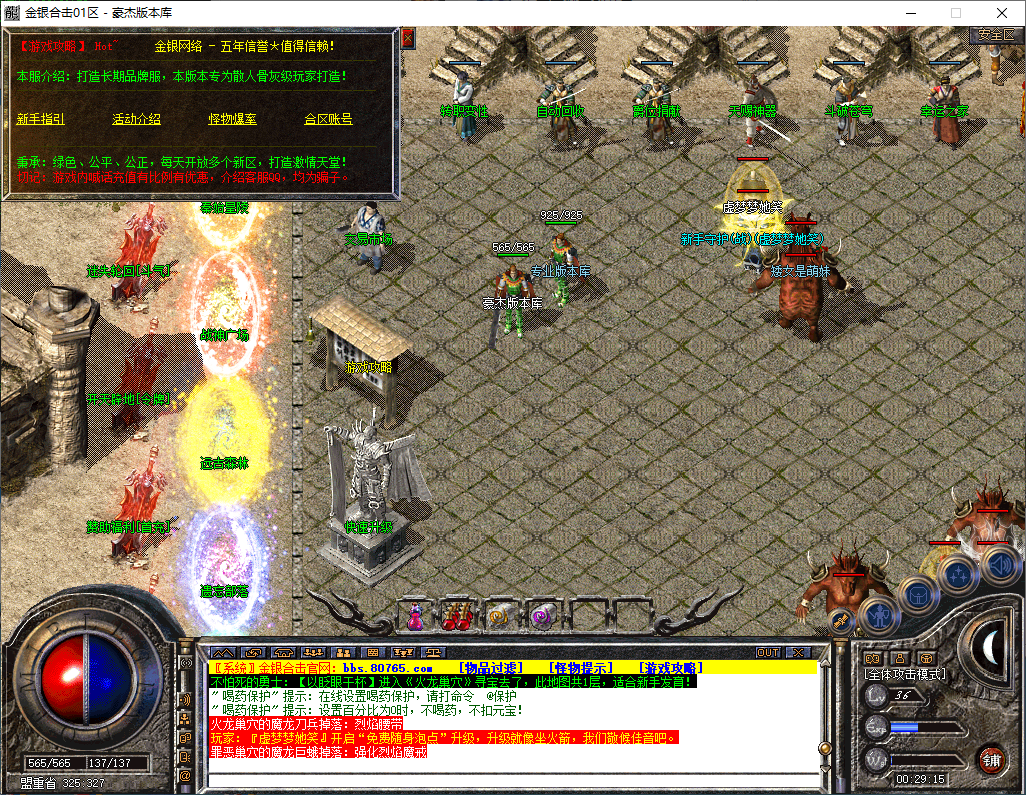 所有怪物暴经验聚灵珠(满) (5000元宝释放5000万经验),BOSS几乎必暴。