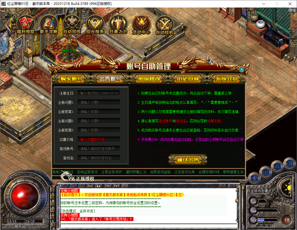 注:由于开区演示站点不定时更新更换版本 具体以本帖演示为准