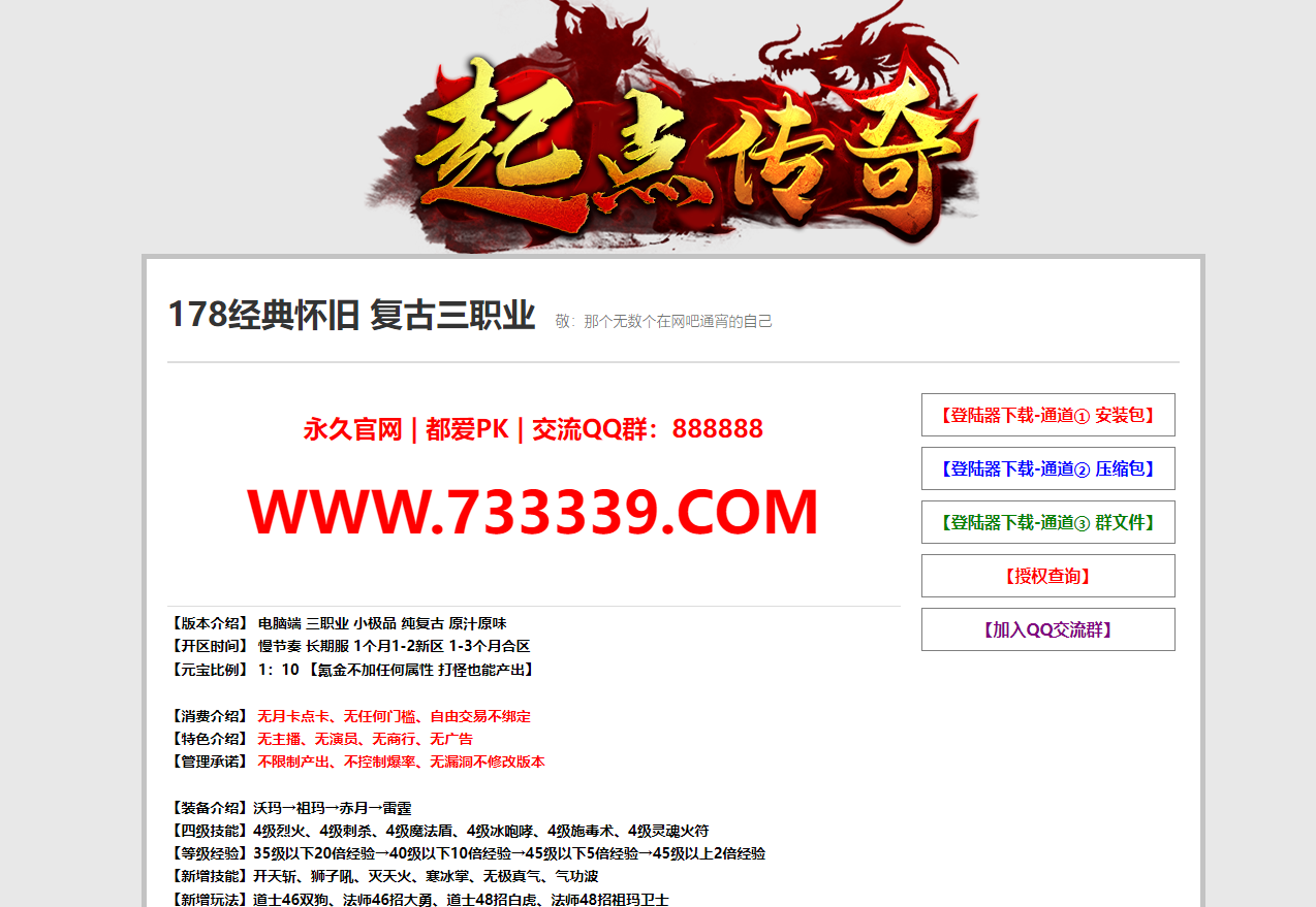 【版本介绍】 电脑端 三职业 小极品 纯复古 原汁原味