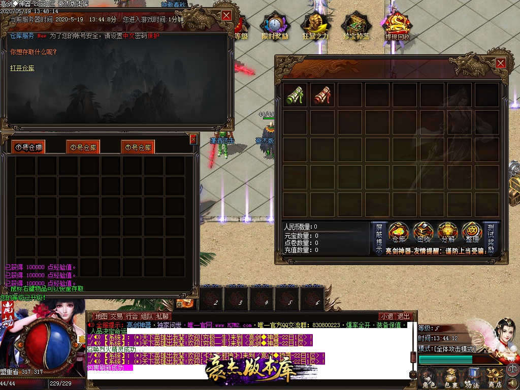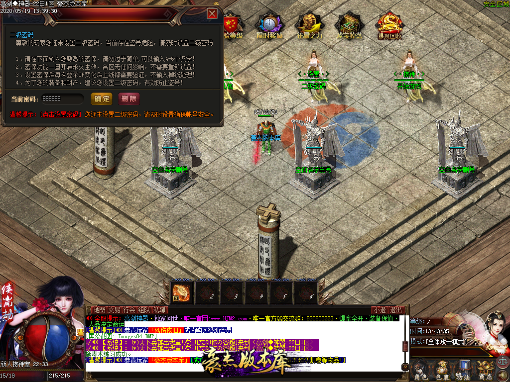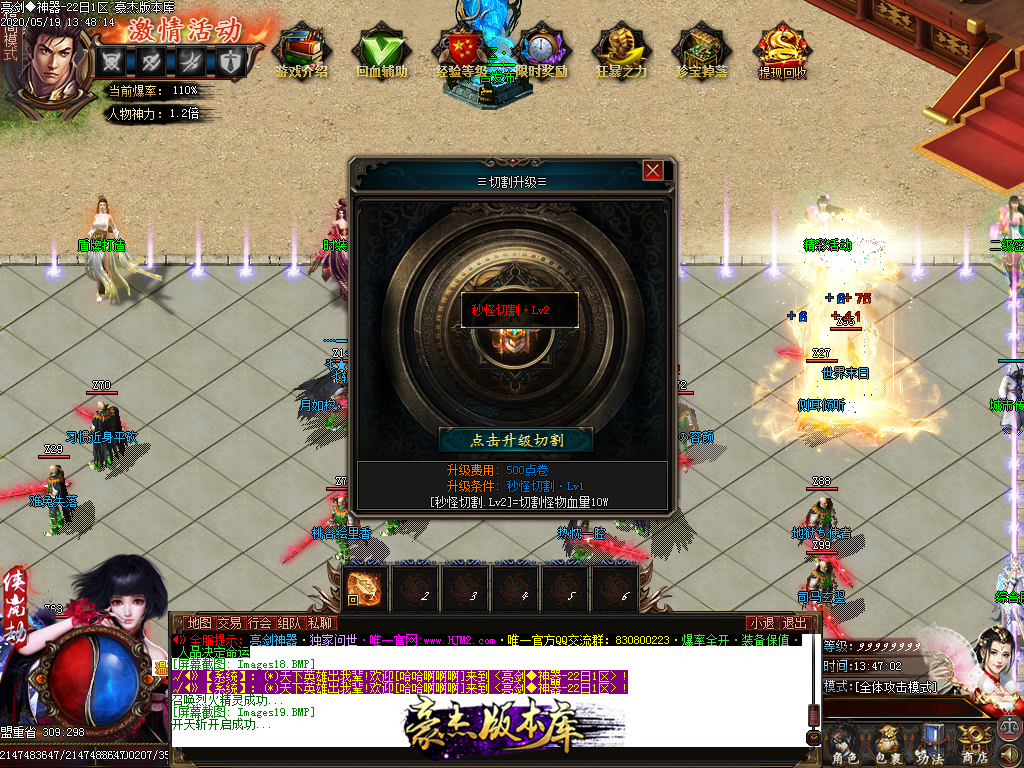 领取本服的福利以后,直接新手地图开干,前期打的元宝,点券,全部去升级切割,可快速提高打怪速度。
