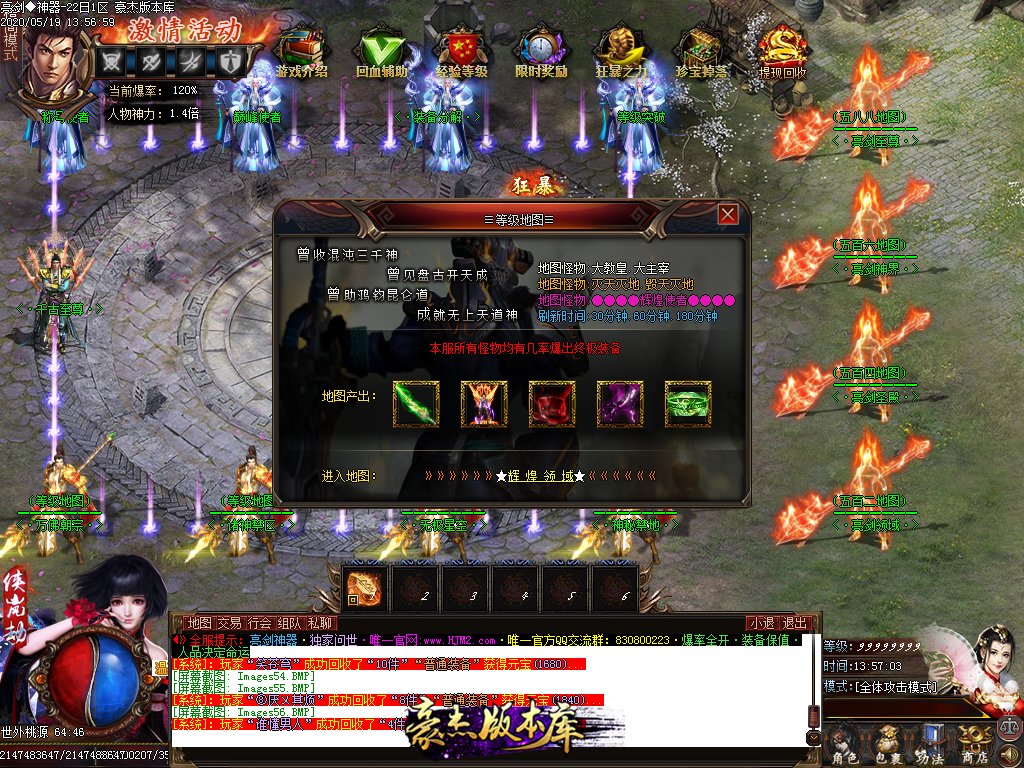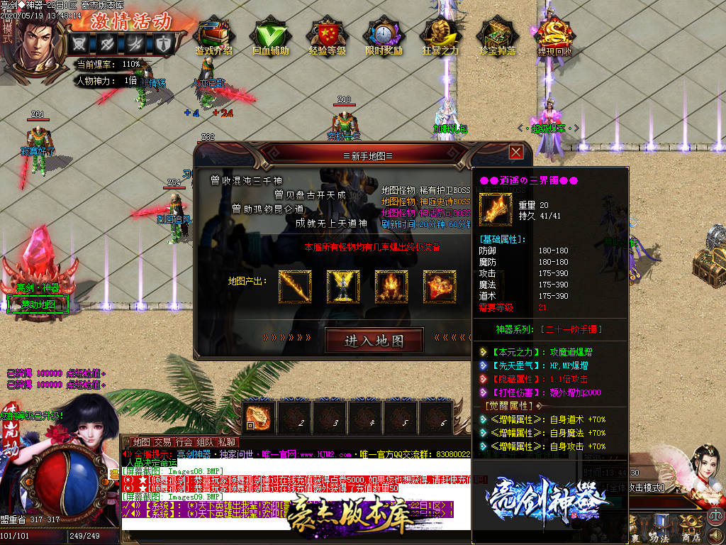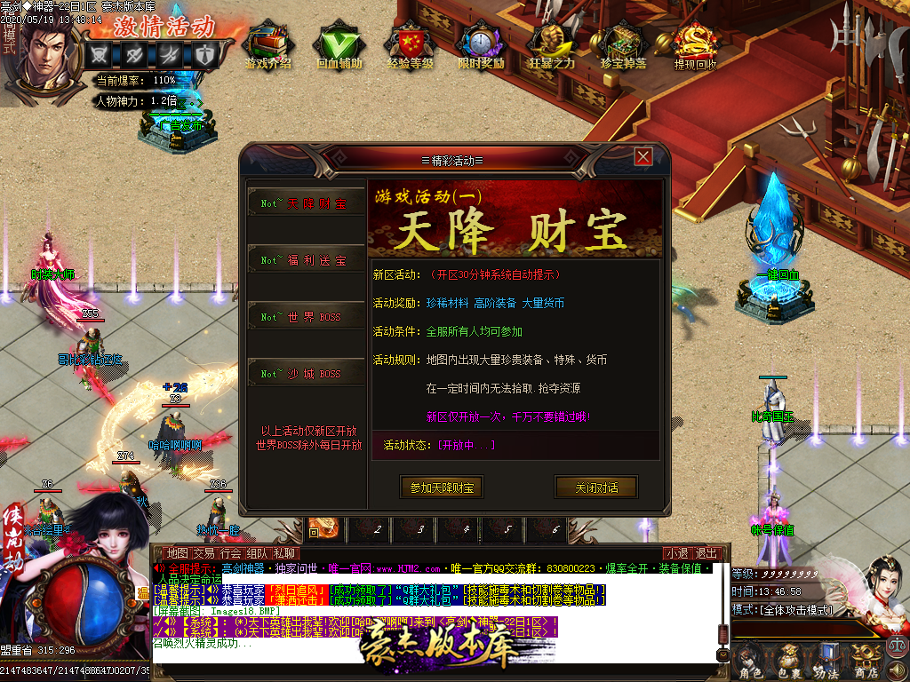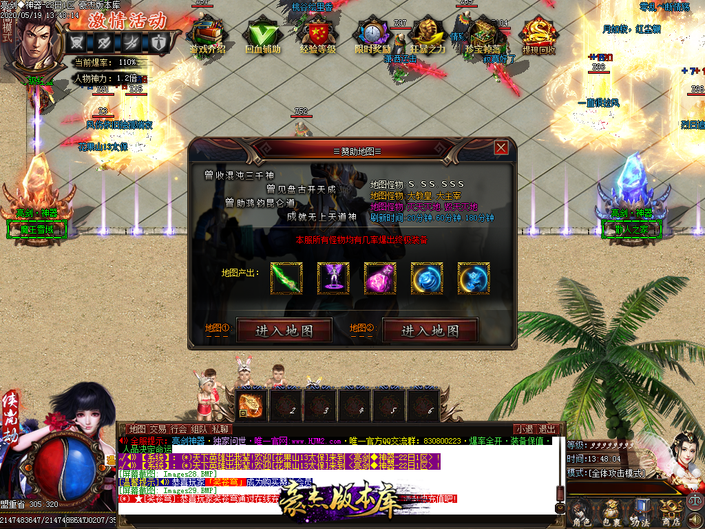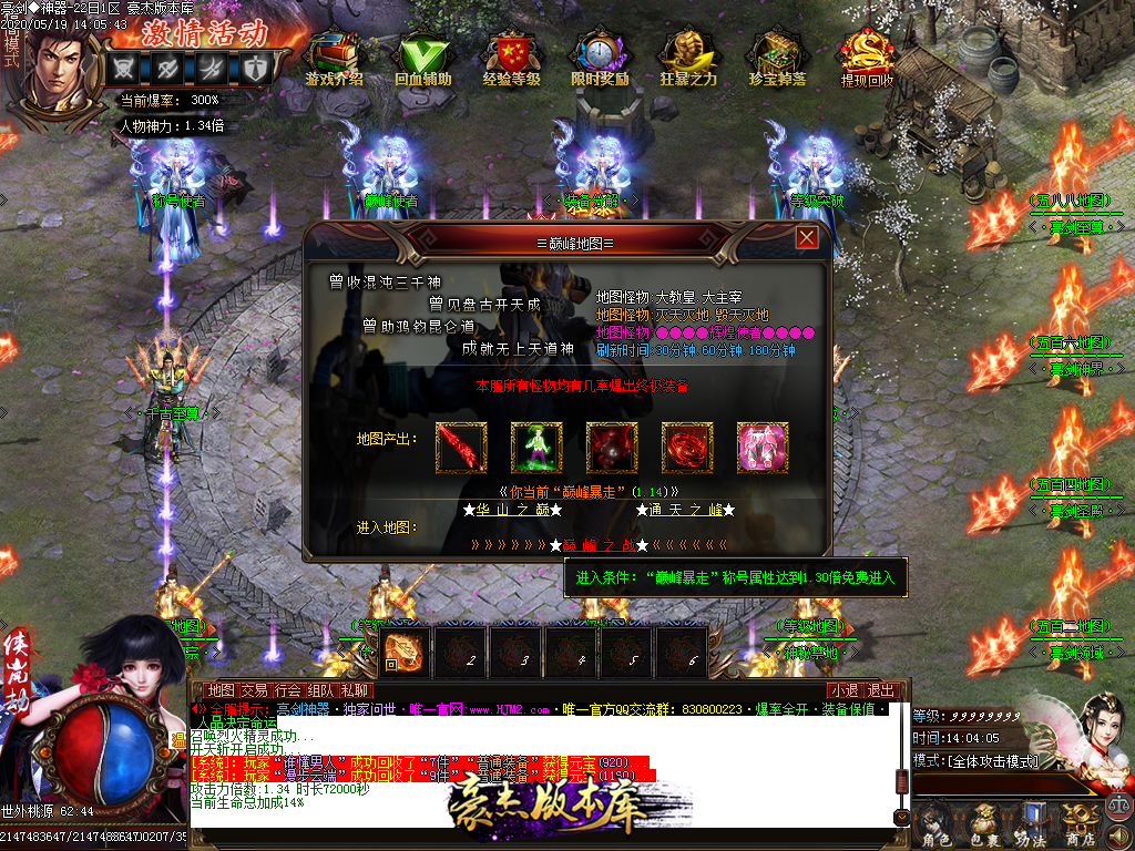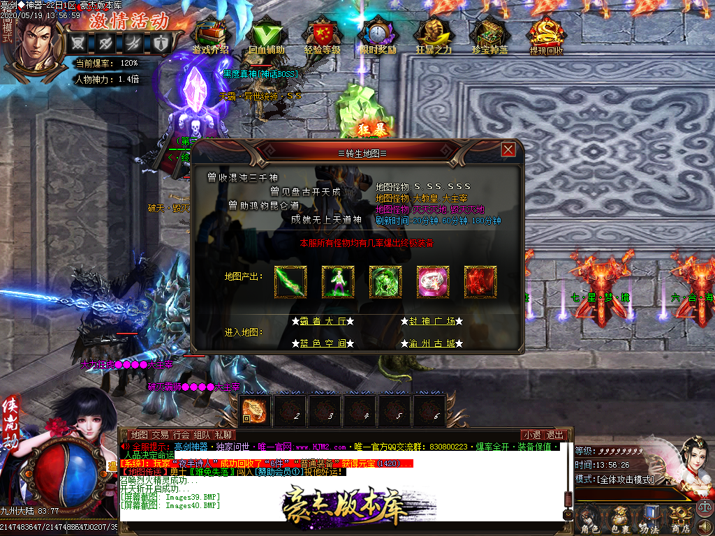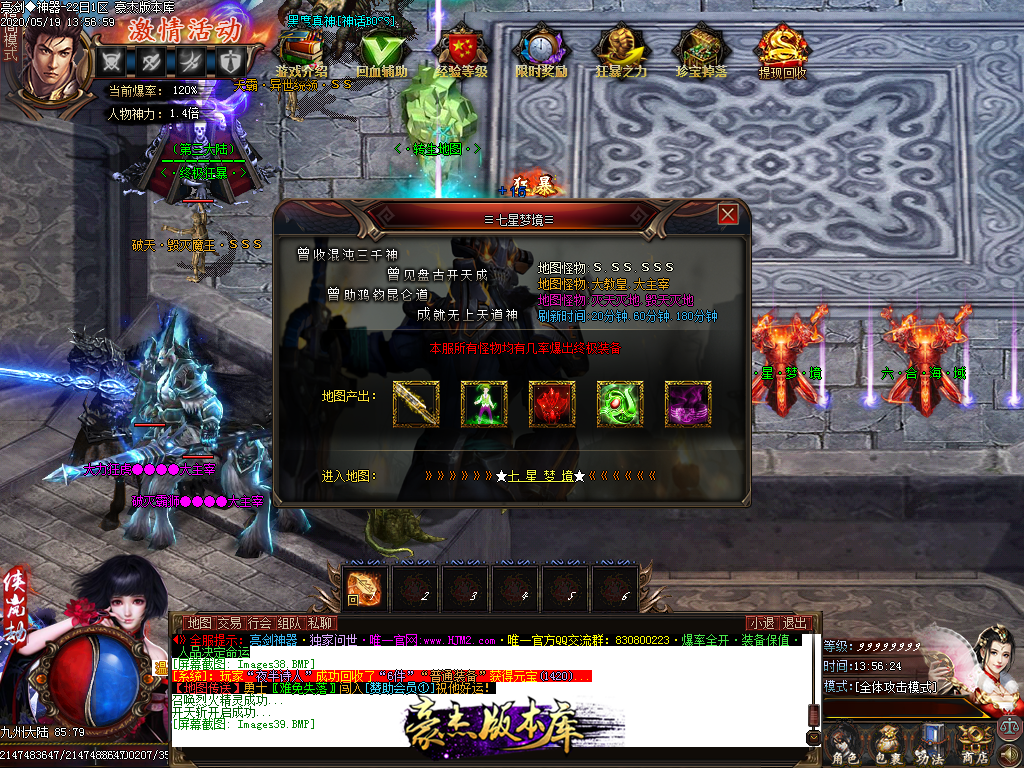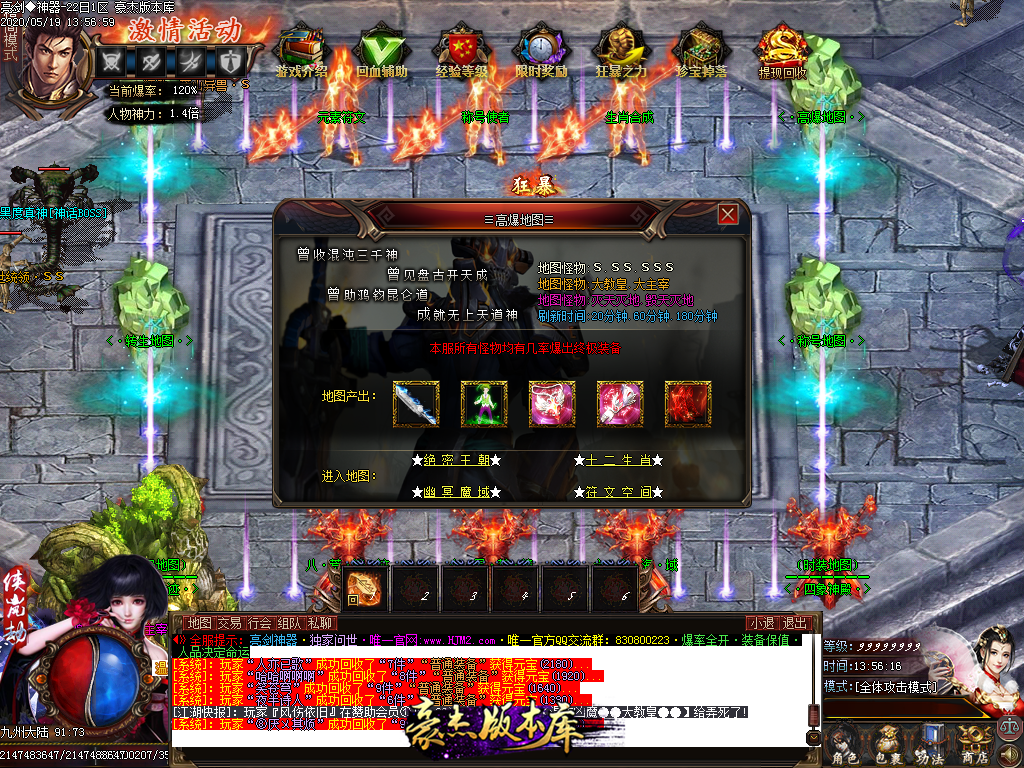 充值240RMB,200RMB开通超级爆率,超级爆率激活还可以回收神器之魂,脸好一波29阶直接上天!花40元开启狂暴/沙捐,全服任你遨游!