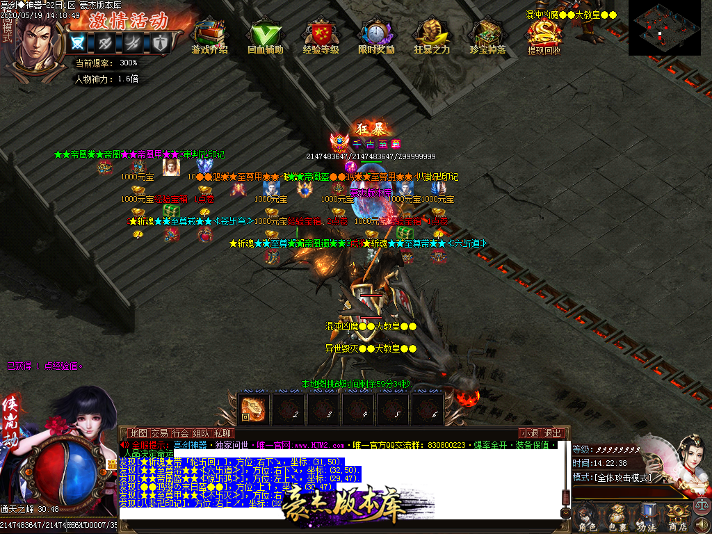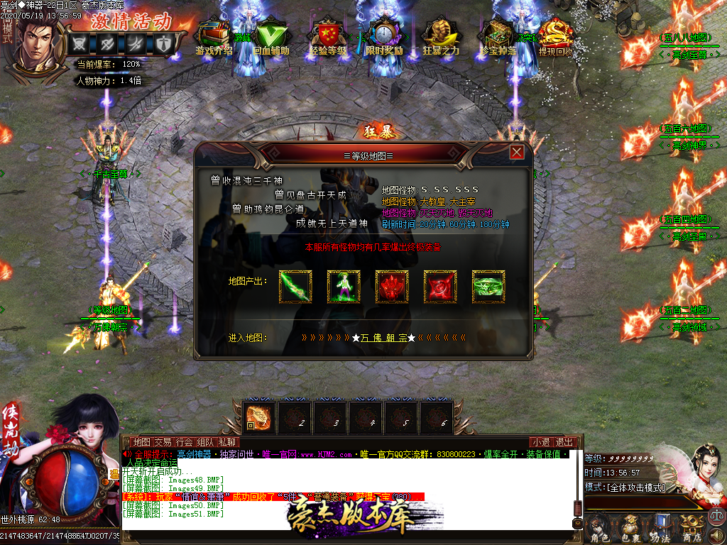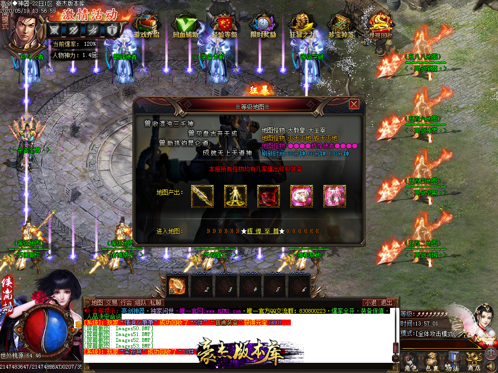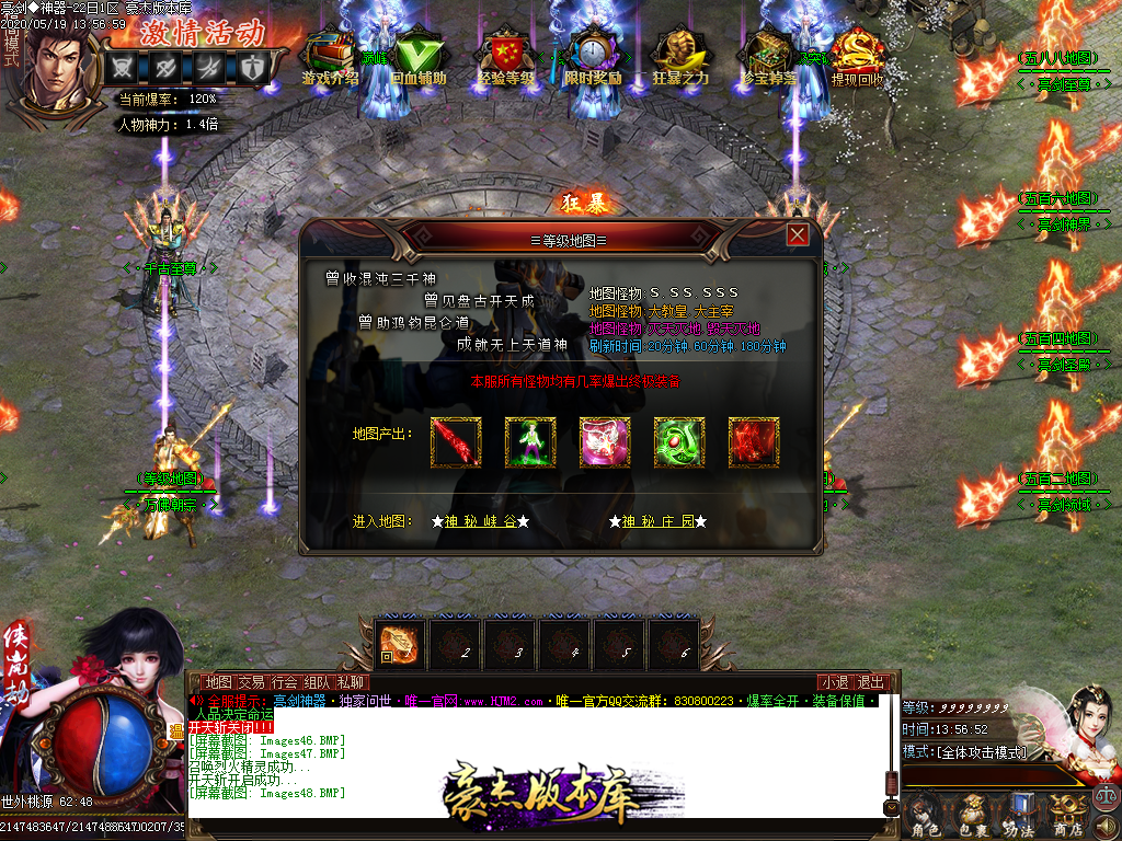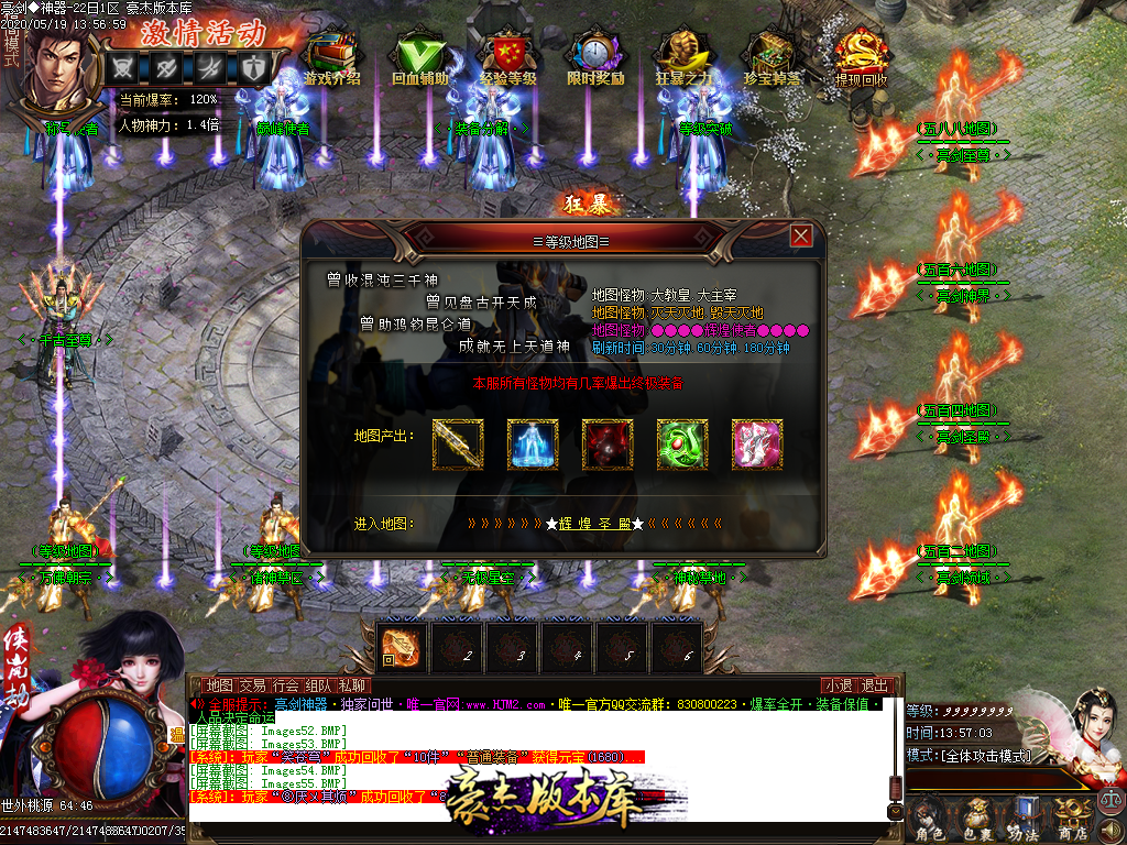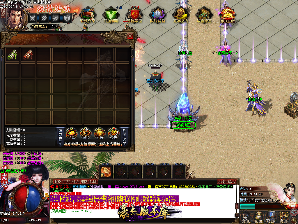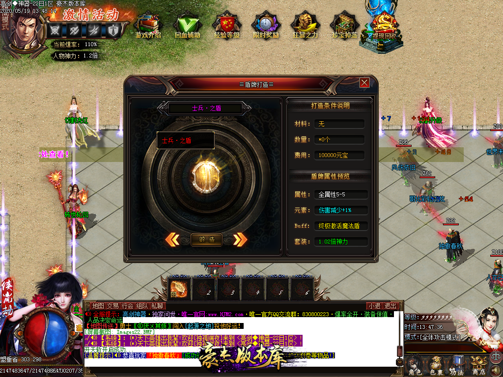 充值240RMB,200RMB开通超级爆率,超级爆率激活还可以回收神器之魂,脸好一波29阶直接上天!花40元开启狂暴/沙捐,全服任你遨游!