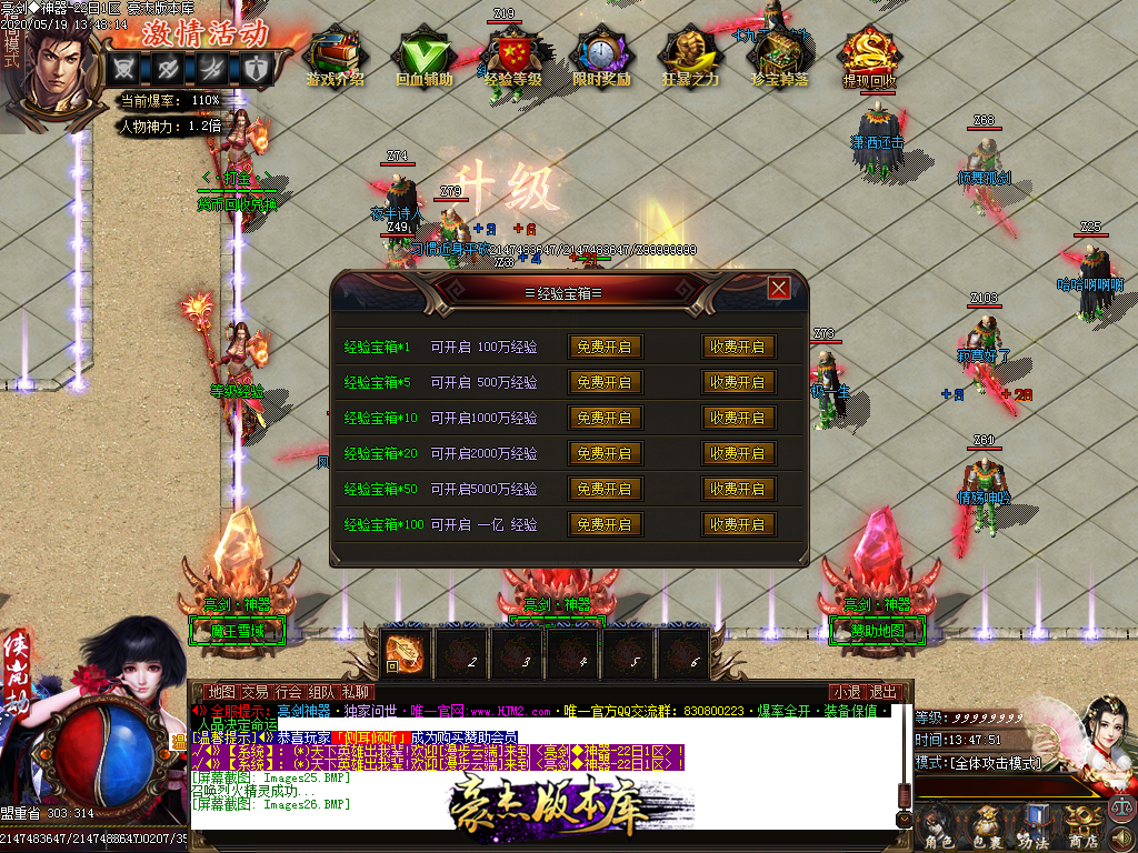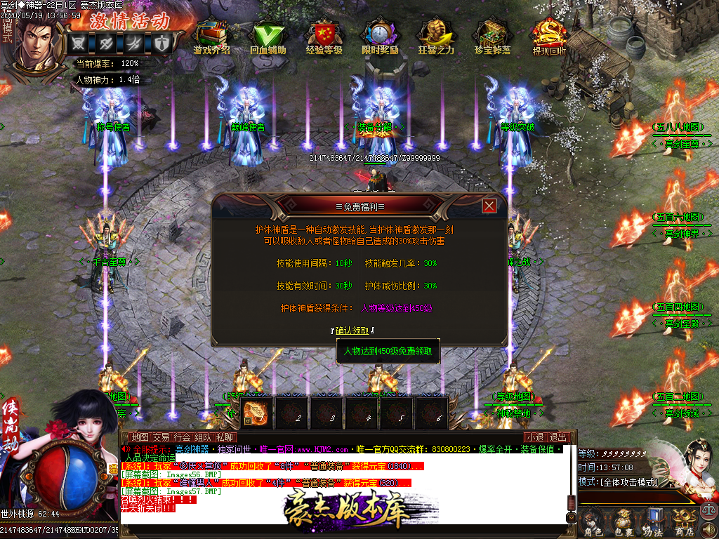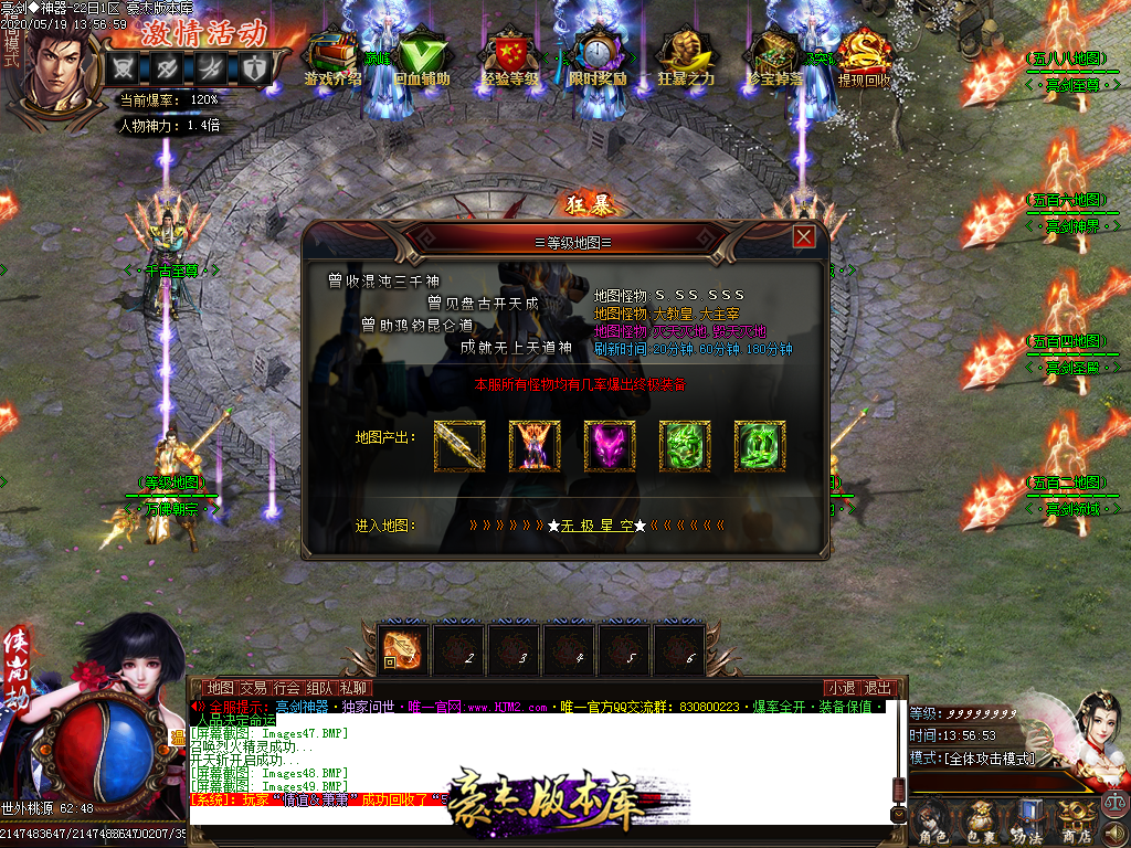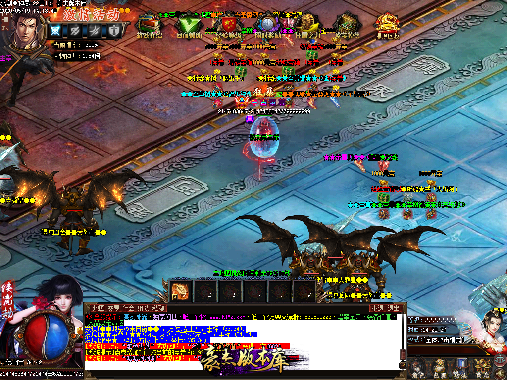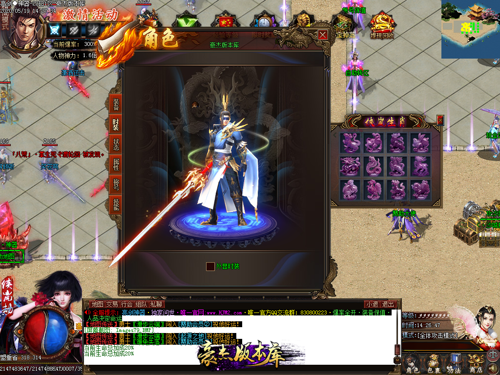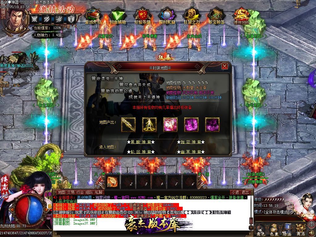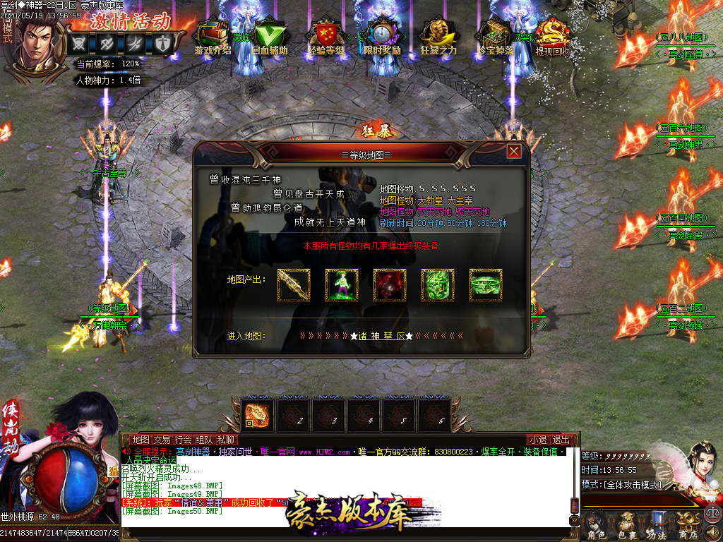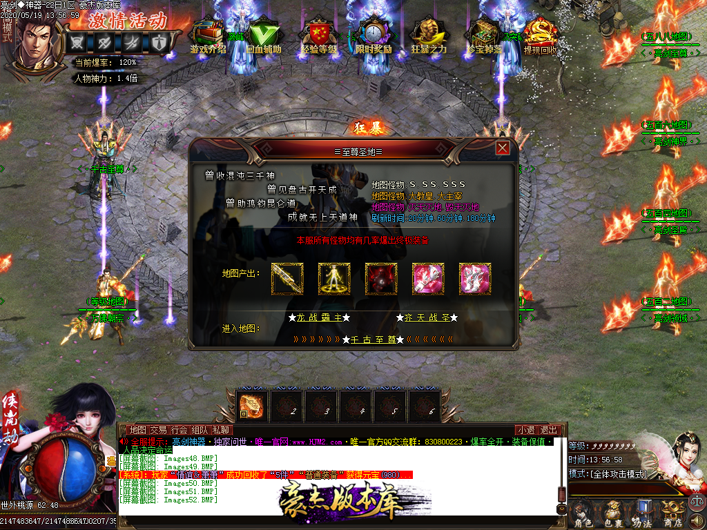 充值240RMB,200RMB开通超级爆率,超级爆率激活还可以回收神器之魂,脸好一波29阶直接上天!花40元开启狂暴/沙捐,全服任你遨游!