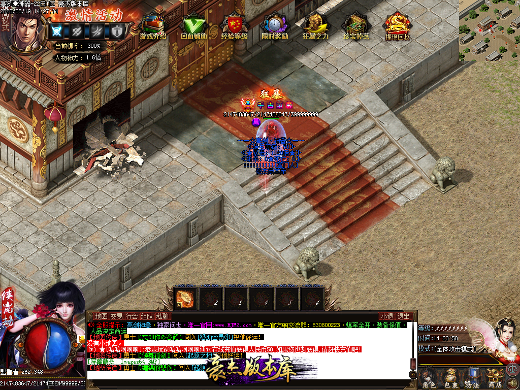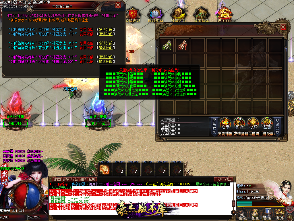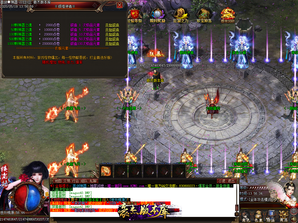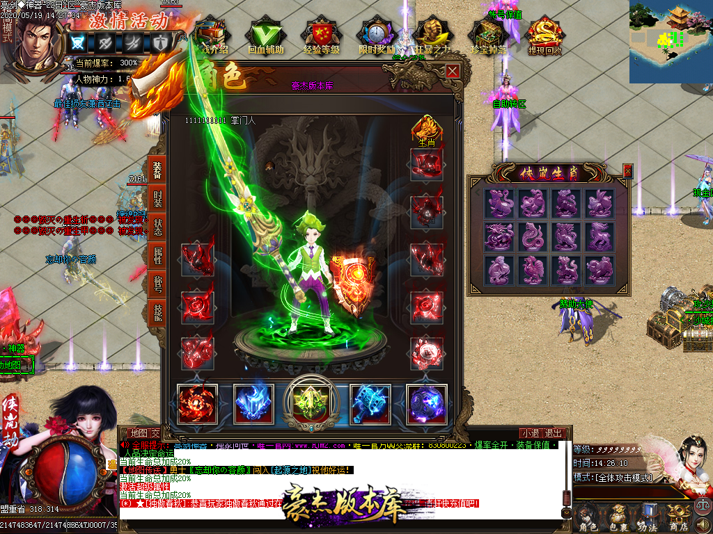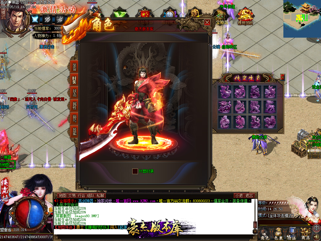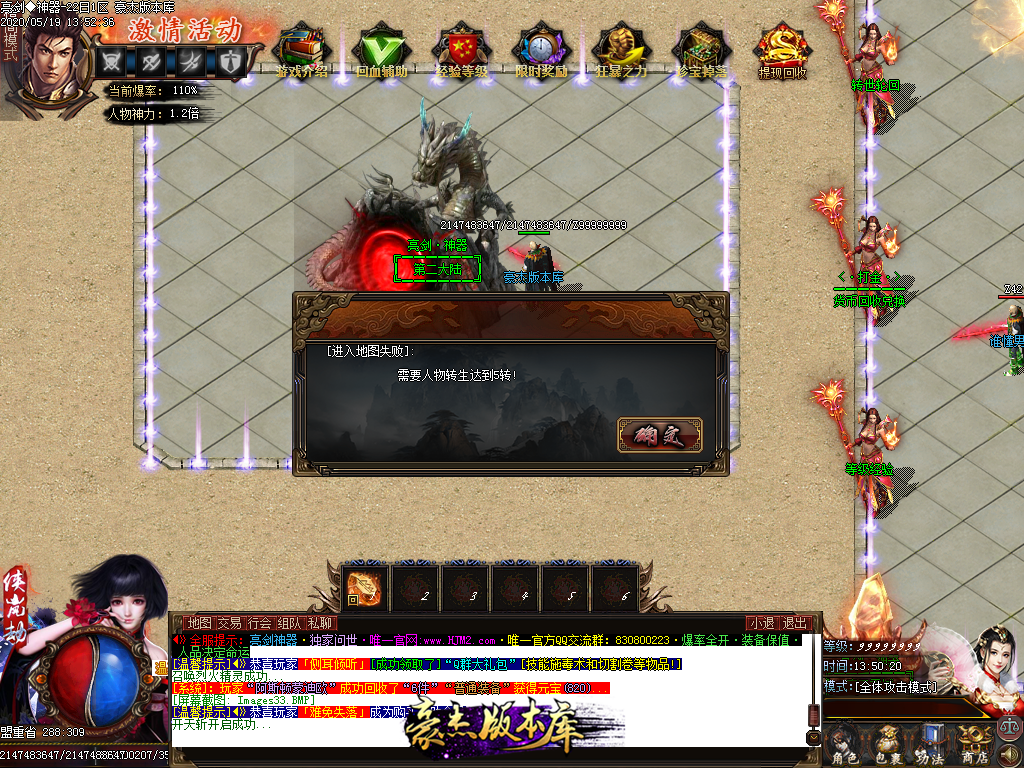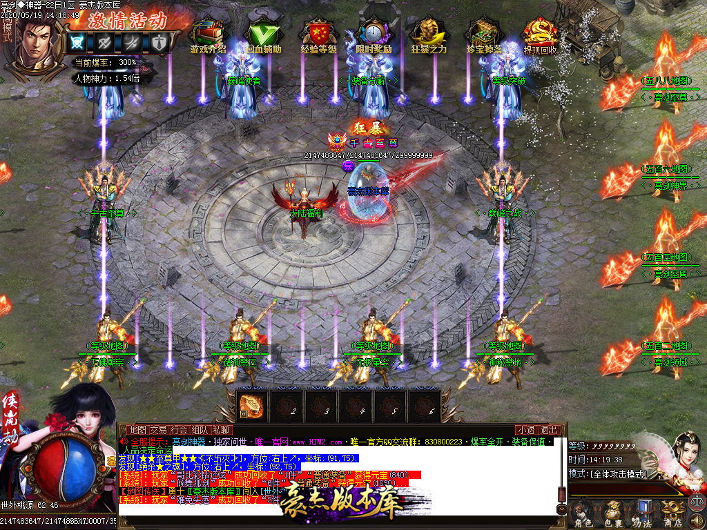 充值240RMB,200RMB开通超级爆率,超级爆率激活还可以回收神器之魂,脸好一波29阶直接上天!花40元开启狂暴/沙捐,全服任你遨游!