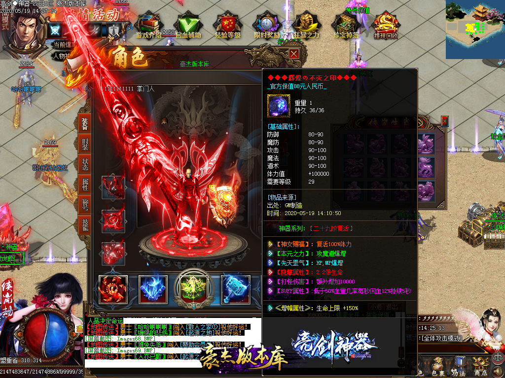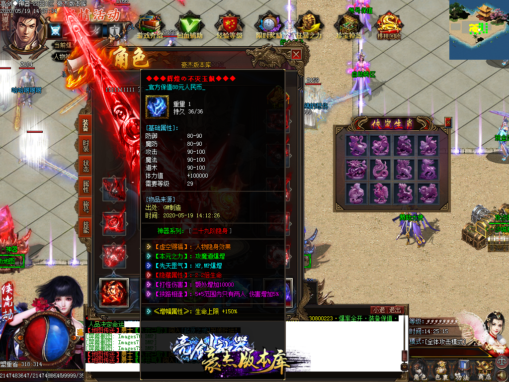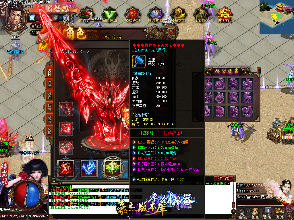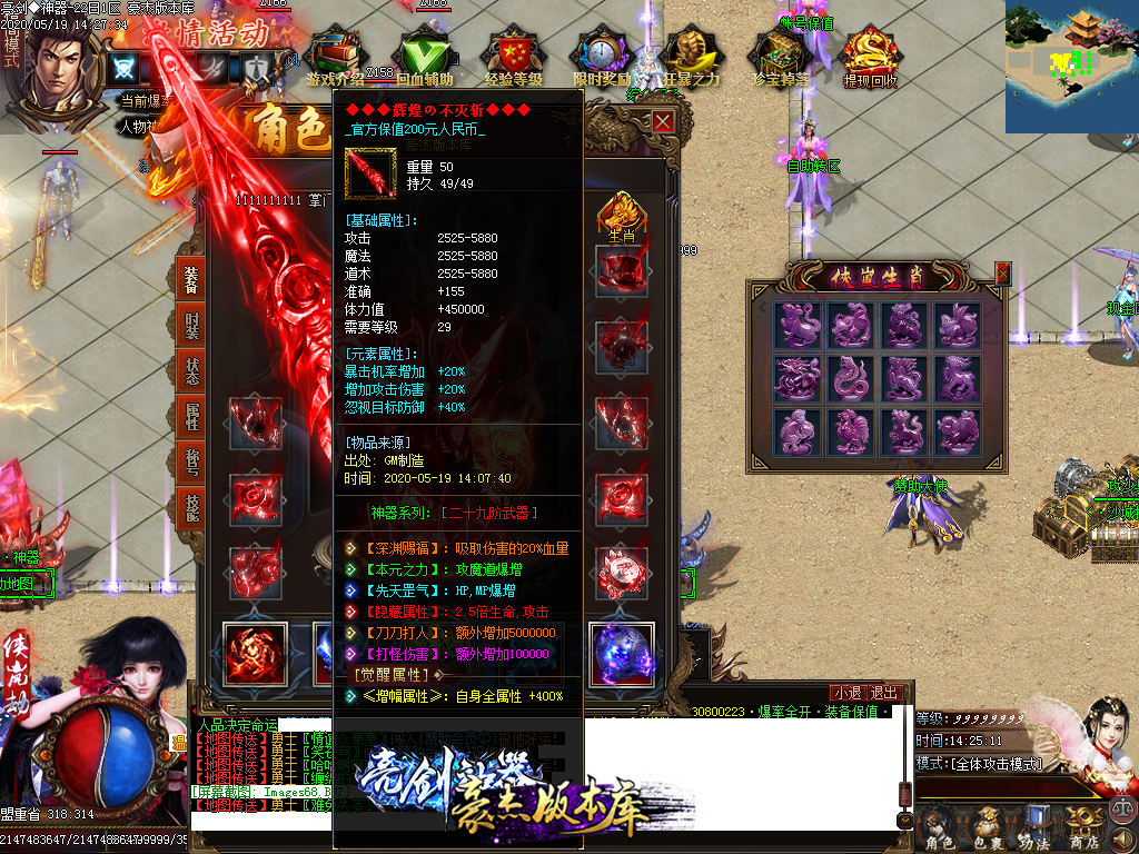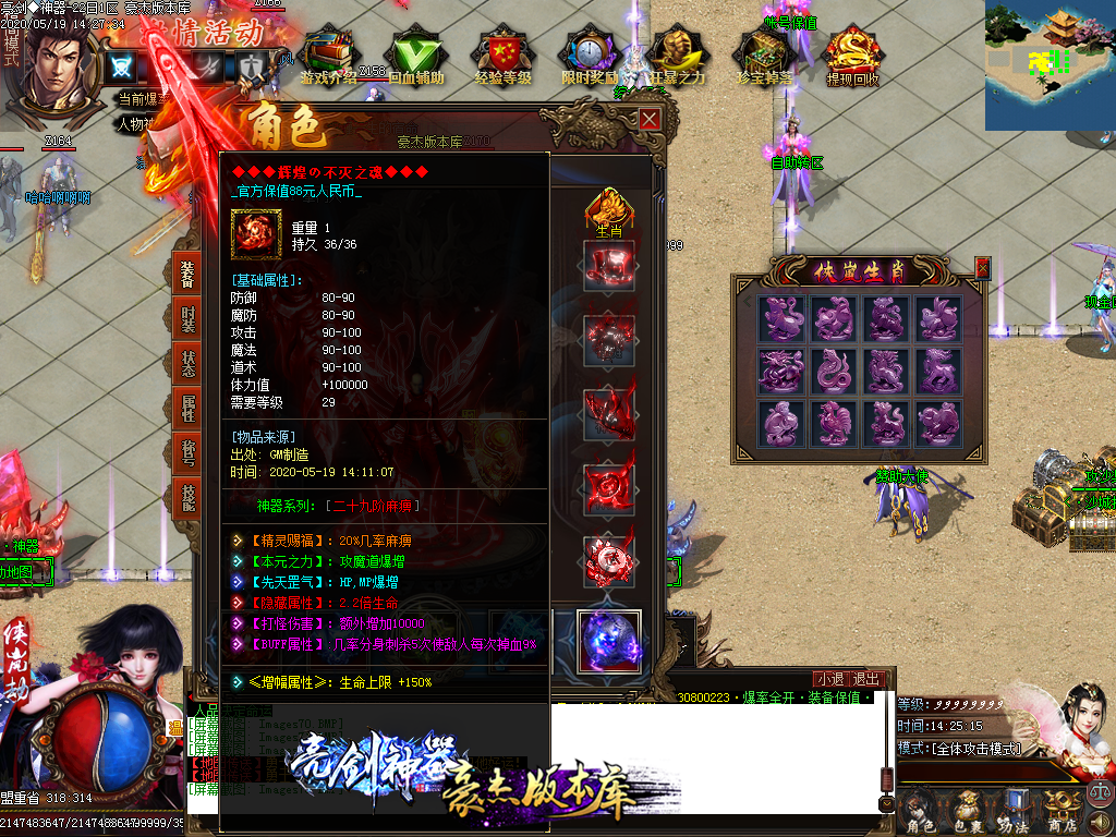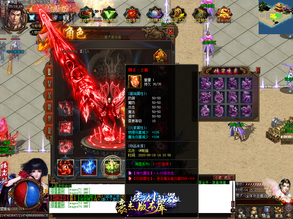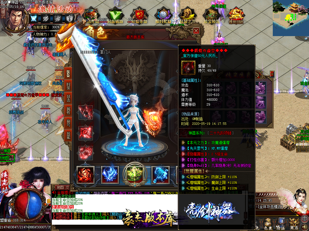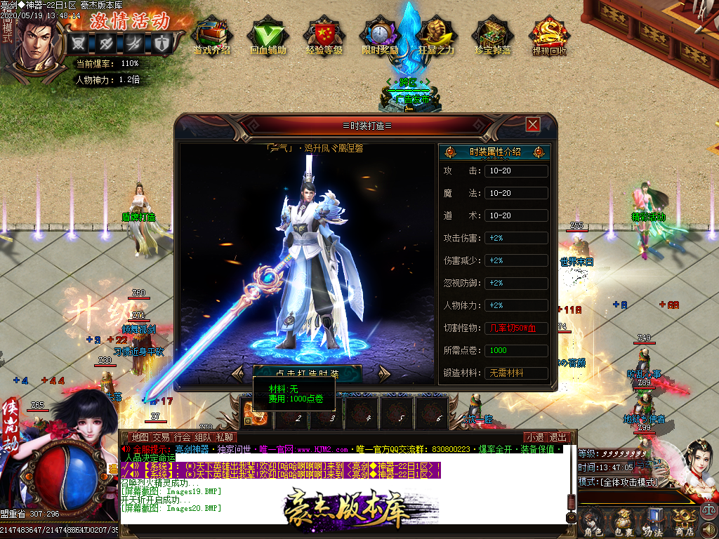 充值240RMB,200RMB开通超级爆率,超级爆率激活还可以回收神器之魂,脸好一波29阶直接上天!花40元开启狂暴/沙捐,全服任你遨游!