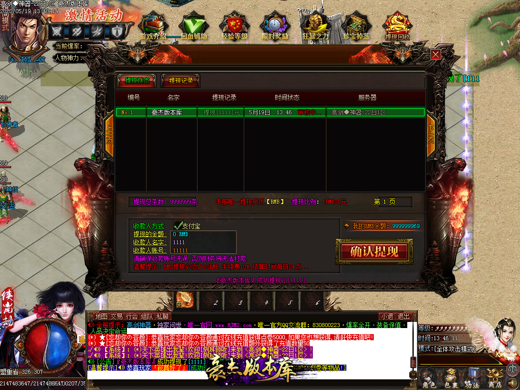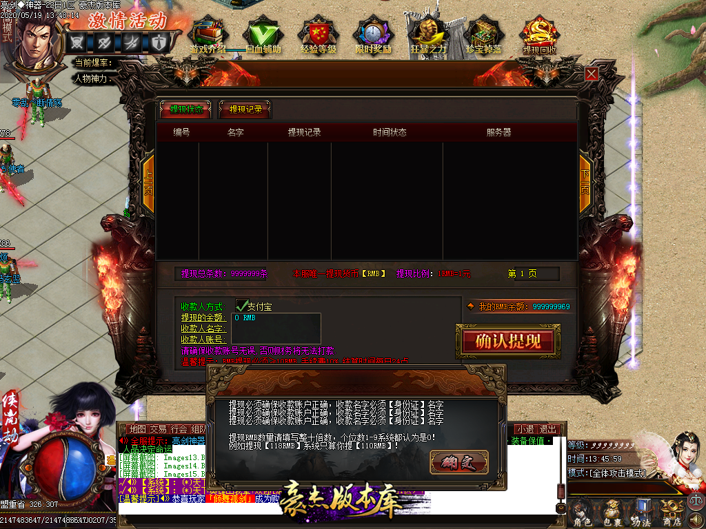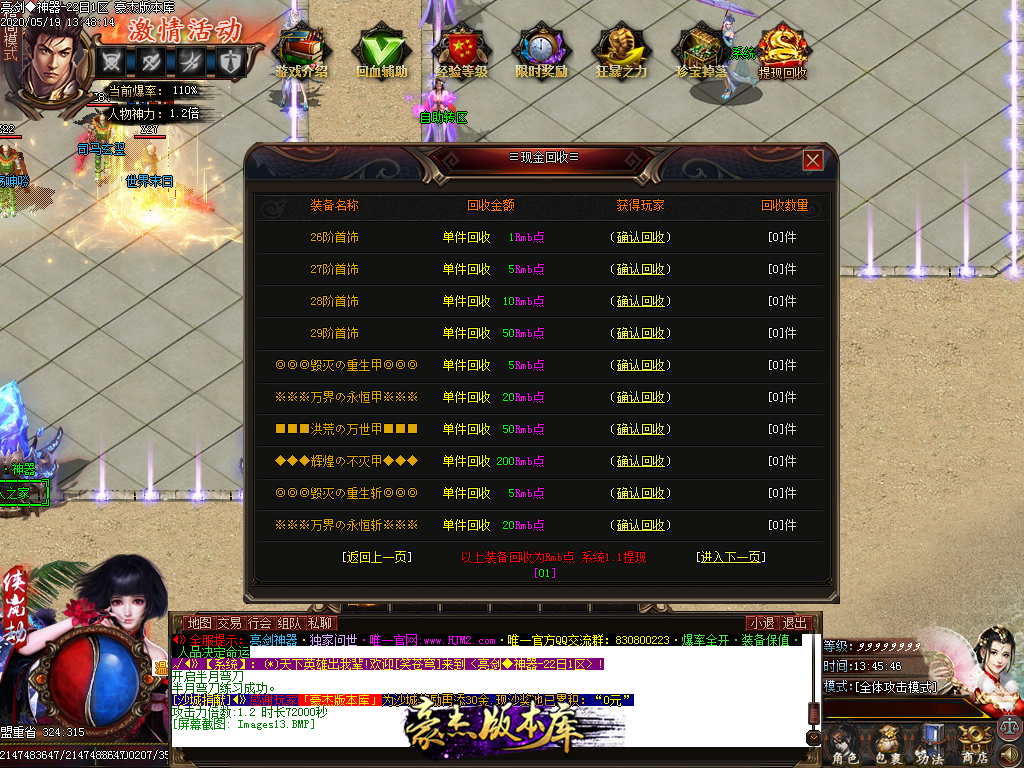 点券充值比例不变1:100 回收比例1:600 为打金玩家带来更多福利!!