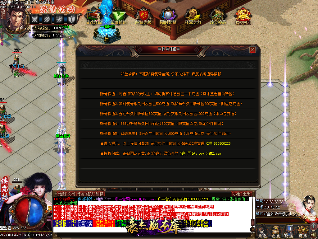 本服特色四:本服所有空账号均保值,详见游戏介绍,不充值的号也可以在新区获得充值账号!