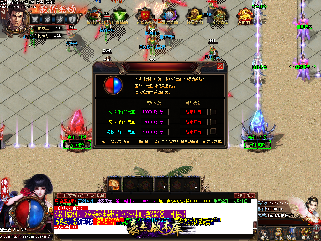 40充值的RMB,开启狂暴+沙捐,狂暴+沙捐开启自动捡物,打怪效率直线上升,即可无任何压力打怪,前期打的点券,升级切割,提高杀怪速度。