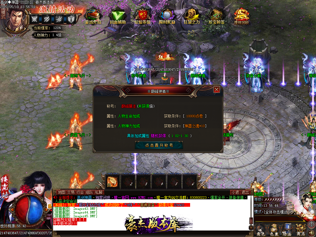 十一、修改暴走巅峰称号属性,1.10-1.19倍增加20%攻速1.20-1.29增加50%攻速.
