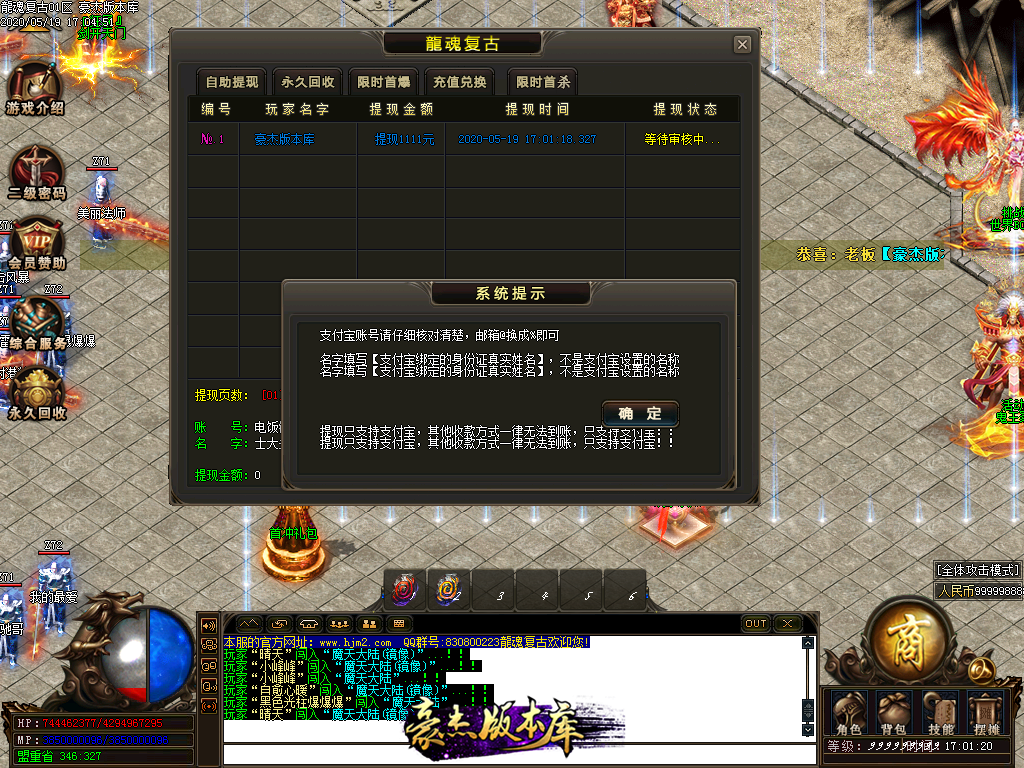 付费购买-龍魂复古打金单职业传奇客户端_带假人_光柱_每日首冲_富豪捐献