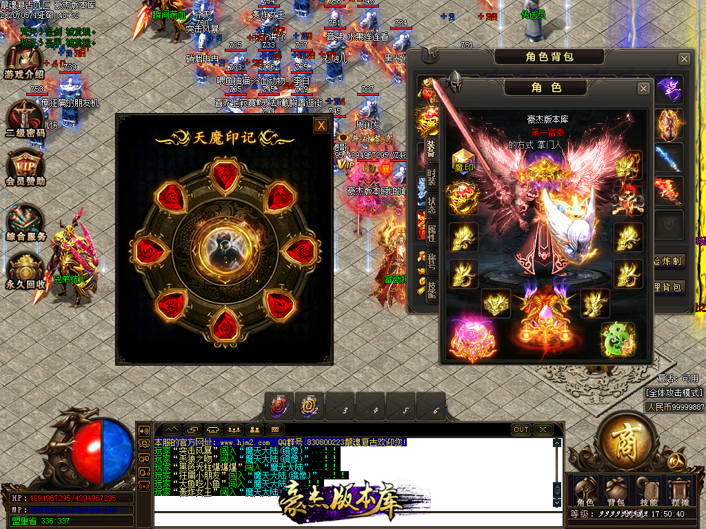 2.会员直接赠送【秒杀魔戒[三级]】进魔天大陆打装备,转生!