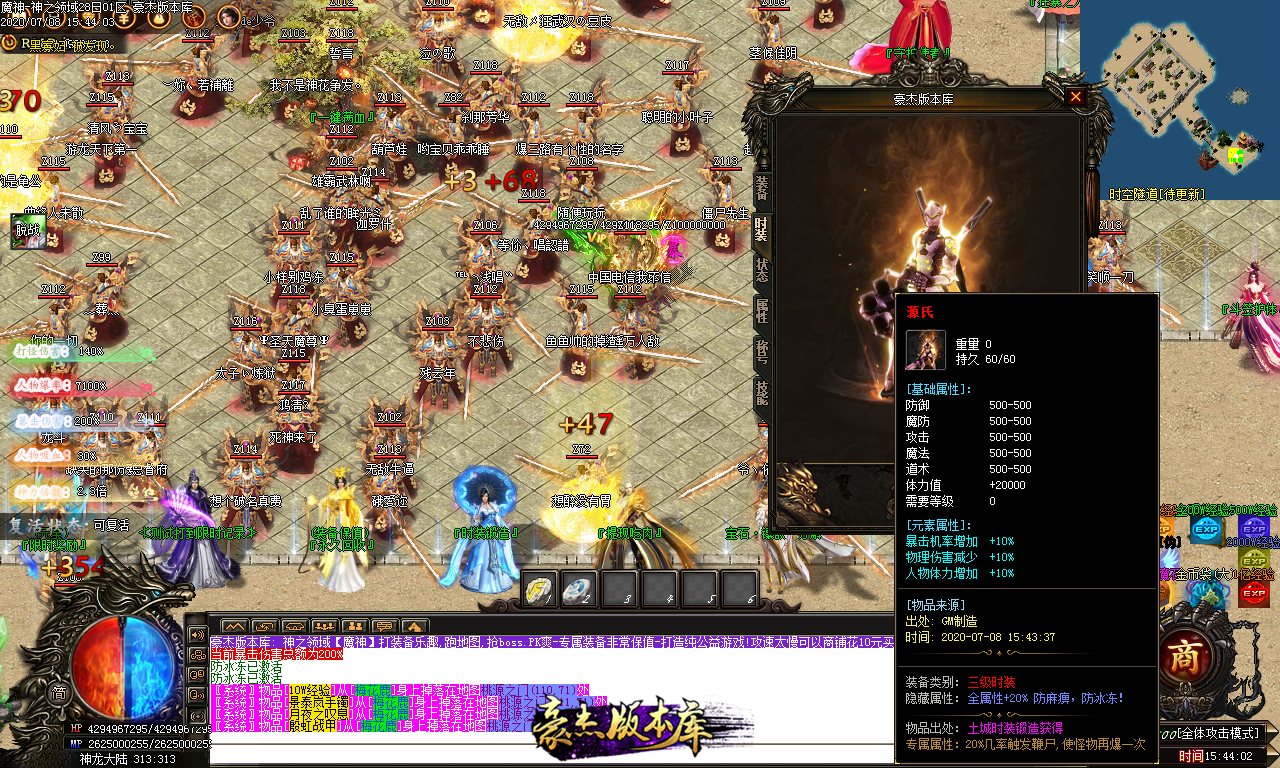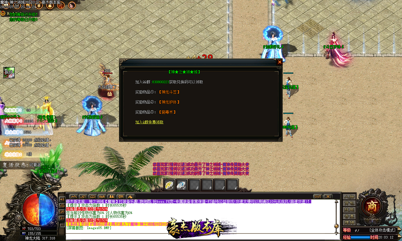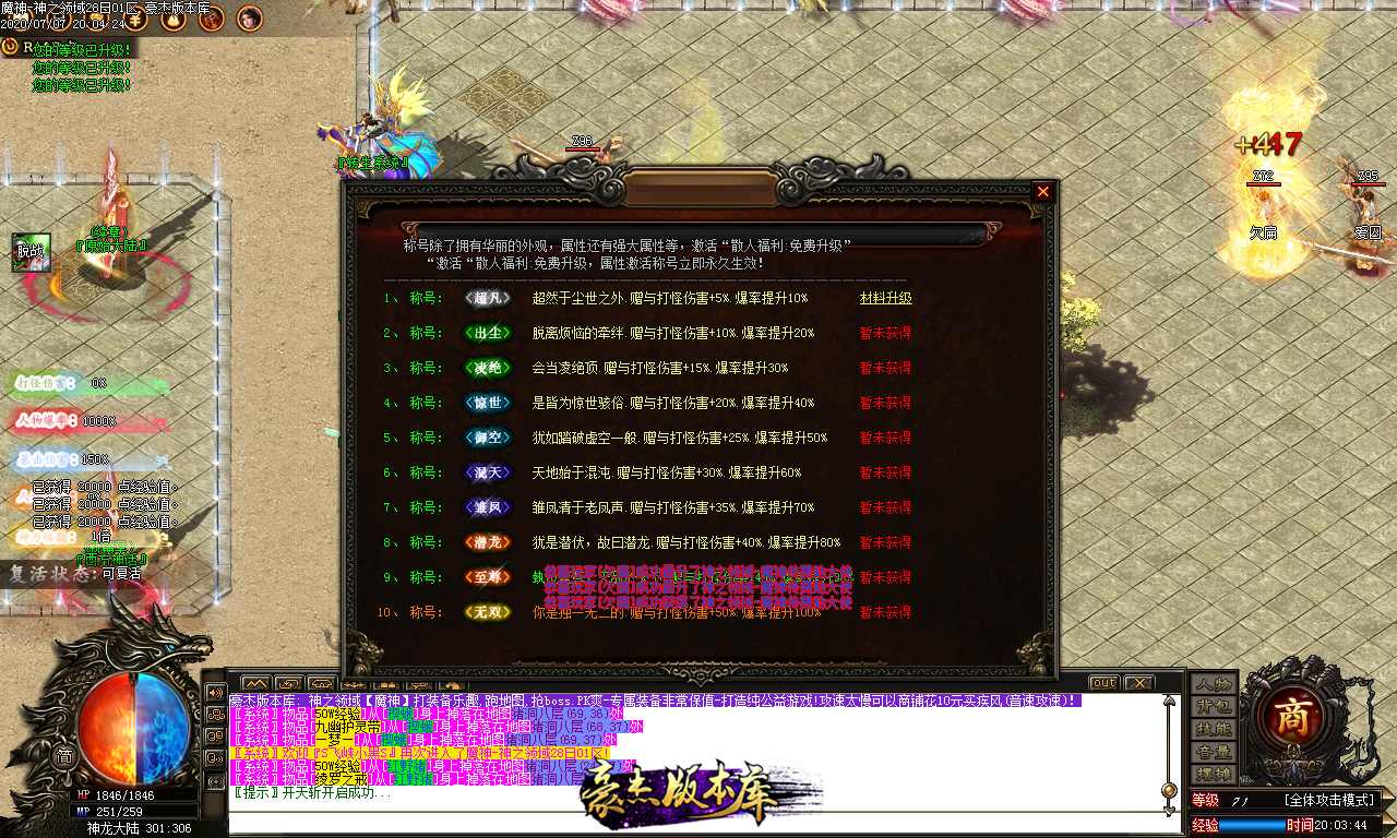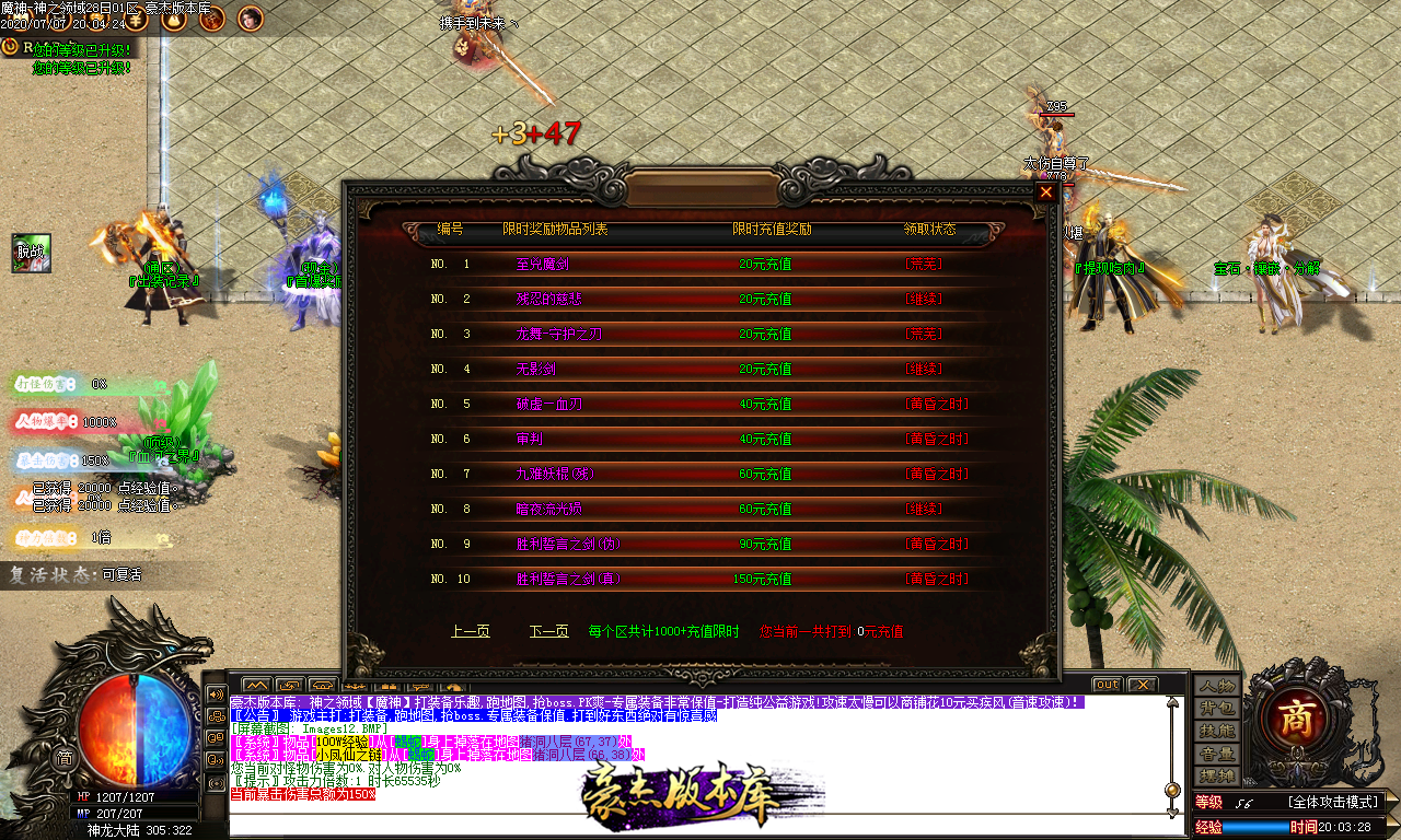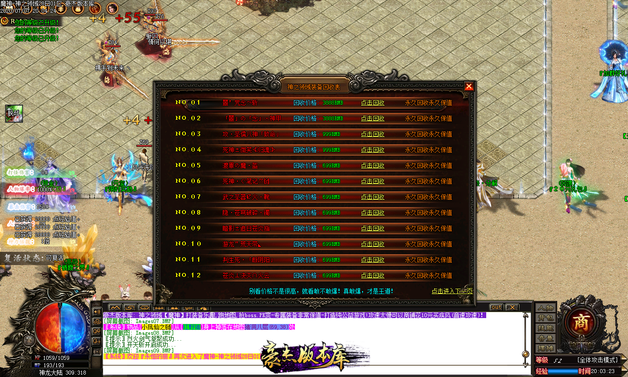 全身强化12星触发最大生命值 + 60% 打怪伤害 + 500%+3%几率切割 (20元回馈NPC,领取之后。积分兑换,200块元宝充值兑换一套)
