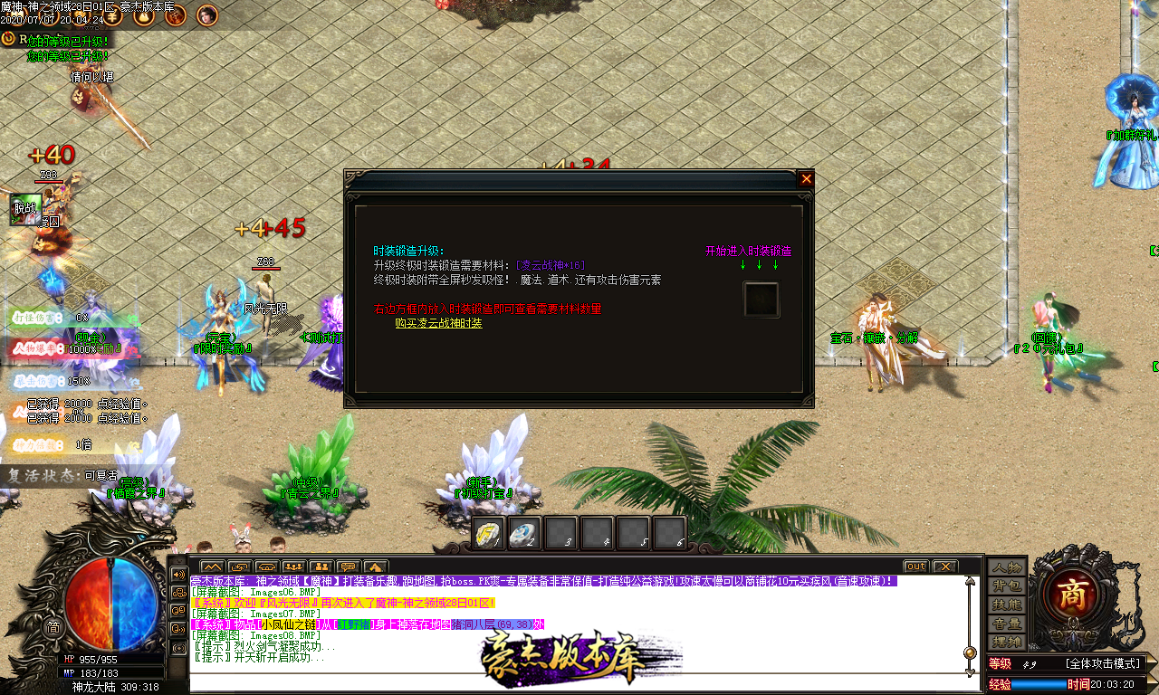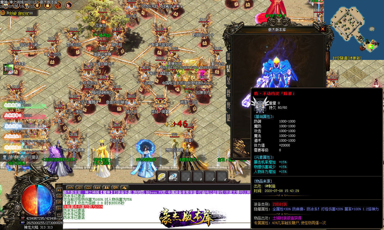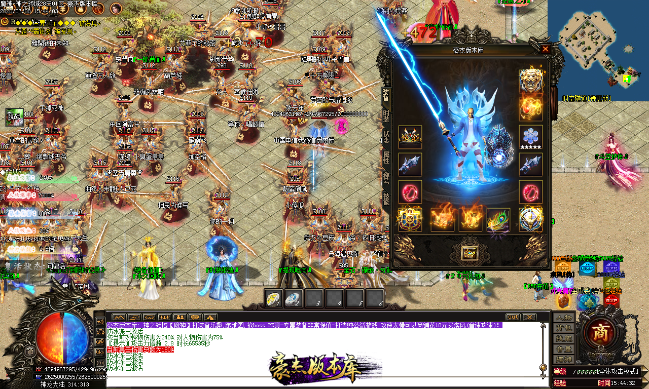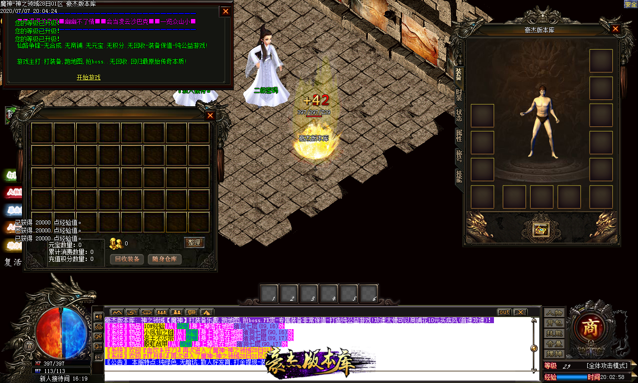 全身强化12星触发最大生命值 + 60% 打怪伤害 + 500%+3%几率切割 (20元回馈NPC,领取之后。积分兑换,200块元宝充值兑换一套)