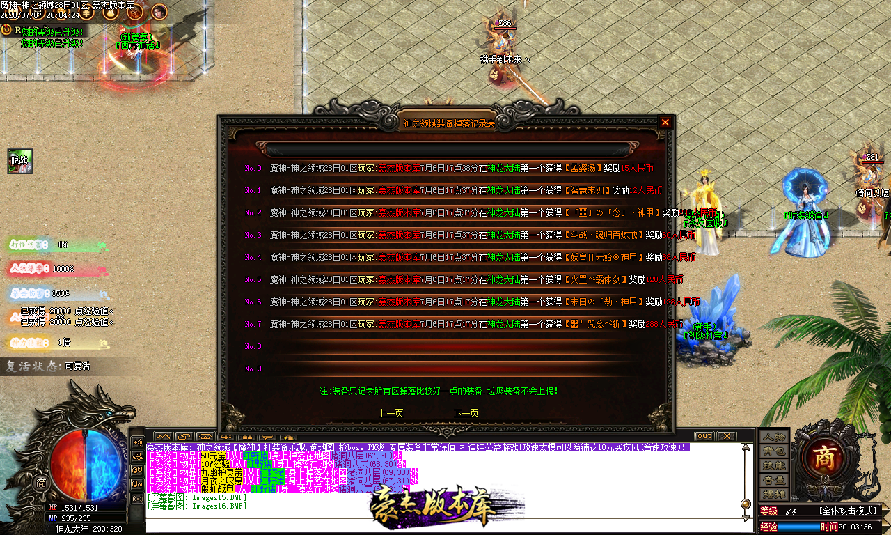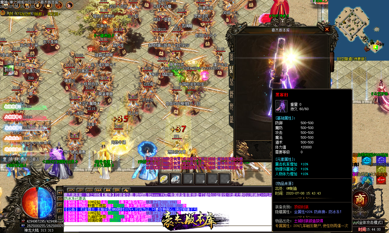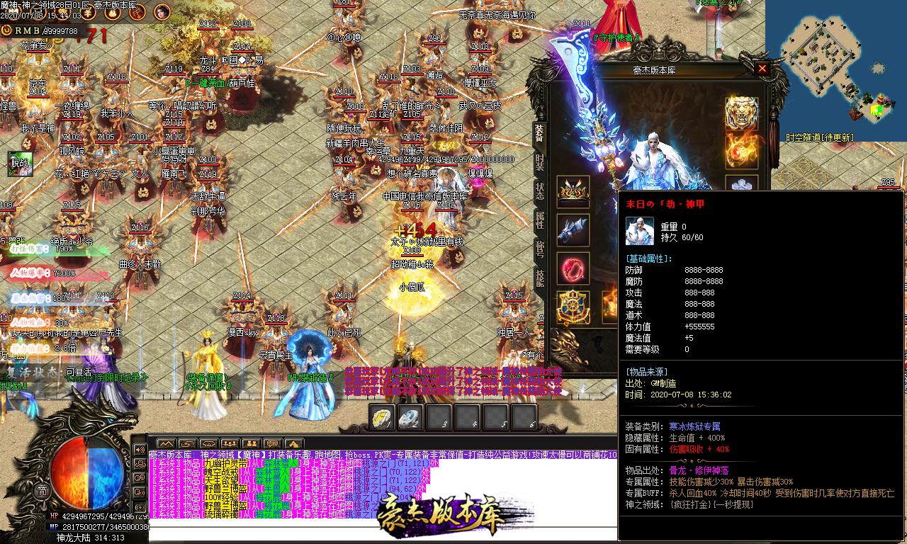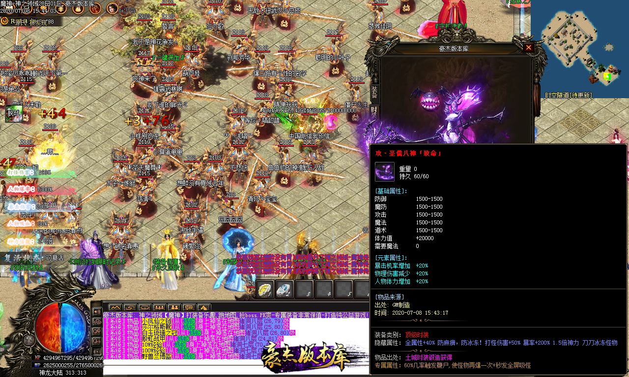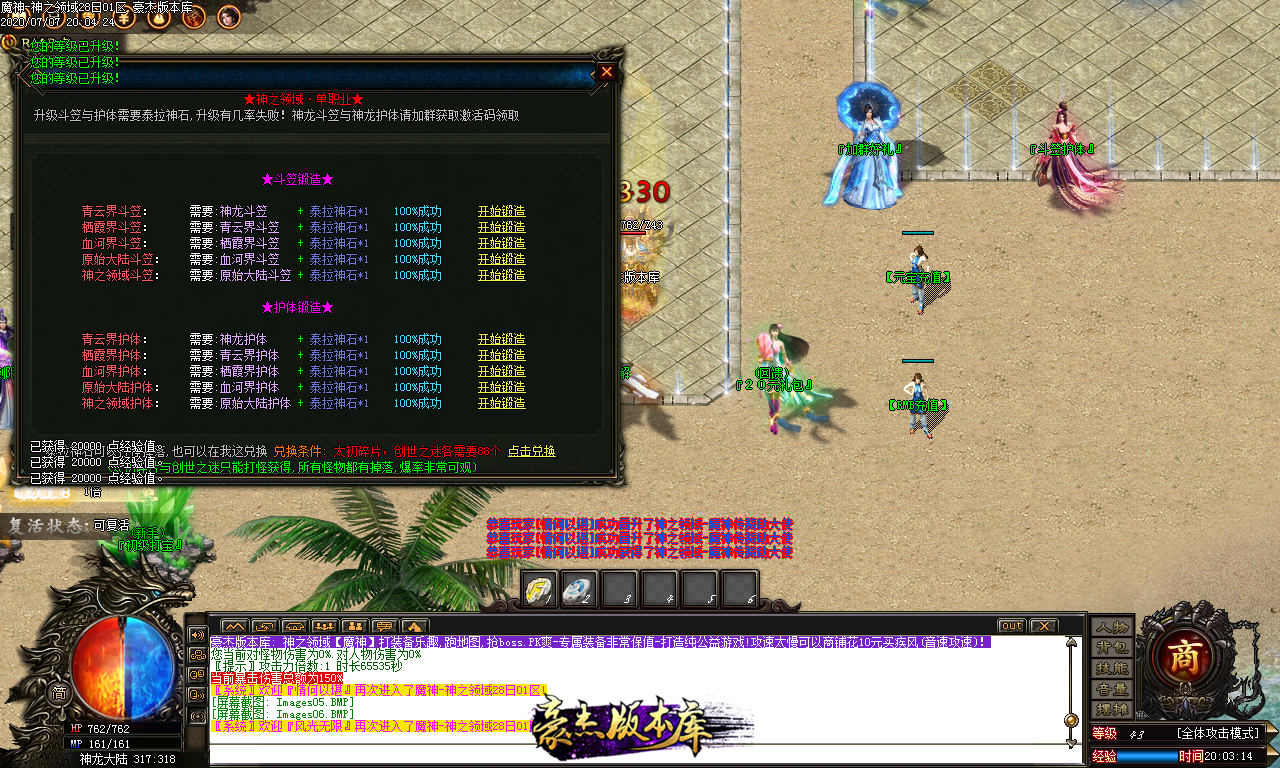 全身强化12星触发最大生命值 + 60% 打怪伤害 + 500%+3%几率切割 (20元回馈NPC,领取之后。积分兑换,200块元宝充值兑换一套)