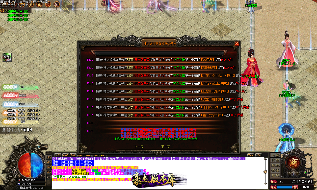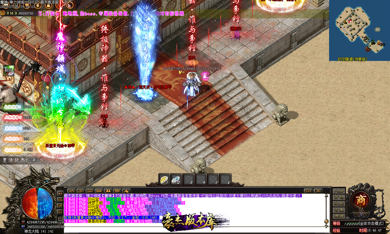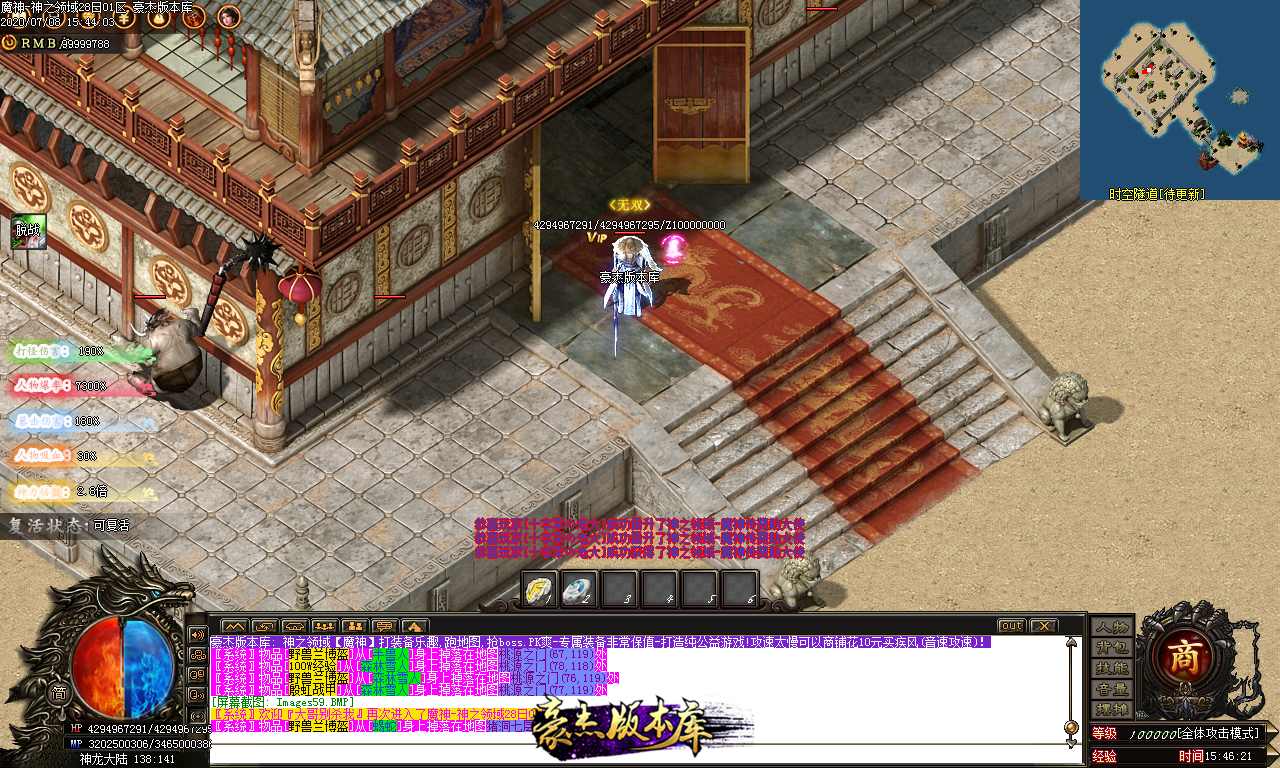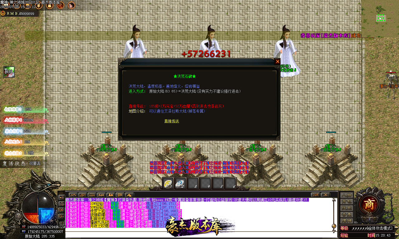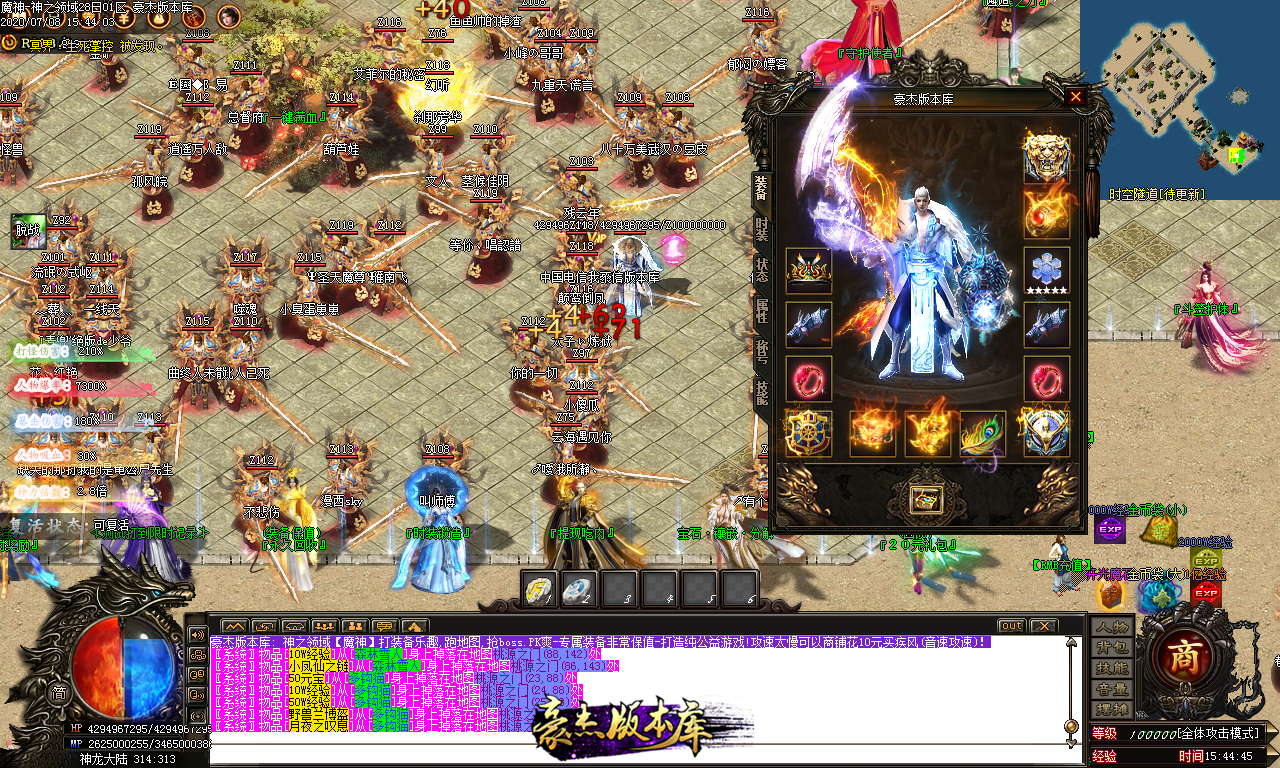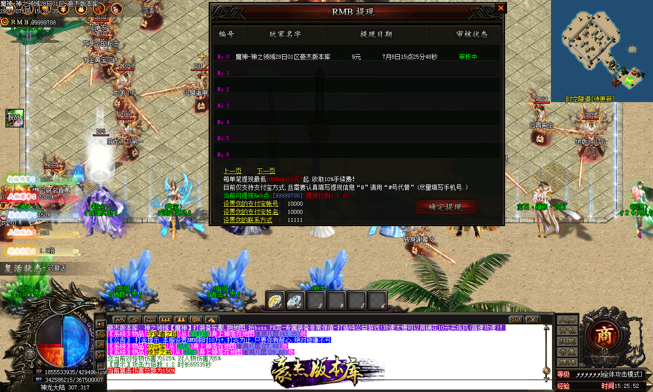 全身强化15星触发最大生命值 + 100% 打怪伤害 + 800%+5%几率切割 (20元回馈NPC,领取之后。积分兑换,500块元宝充值兑换一套)