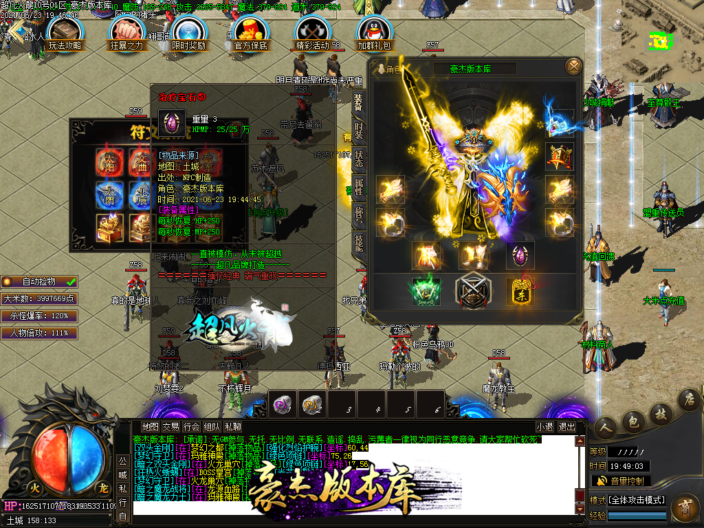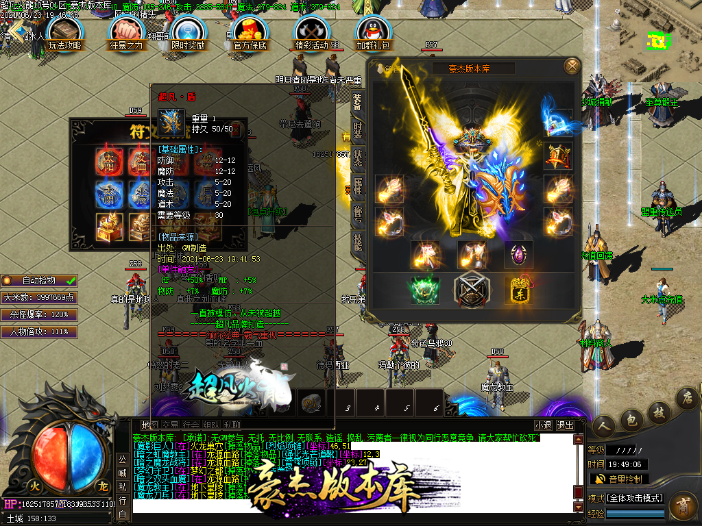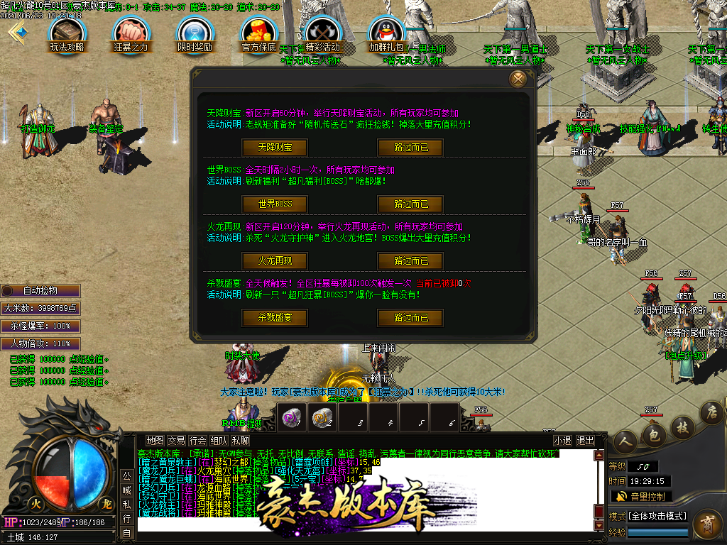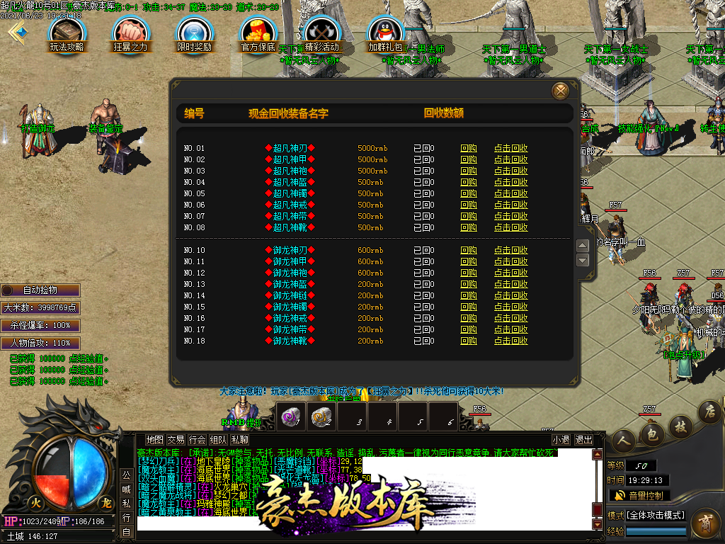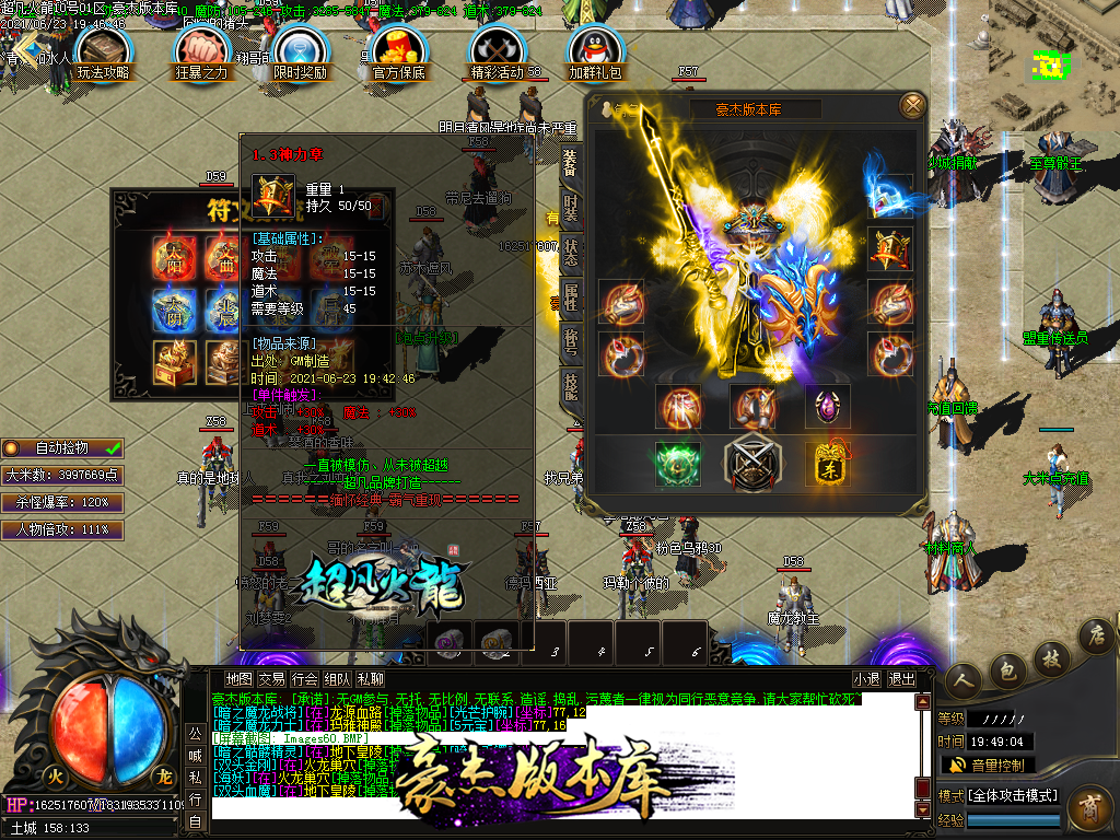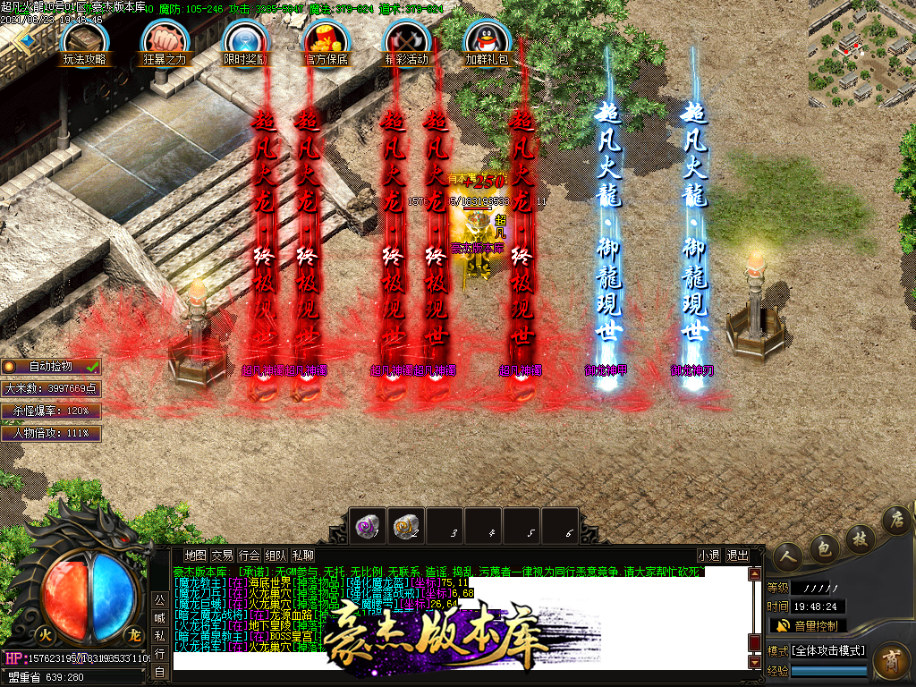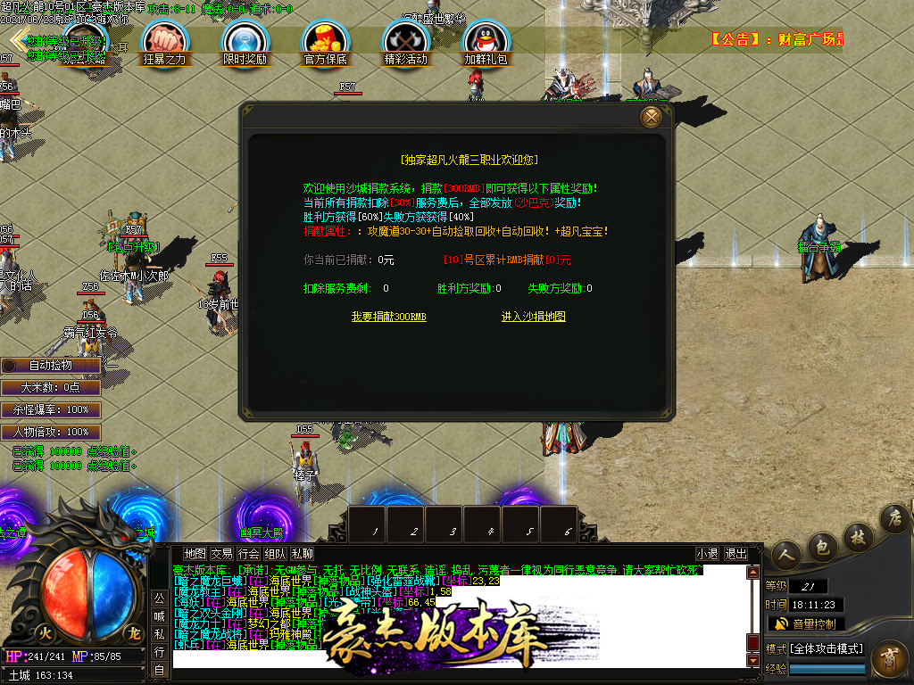 付费购买-独家超凡复古火龙打金三职业传奇版本_带假人_PG插件_光柱_自动回收_沙城捐献
