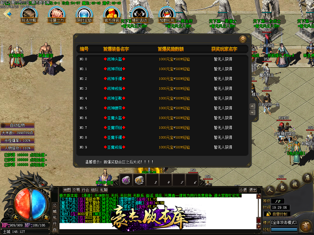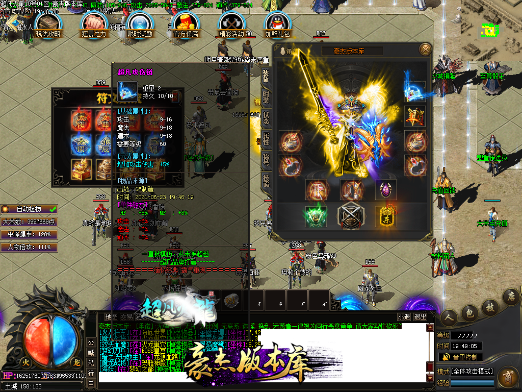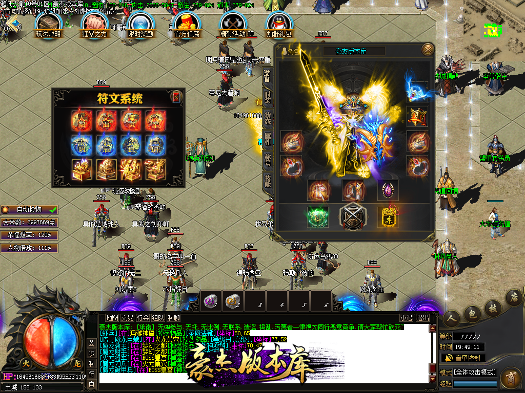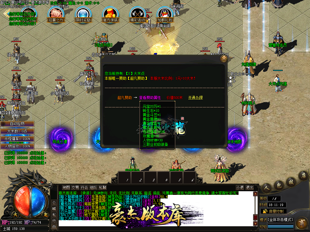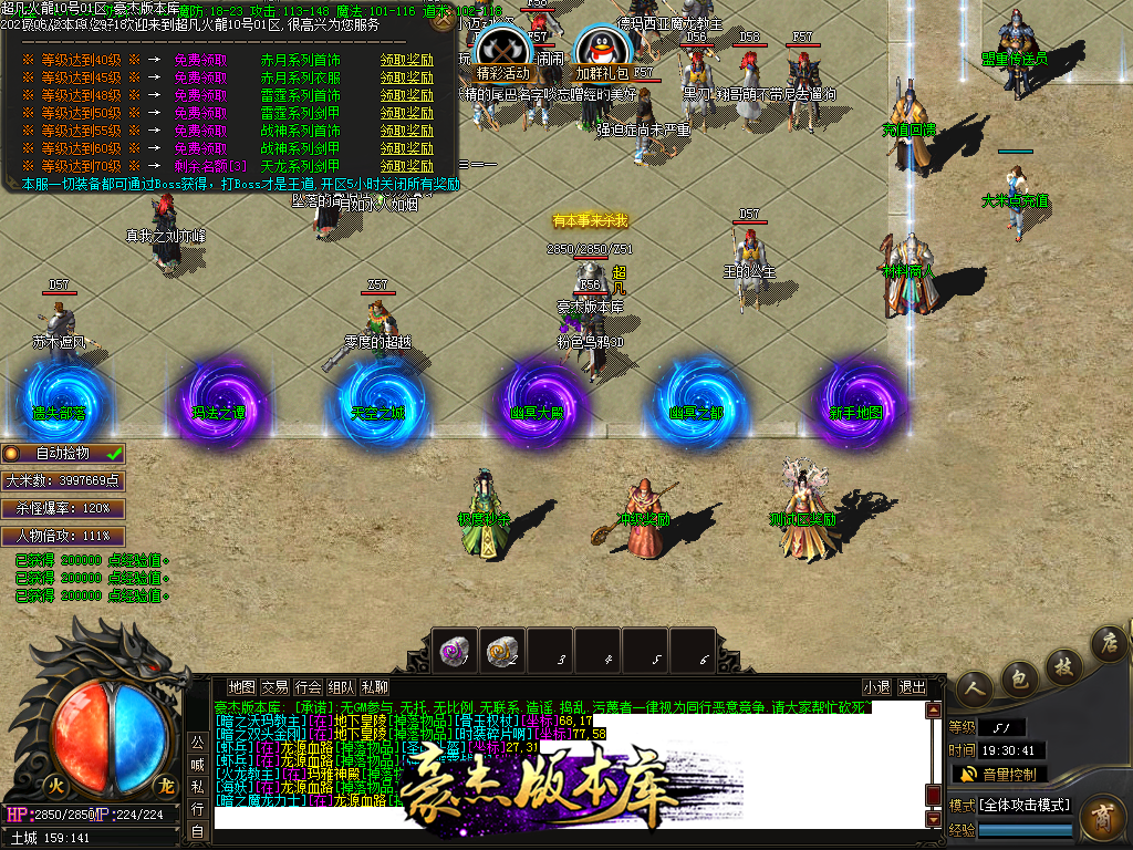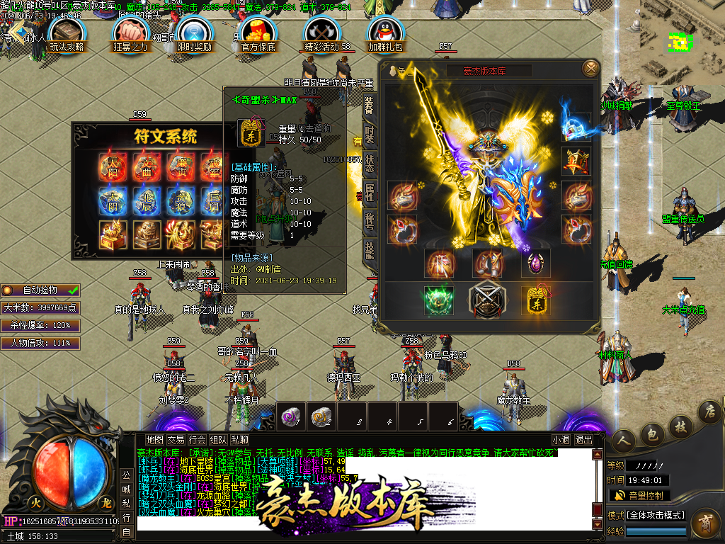 付费购买-独家超凡复古火龙打金三职业传奇版本_带假人_PG插件_光柱_自动回收_沙城捐献