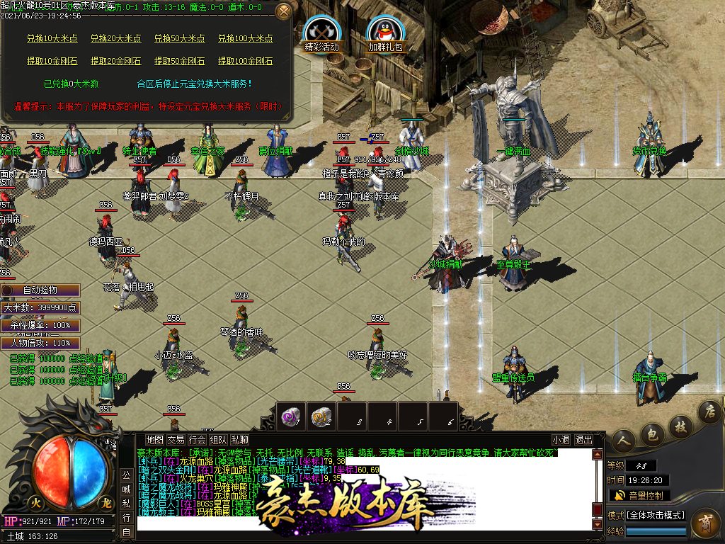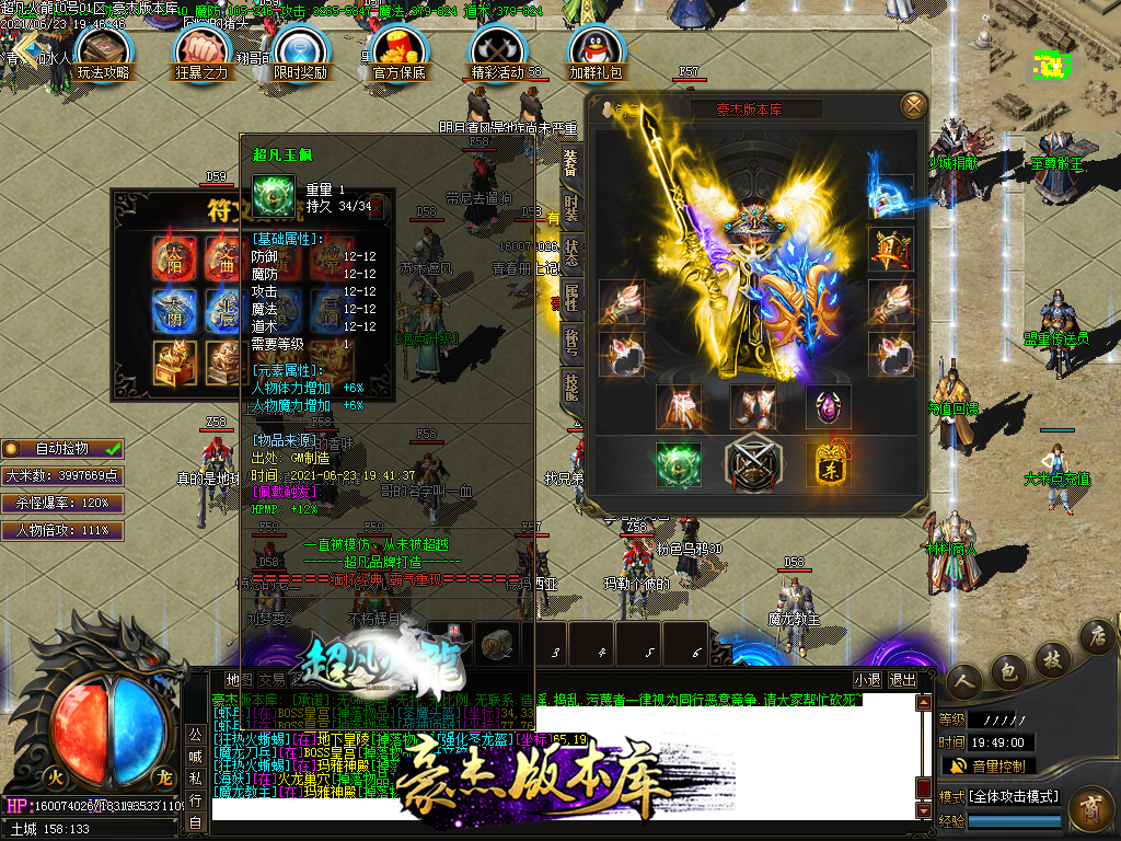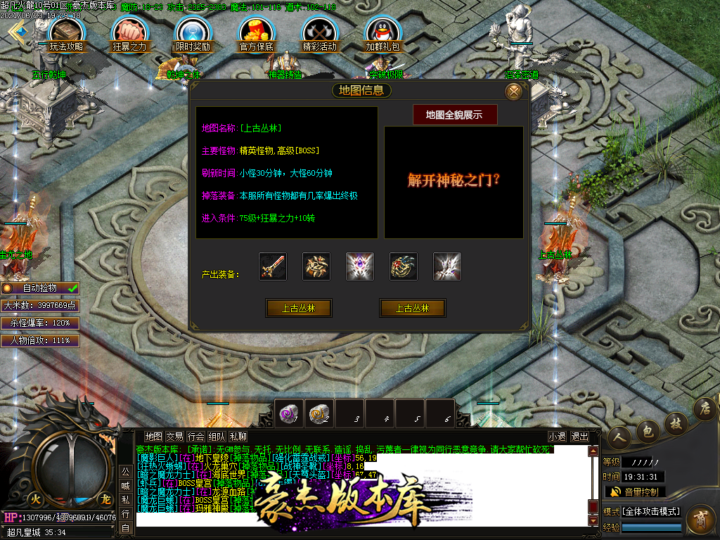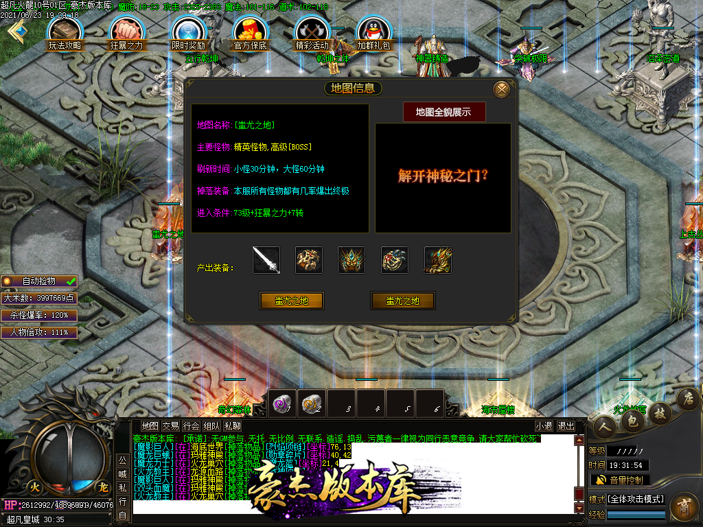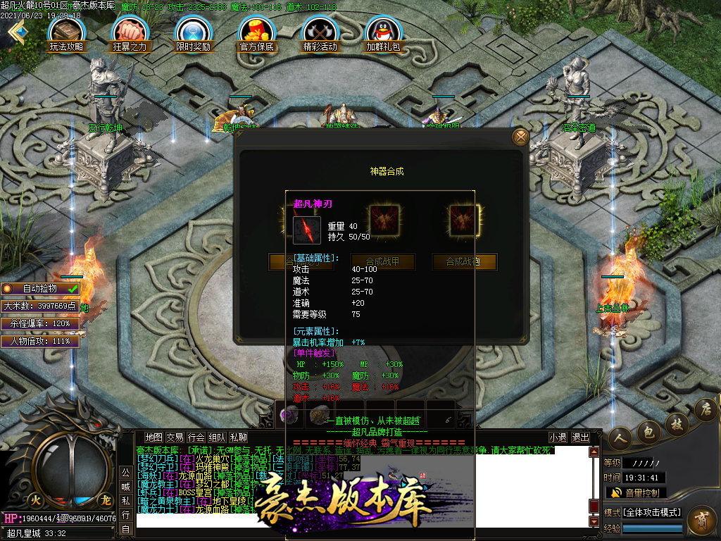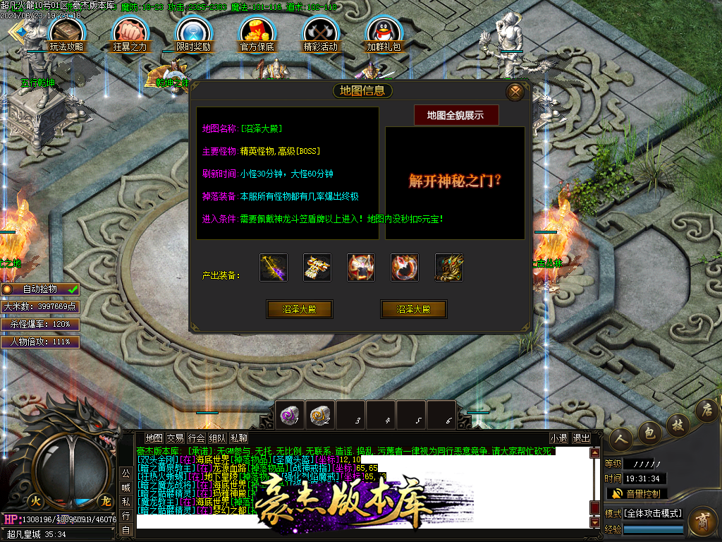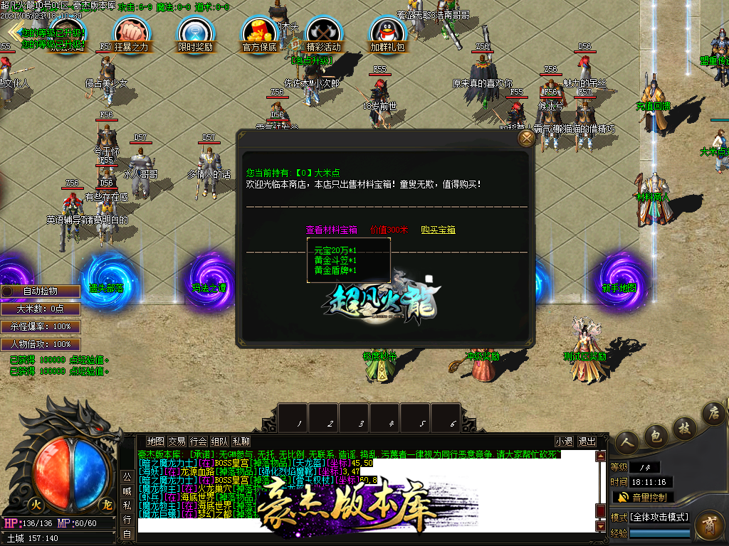 付费购买-独家超凡复古火龙打金三职业传奇版本_带假人_PG插件_光柱_自动回收_沙城捐献