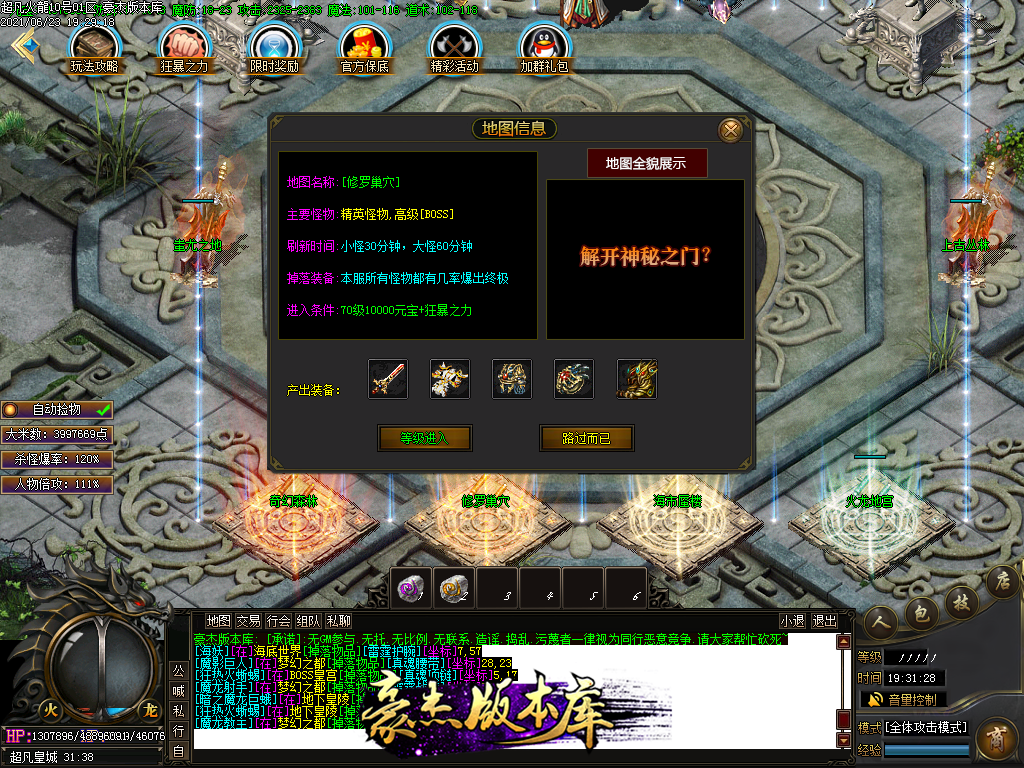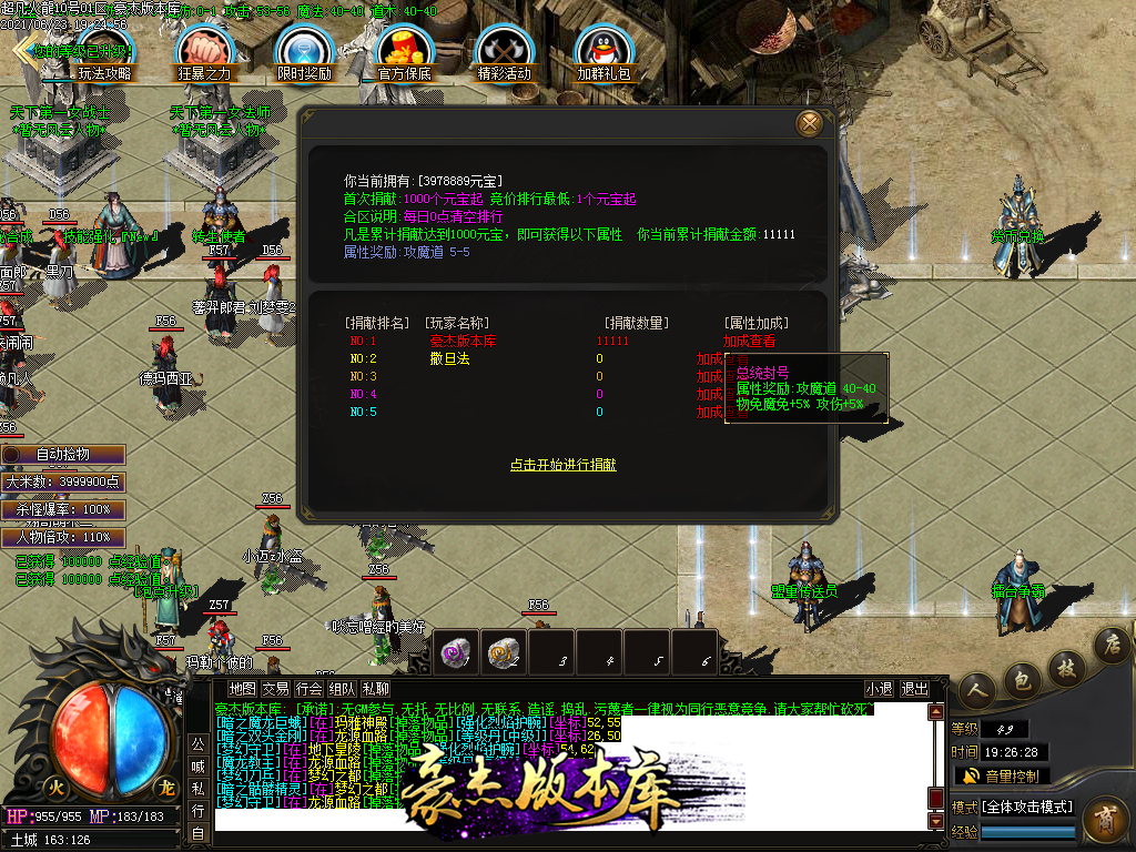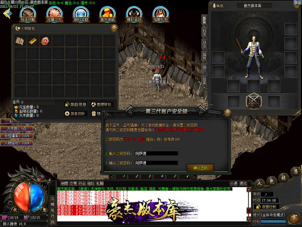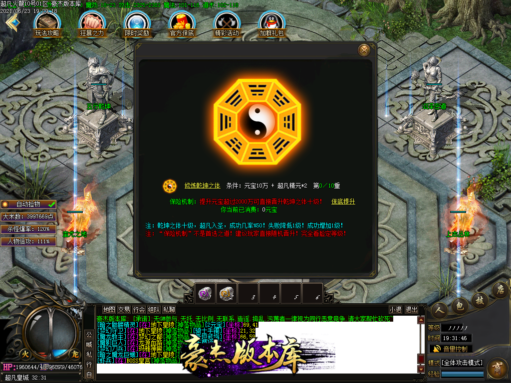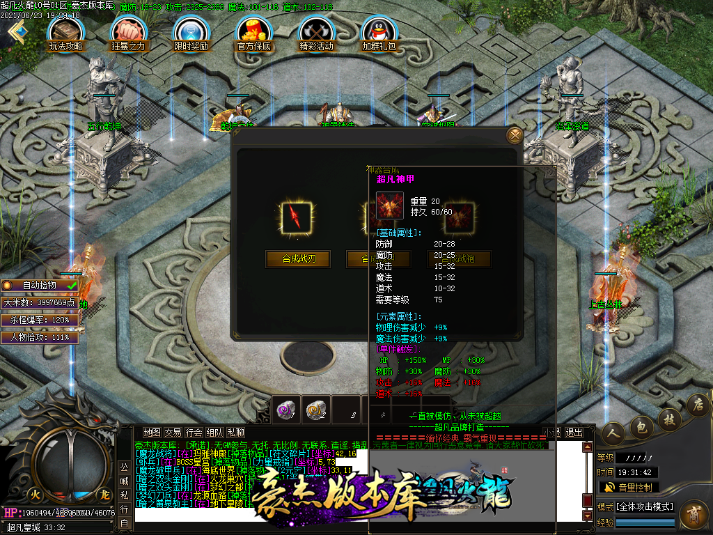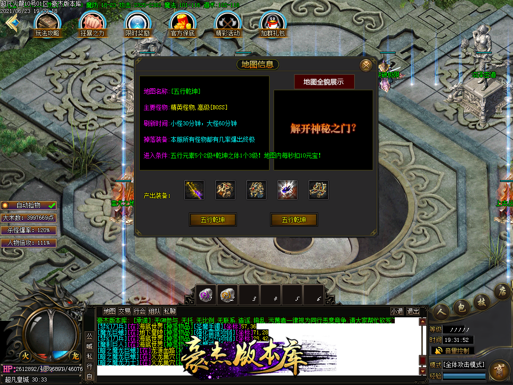 付费购买-独家超凡复古火龙打金三职业传奇版本_带假人_PG插件_光柱_自动回收_沙城捐献