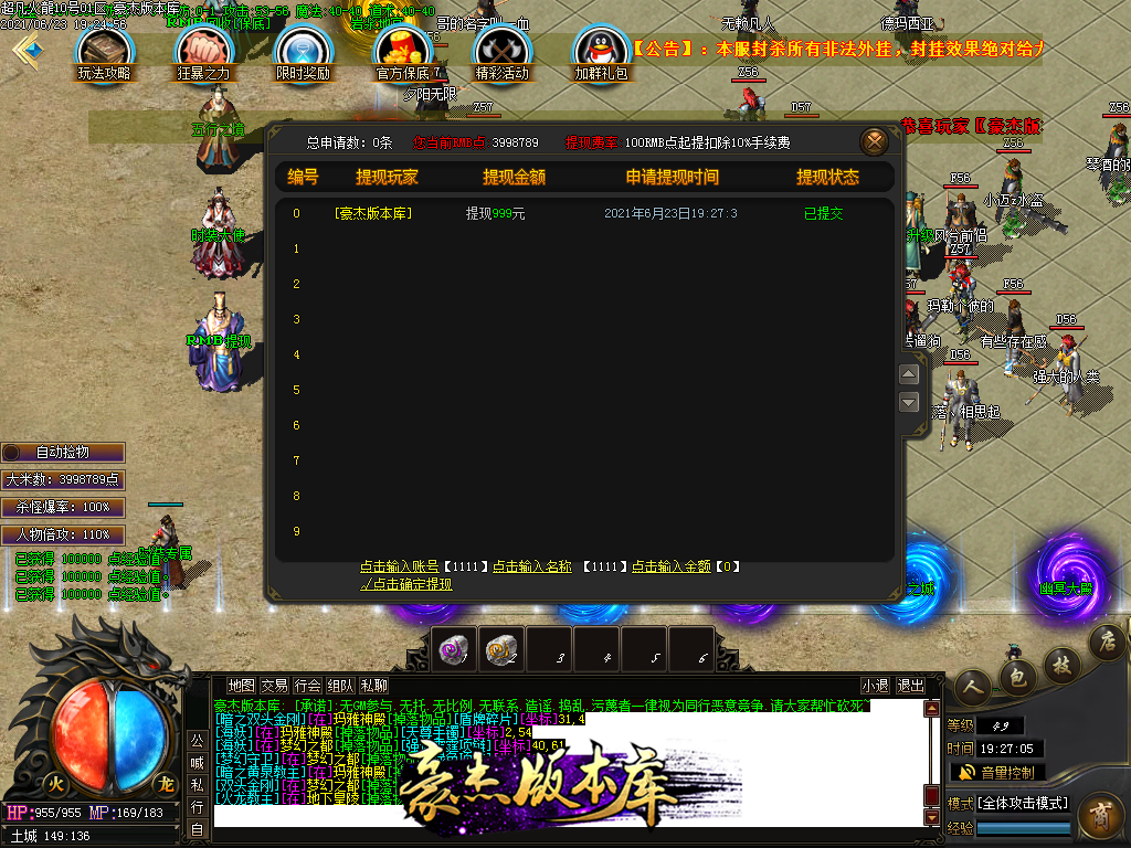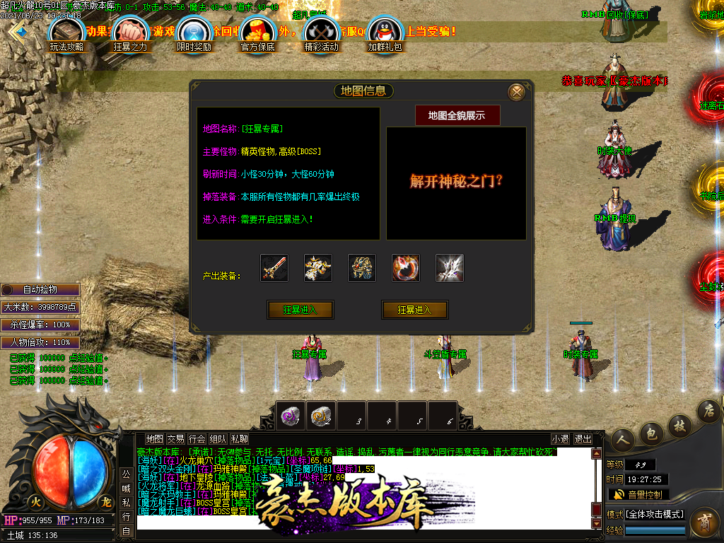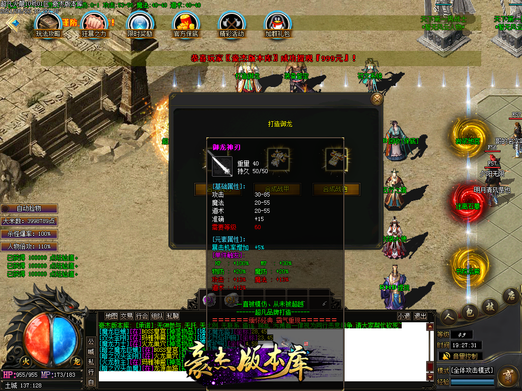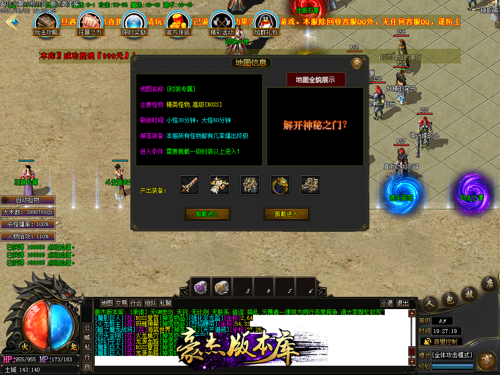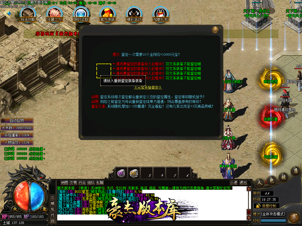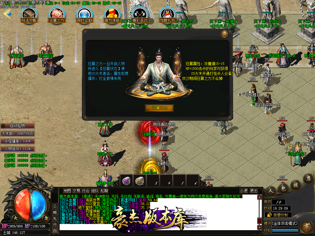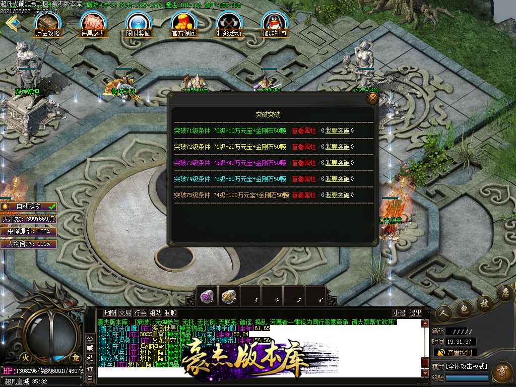 付费购买-独家超凡复古火龙打金三职业传奇版本_带假人_PG插件_光柱_自动回收_沙城捐献