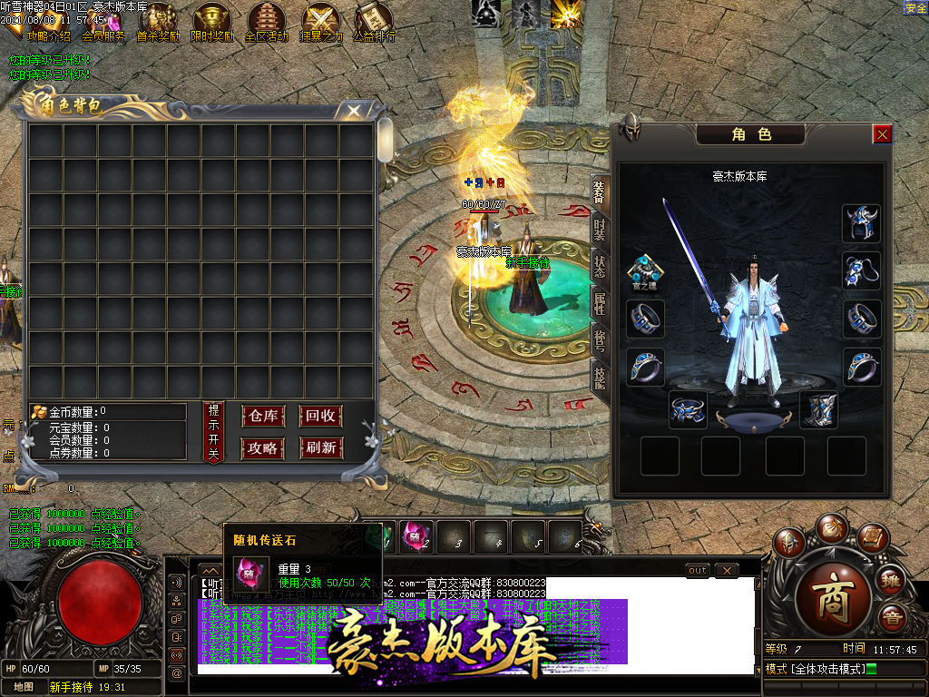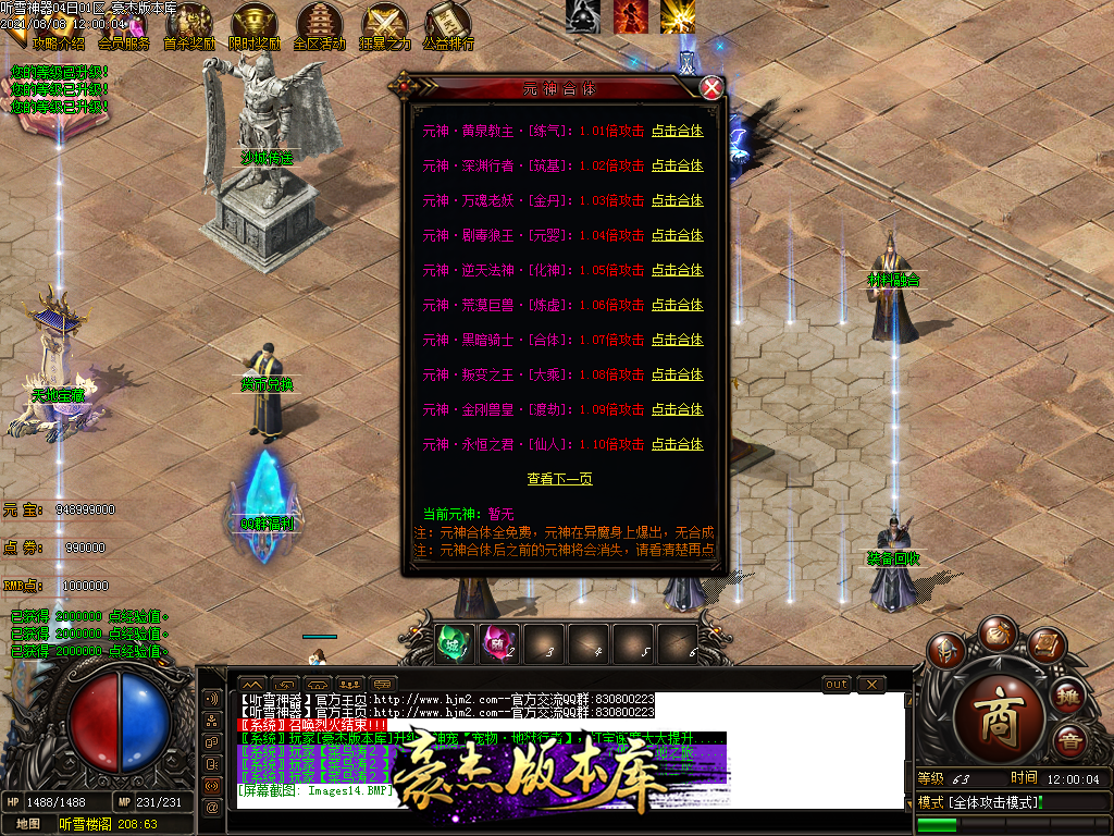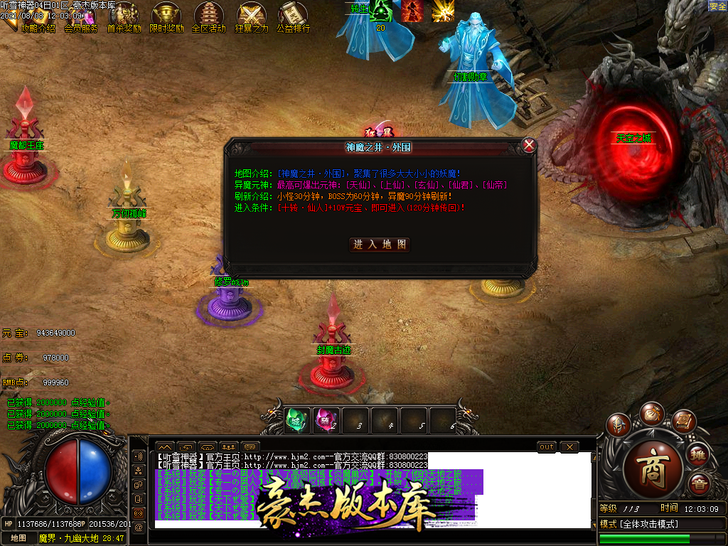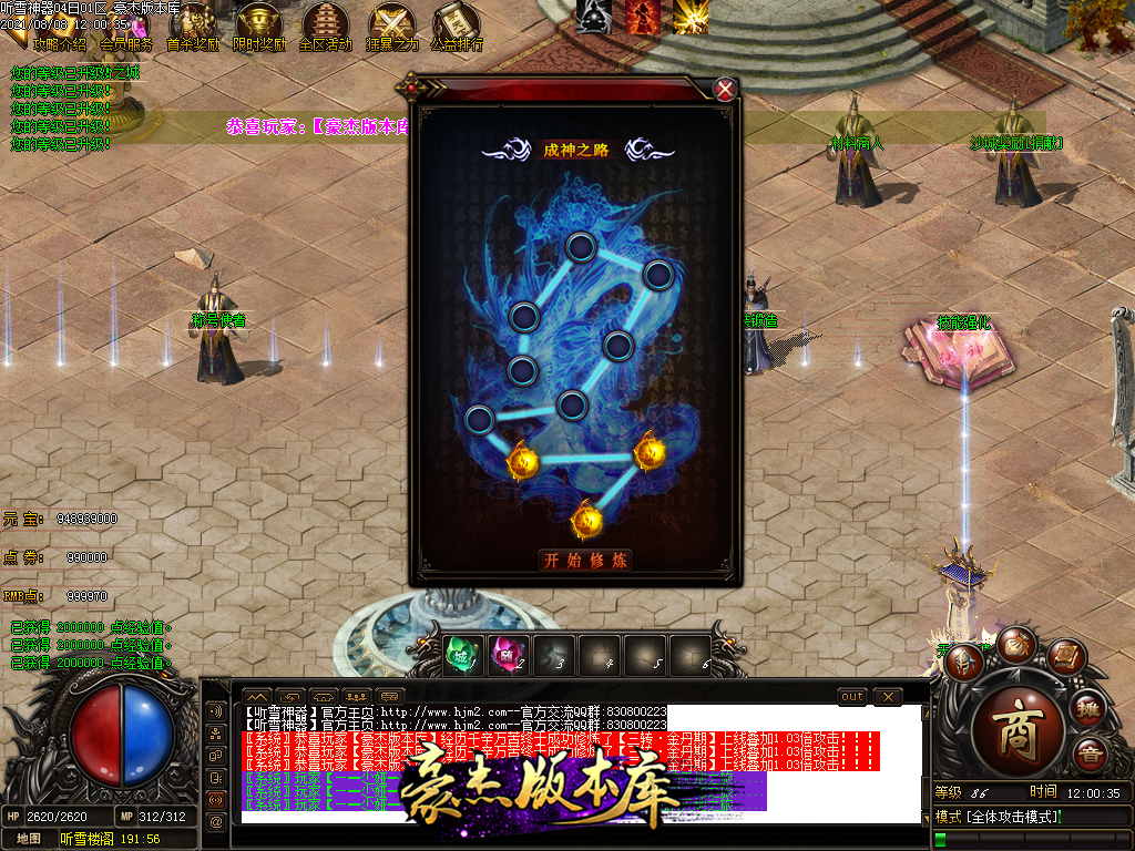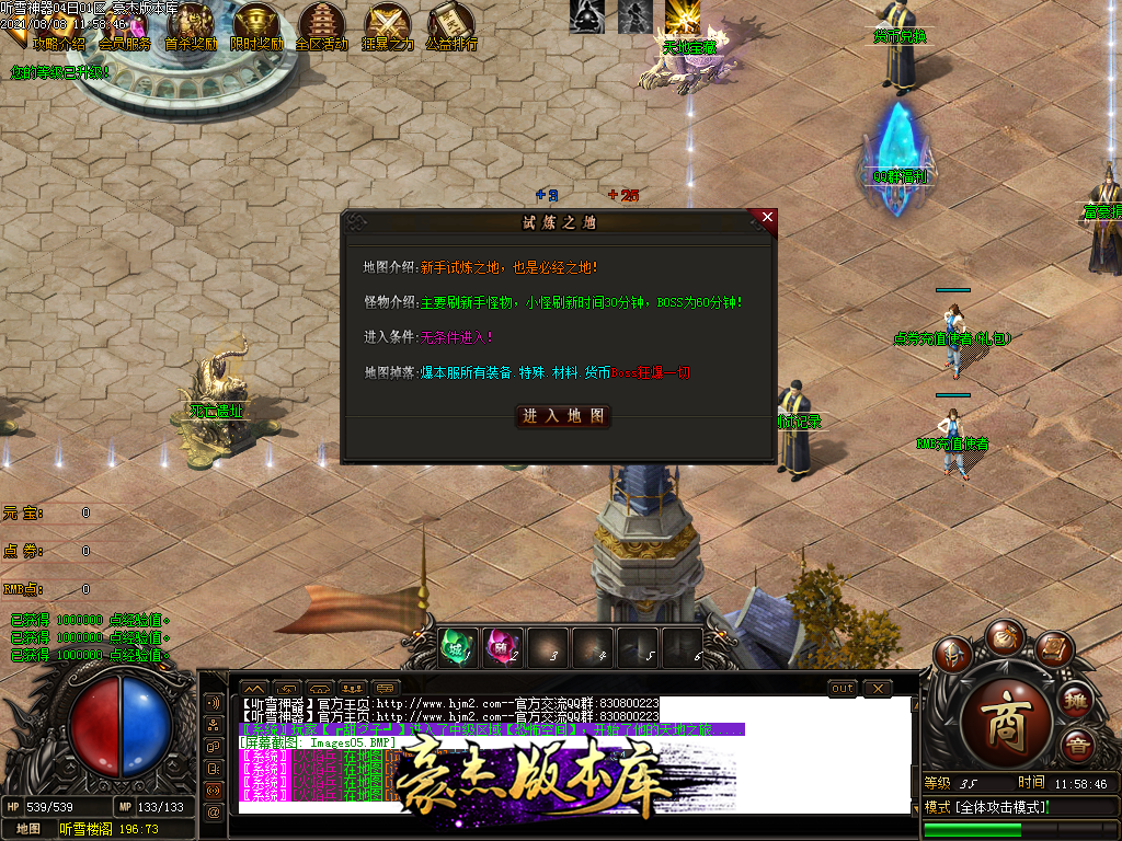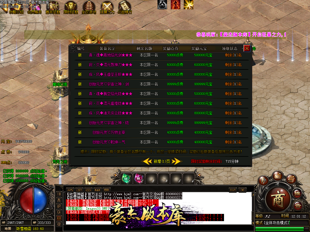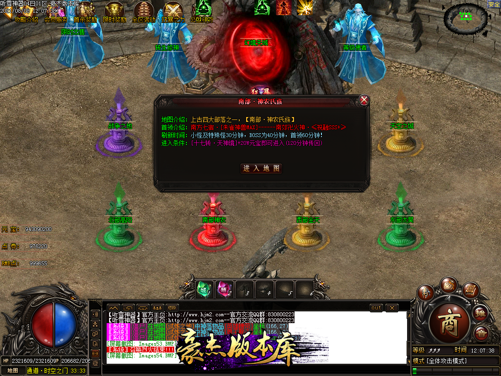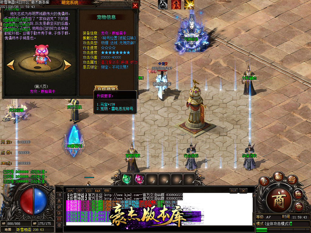 然后就是 进能进的地图打首暴和首杀获得点卷和元宝,前期基本靠宝宝,所有打到的元宝就先合宝宝在装备栏神力!