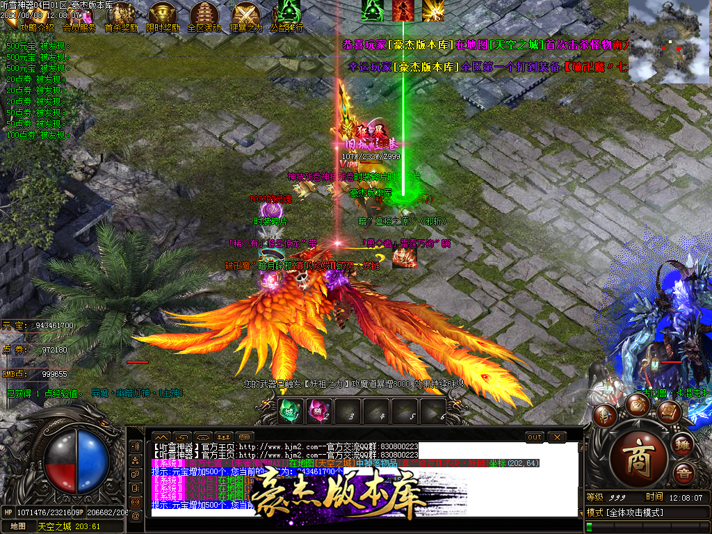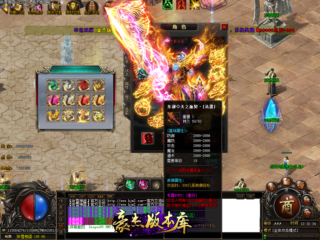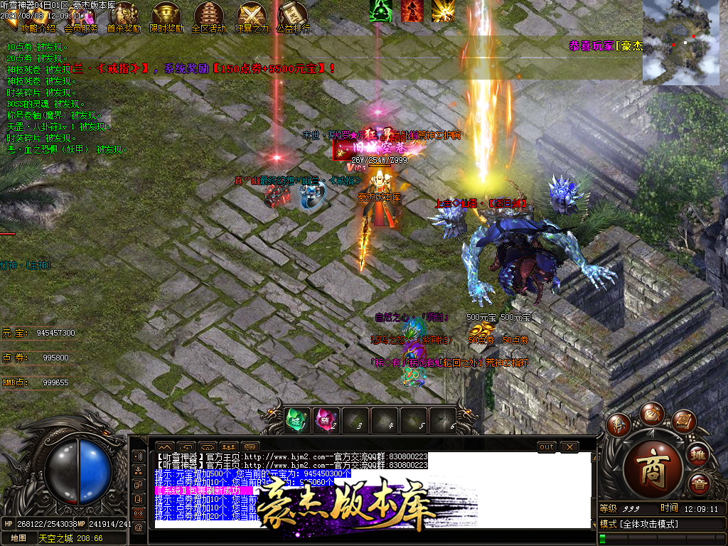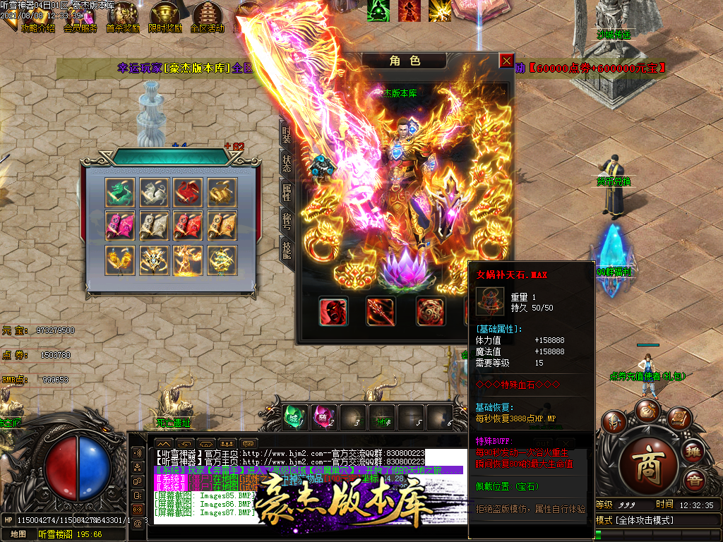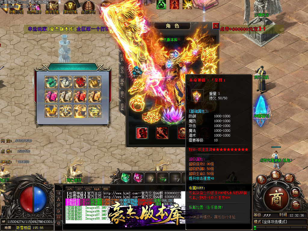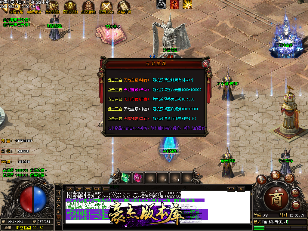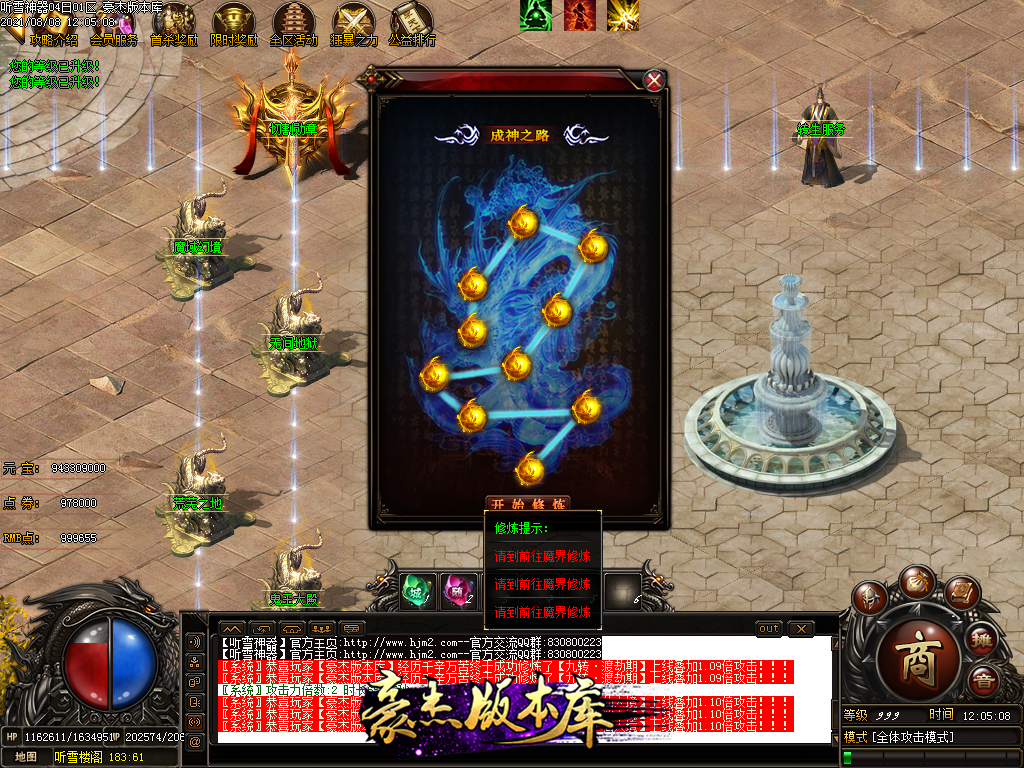 然后就是 进能进的地图打首暴和首杀获得点卷和元宝,前期基本靠宝宝,所有打到的元宝就先合宝宝在装备栏神力!