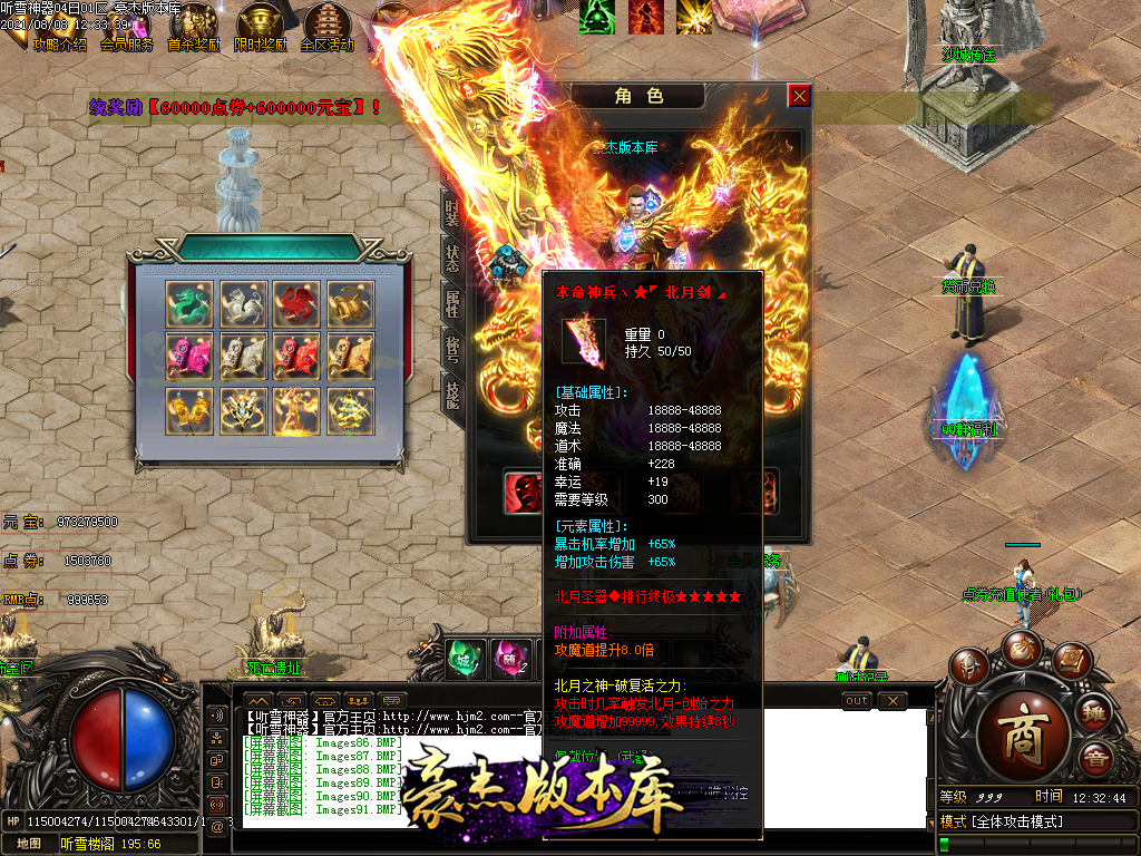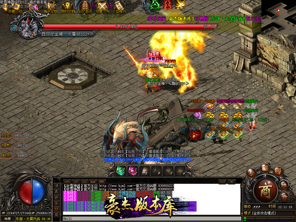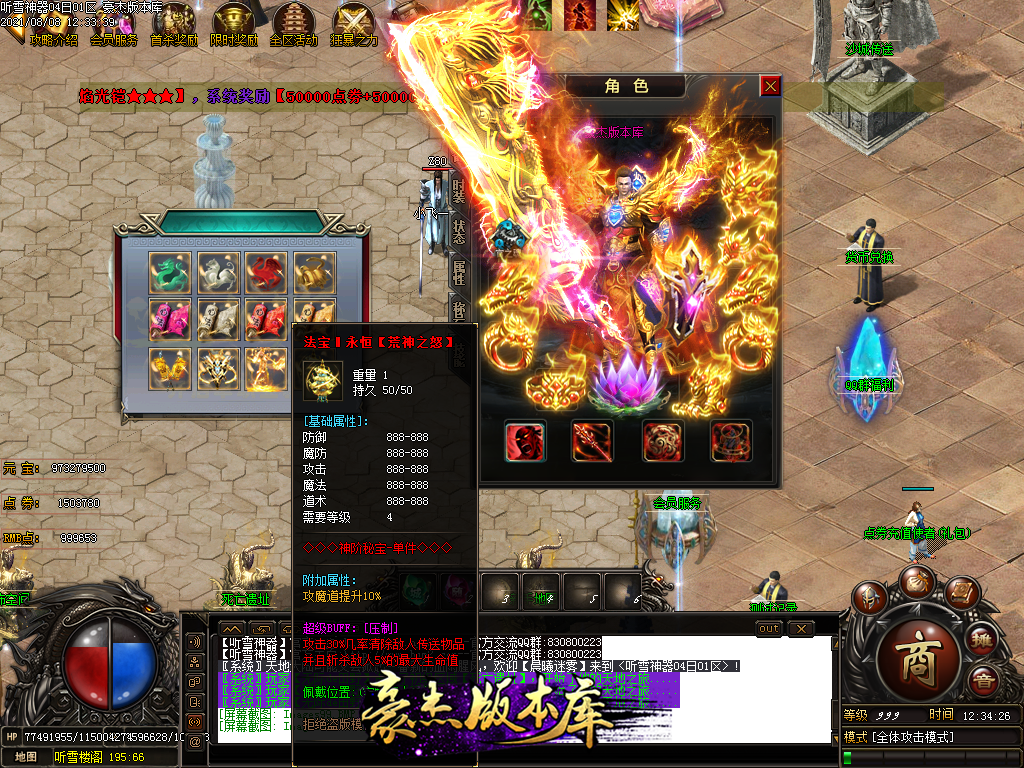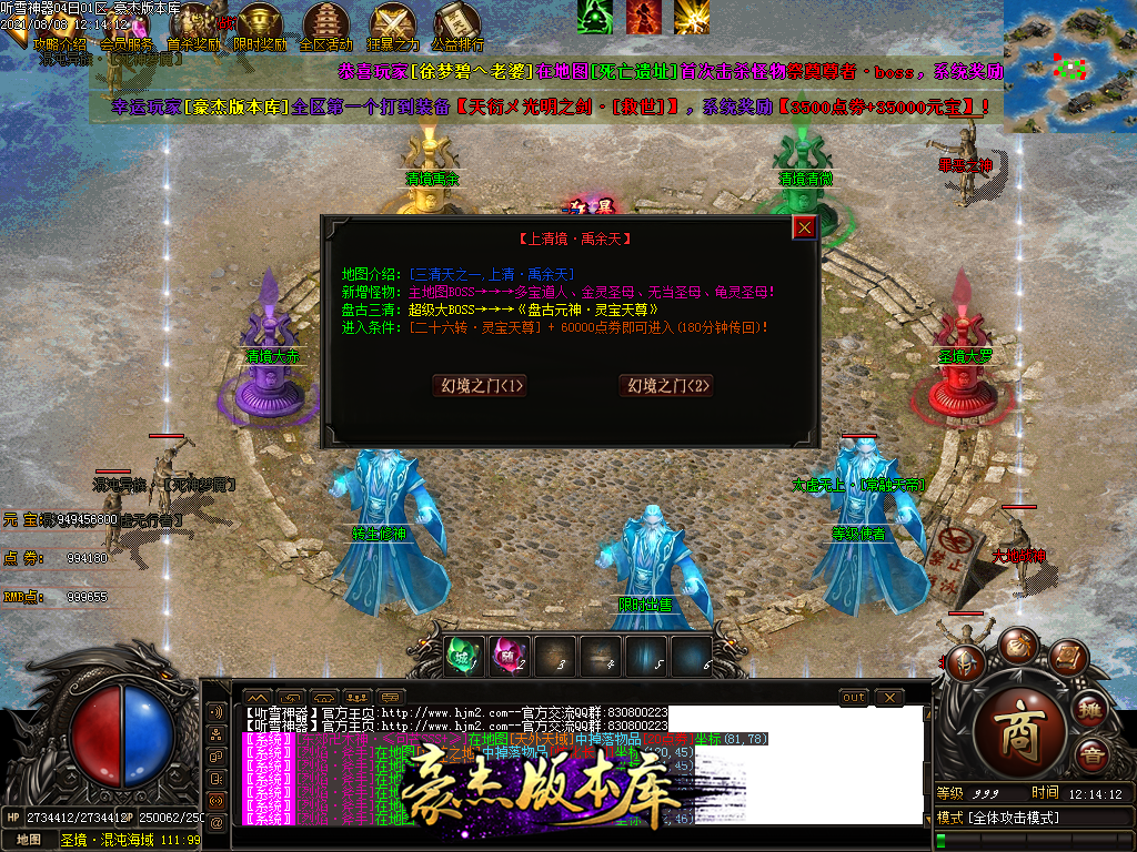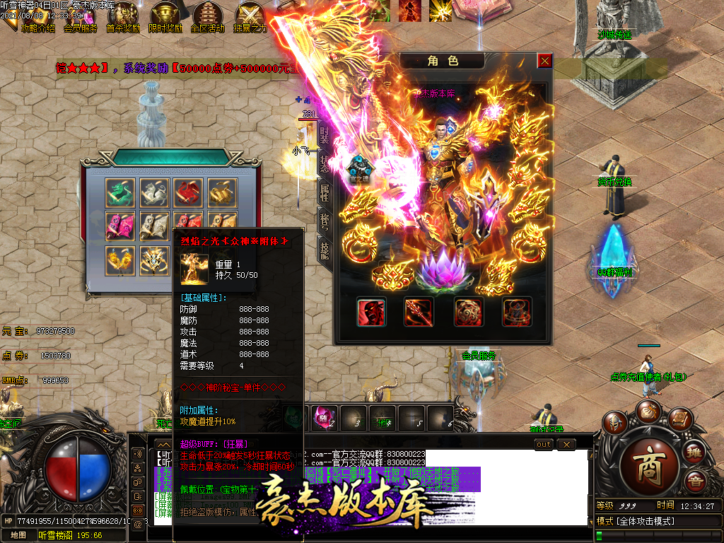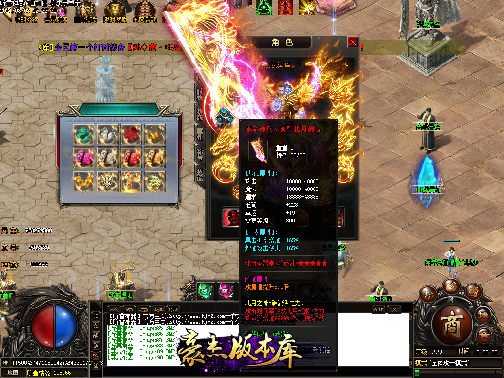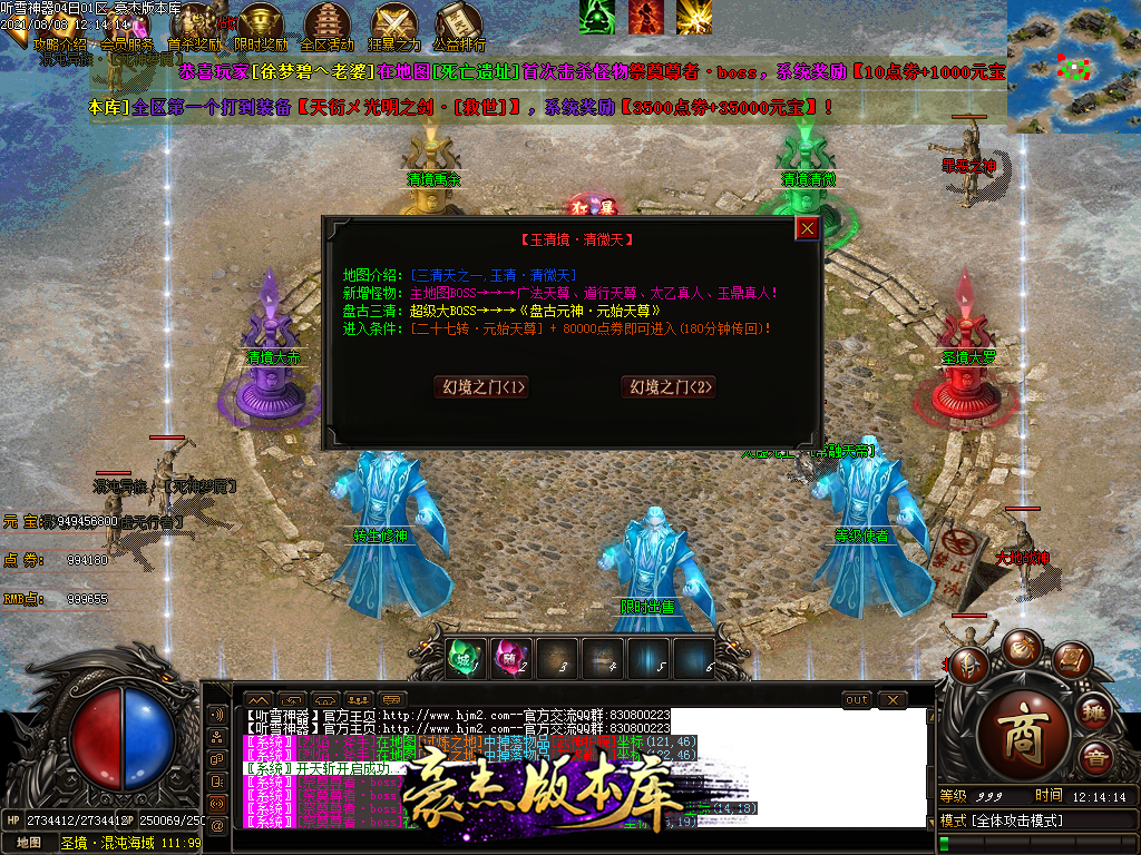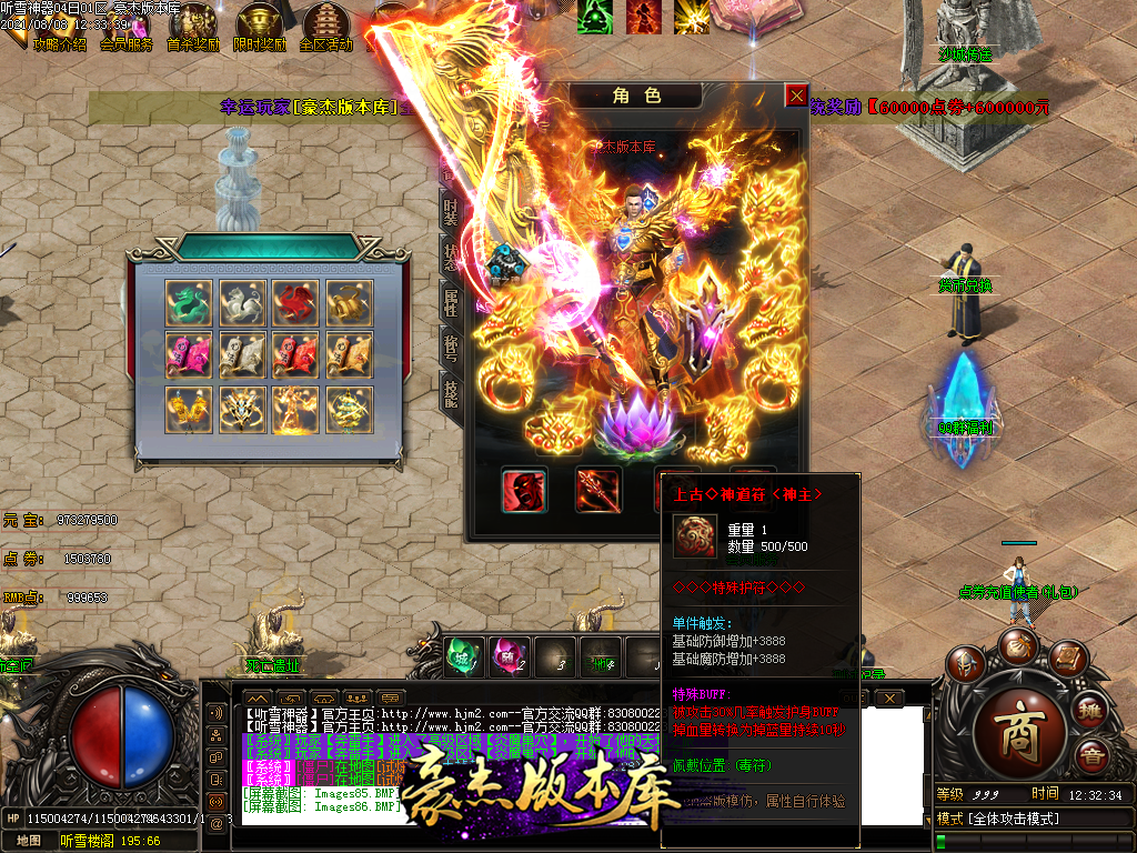 然后就是 进能进的地图打首暴和首杀获得点卷和元宝,前期基本靠宝宝,所有打到的元宝就先合宝宝在装备栏神力!