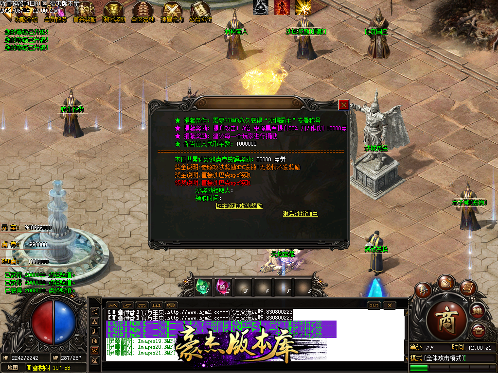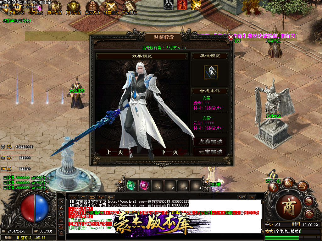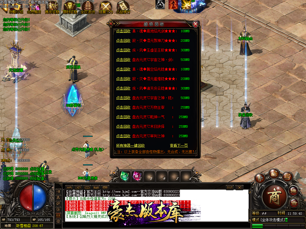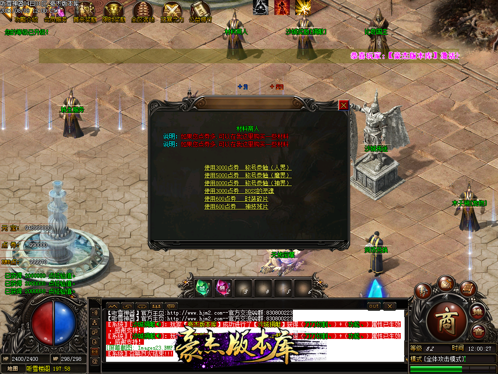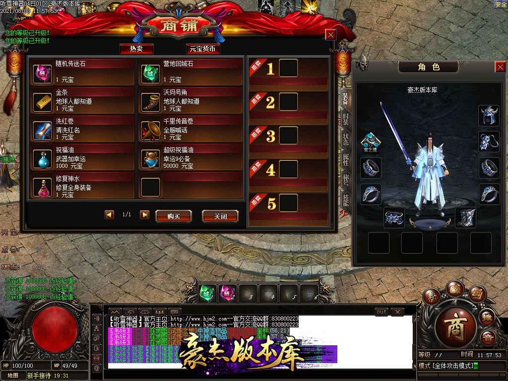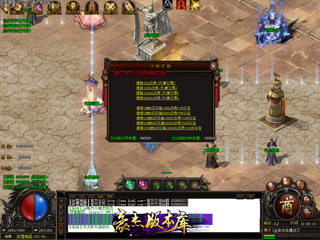 四,游戏充值为RMB点和点卷,1元1RMB点。1比1000点卷 NPC可以自行换取1元=1000点卷和1W元宝!