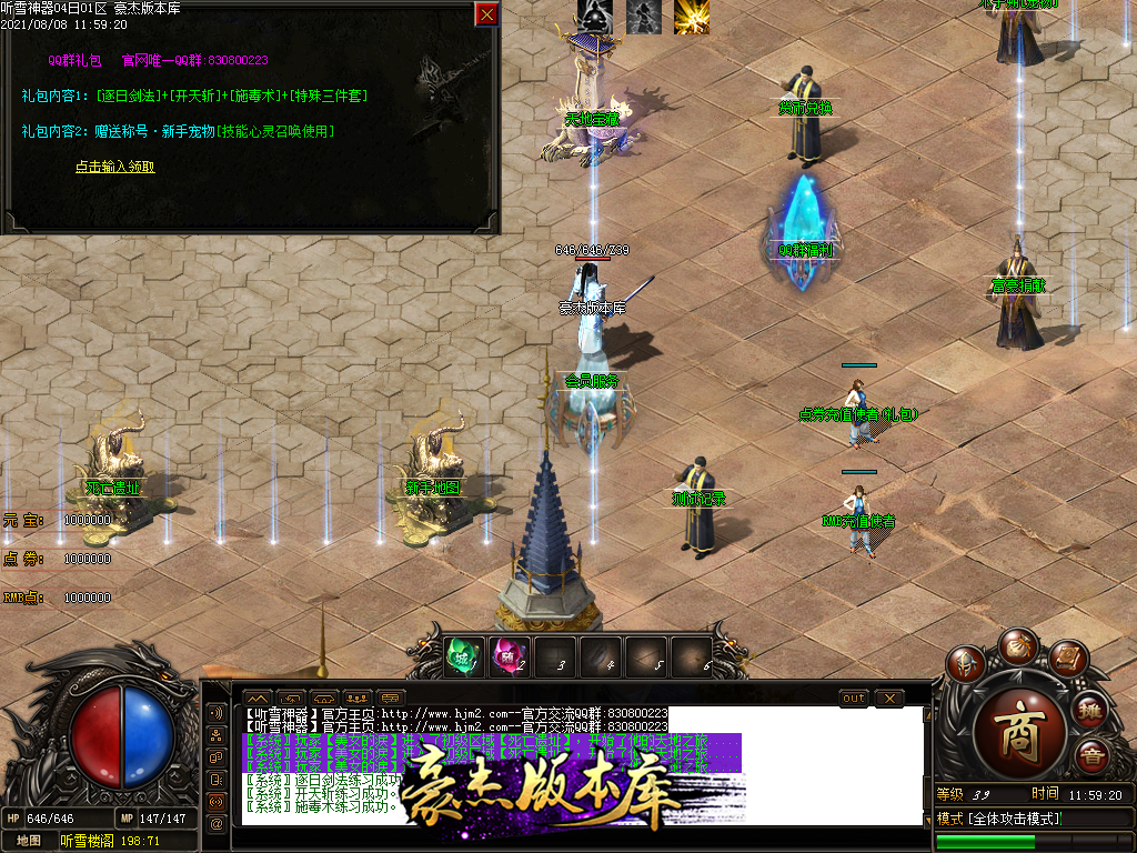 首先玩家上线 第一件事情就是到(土城 202 72)处领取QQ群礼包,赠送新技能及施毒术 称号宝宝 !礼包码为:666888