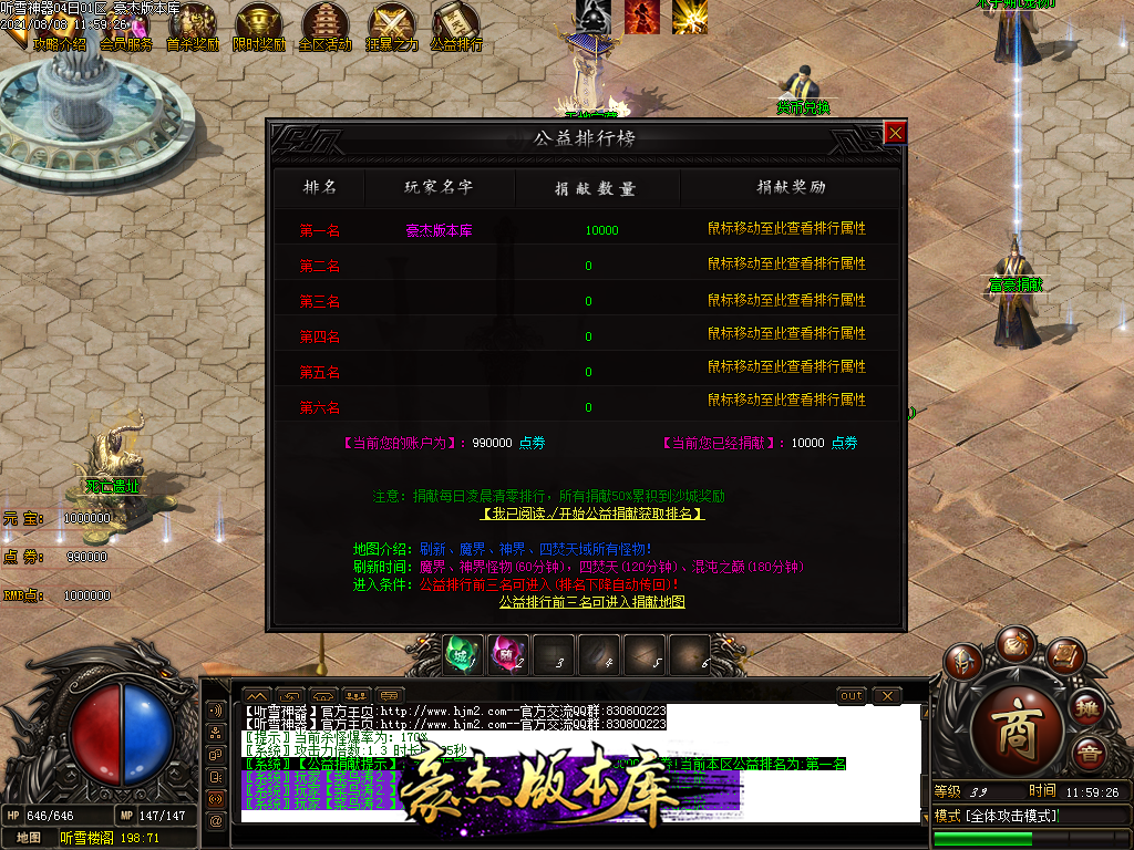 三,公益排行,属性游鞭尸BUFF,建议积极参与,只要点卷捐献,不限制玩家充值!每天12点清零重置数据!