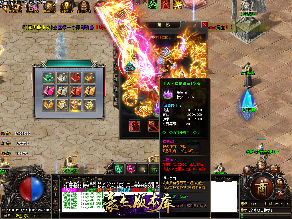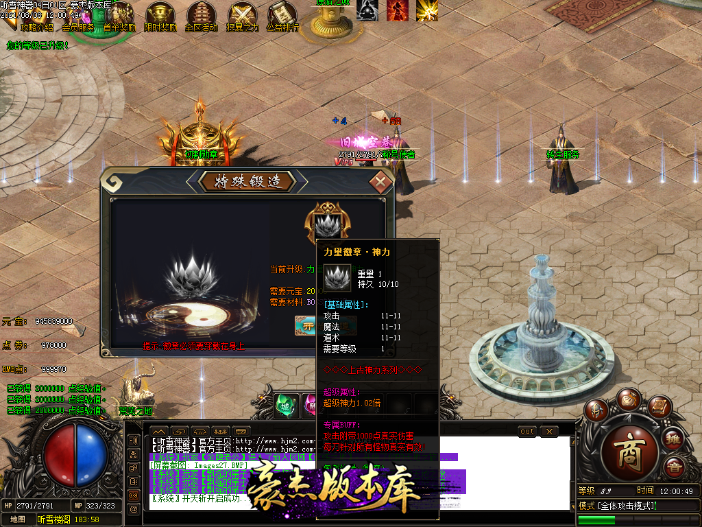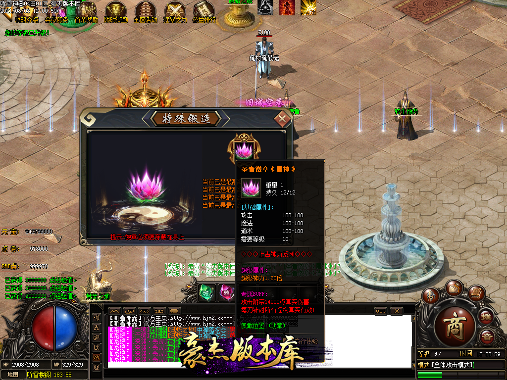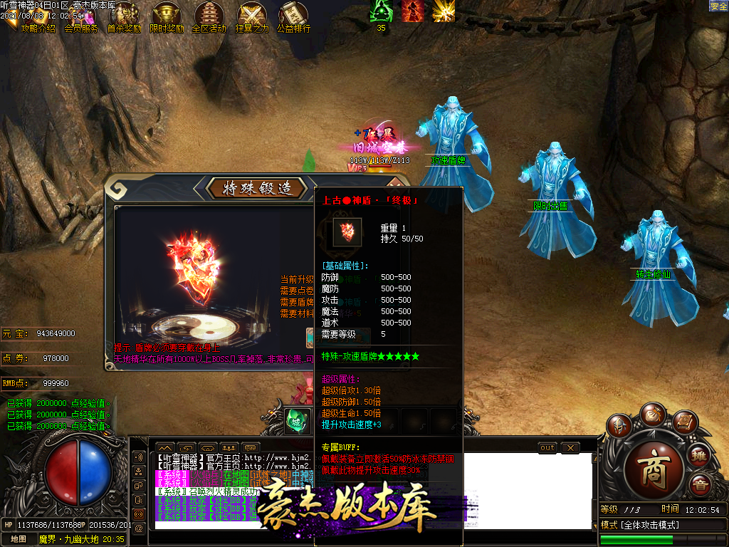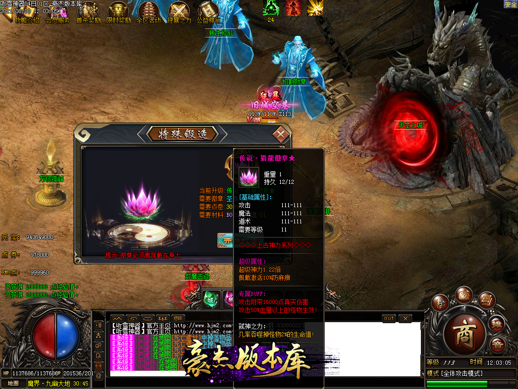 终极勋章20级则是刀刀秒杀怪物1%的血量+30%几率秒杀怪物20%血量,合成需要点卷和BOSS灵魂,游戏暴 + 100RMB点