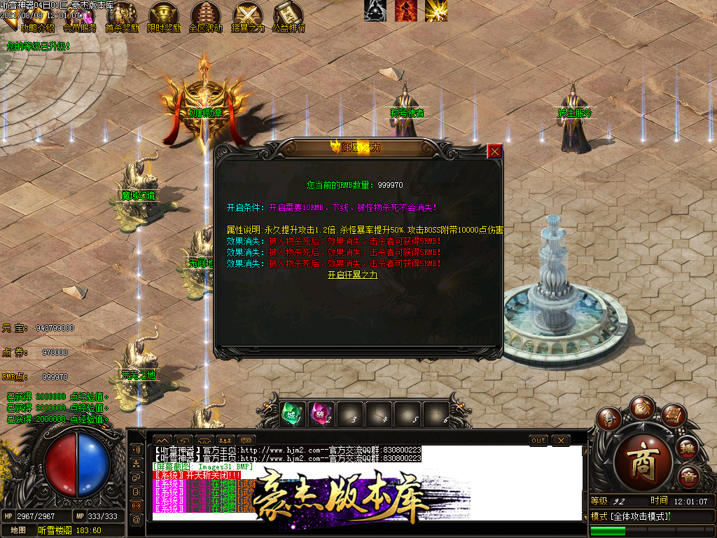 二,狂暴之力,才能拥有挂机功能,有条件的建议花个10RMB开启。提升不少属性!,怪物打死了不会掉!