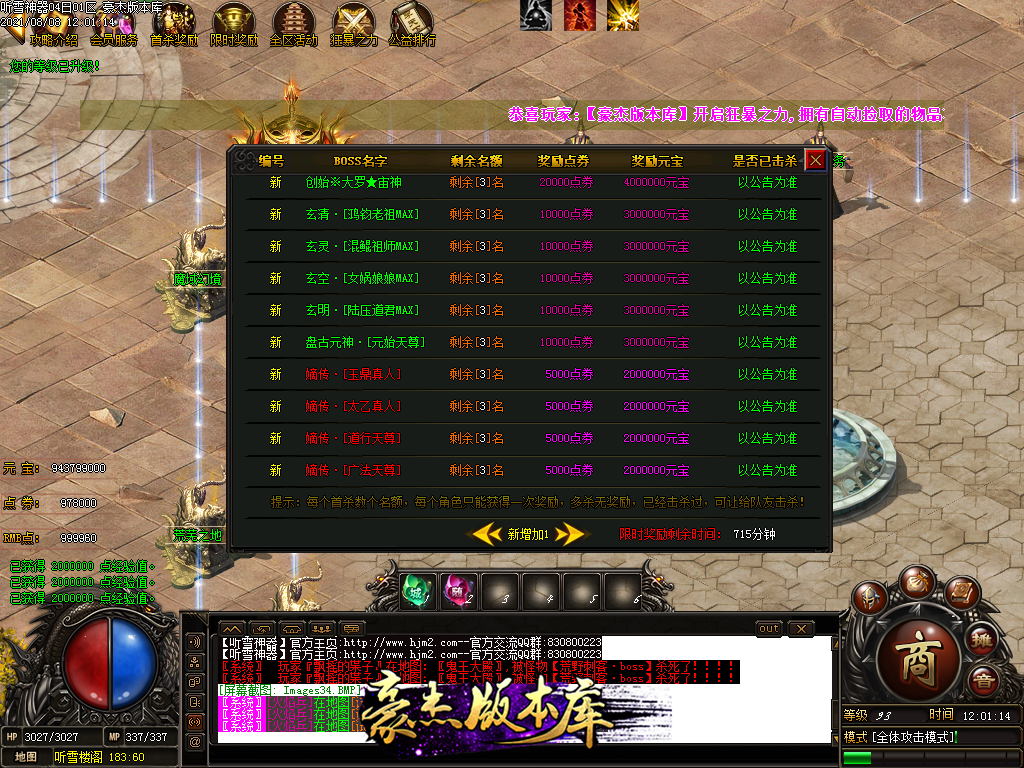 注:由于开区演示站点不定时更新更换版本 具体以本帖演示为准
