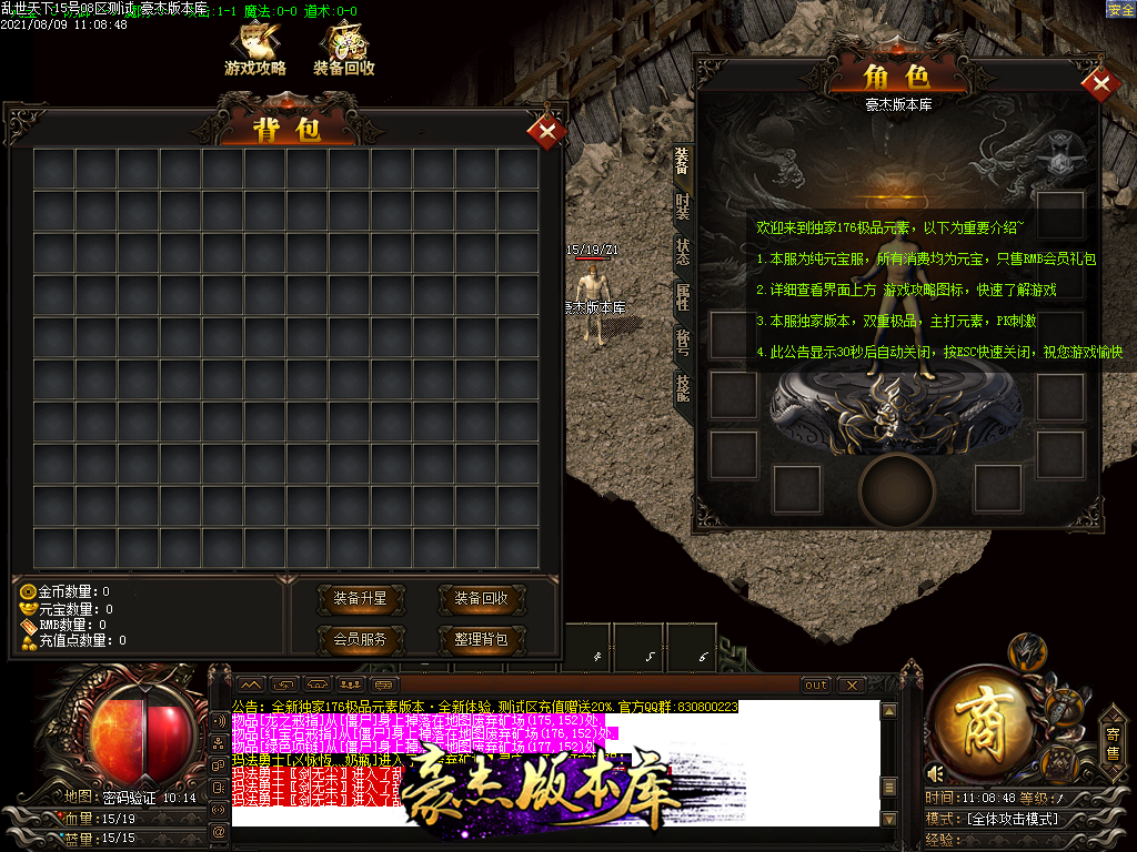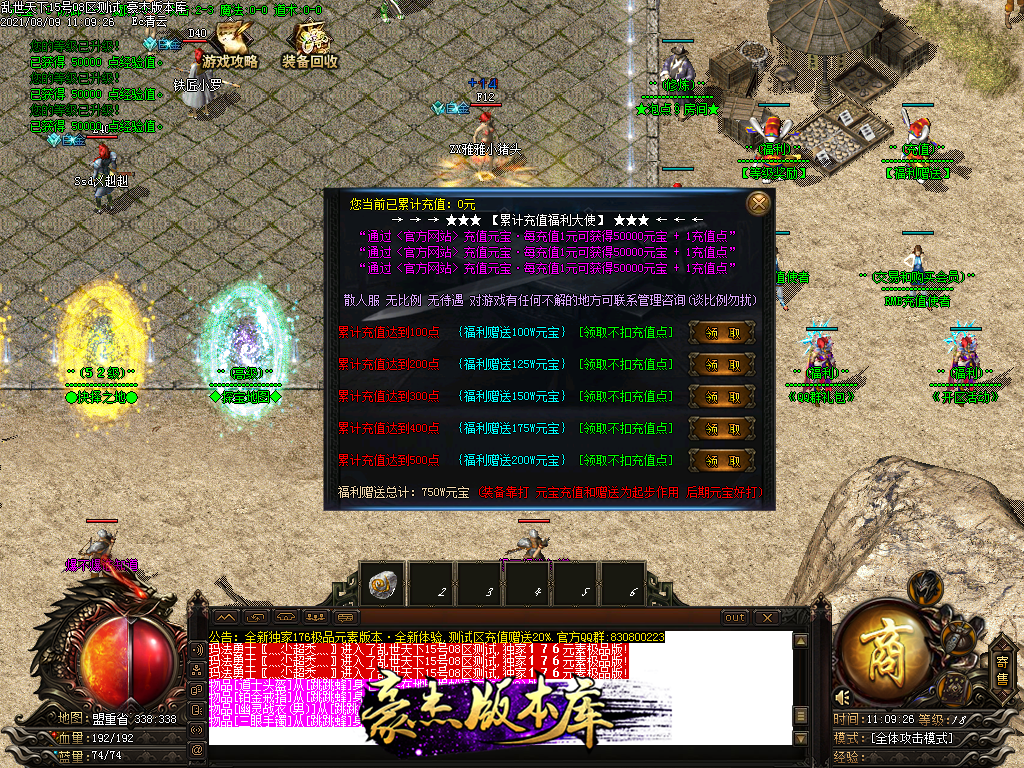 如要直接玩战士,推荐充元宝 快速提升等级 领取等级奖励物品(满回血石+满元素是战士标配),横扫地图。