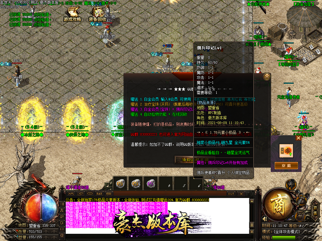 付费购买-乱世1.76小极品元素打金三职业传奇版本_带假人-ESP插件_自动拾取