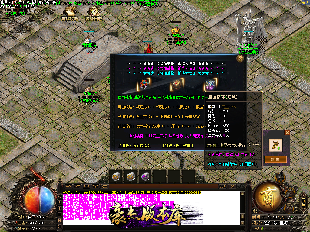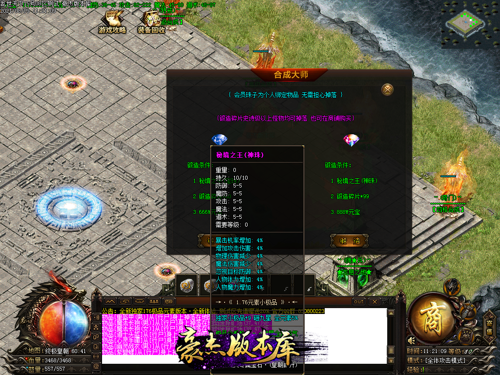 例如打到极品+9的战魂戒指 铸9星随机到6点攻击 就是极品+15的战魂戒指 双重极品玩法 让你不再枯燥!!