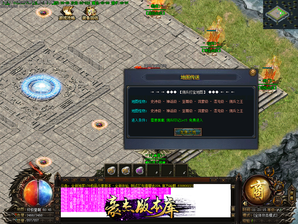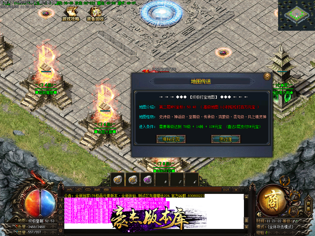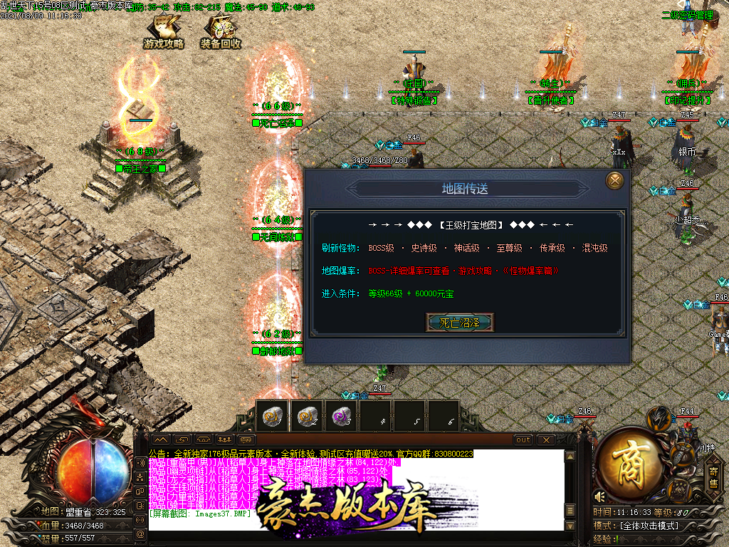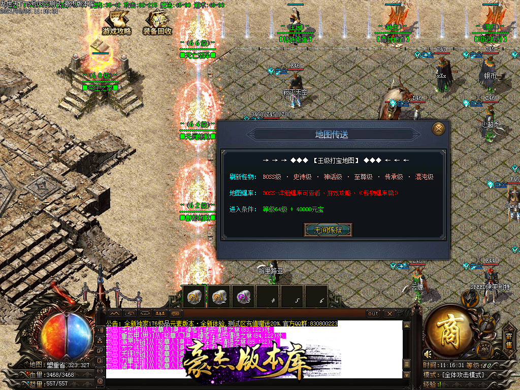 以下为神话级和至尊级 所有地图等级+转生等进入 绝无RMB地图
