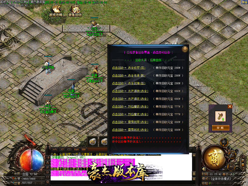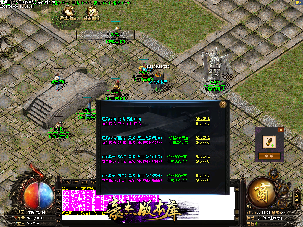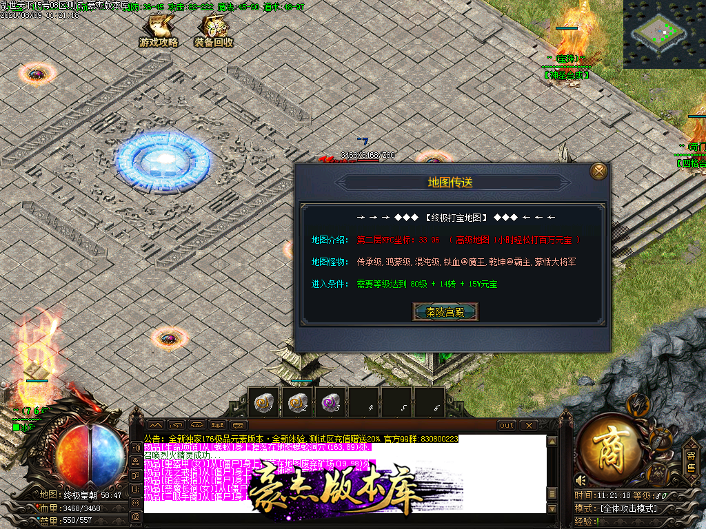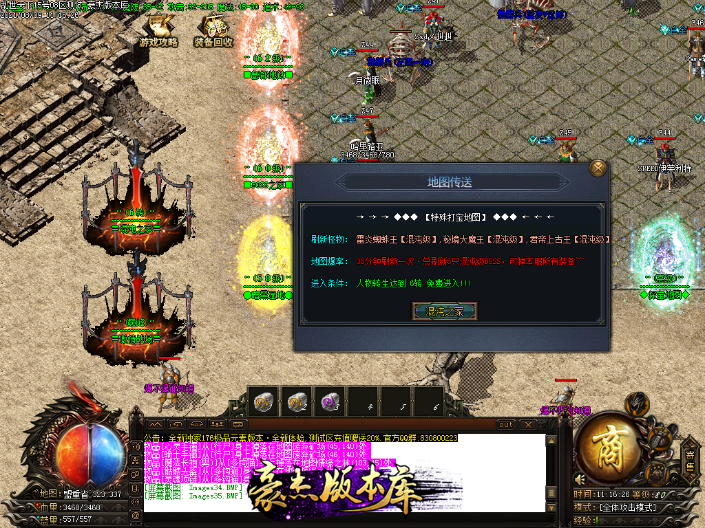 以下为神话级和至尊级 所有地图等级+转生等进入 绝无RMB地图