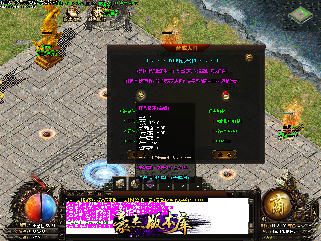 游戏介绍1.本服承诺无任何RMB合成 所有消费均为〈元宝〉 元宝决定一切 人人可玩 不充一分钱花时间也可毕业