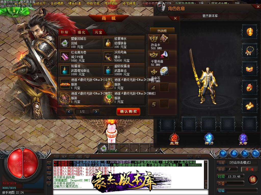 付费购买-32米逍遥忘忧神器打金单职业传奇服务端_带假人_盘古插件_光柱_红蓝行会_沙城捐献