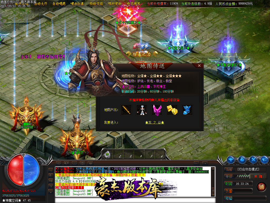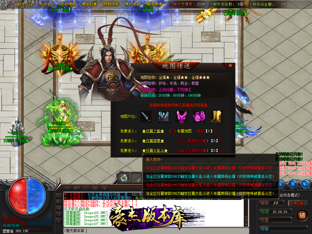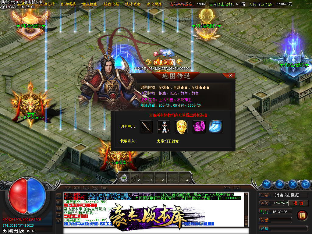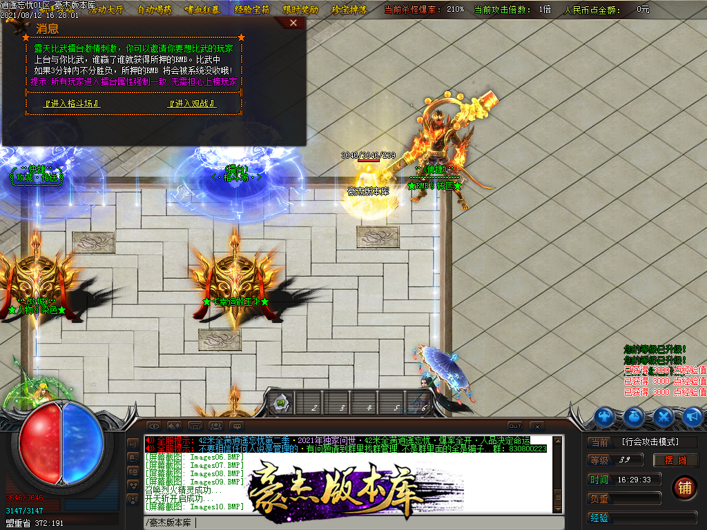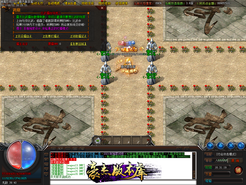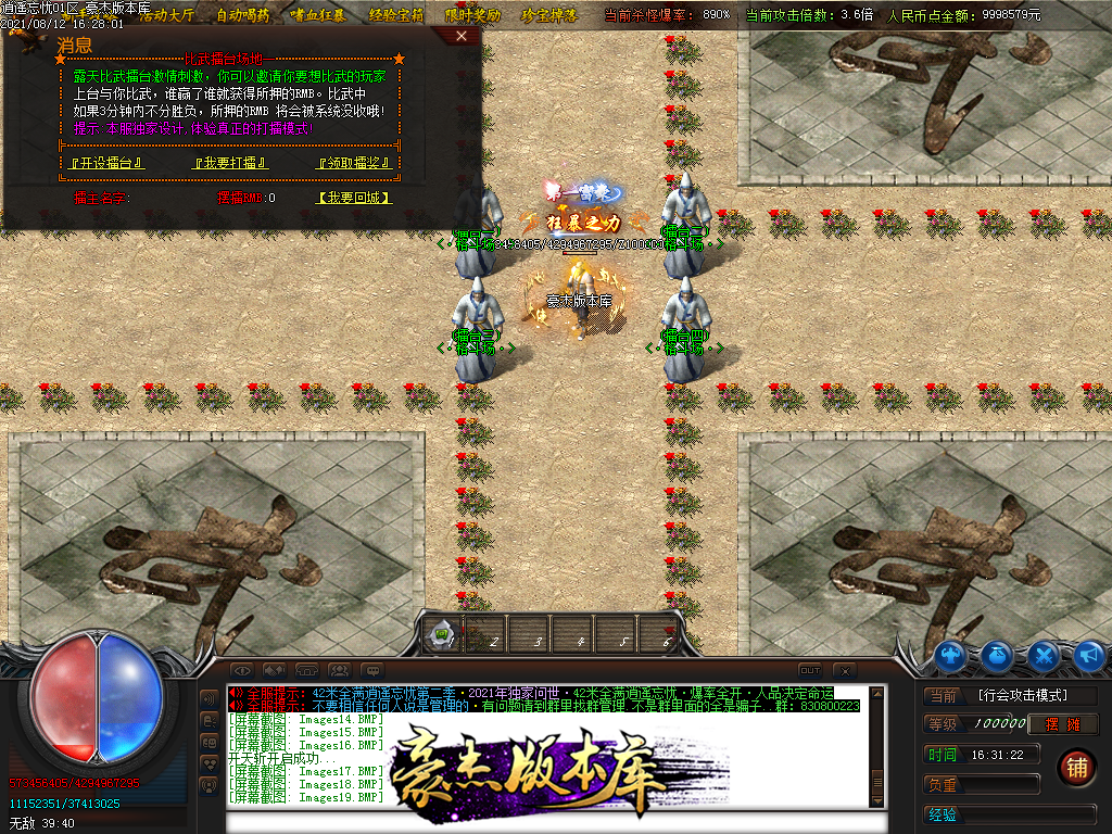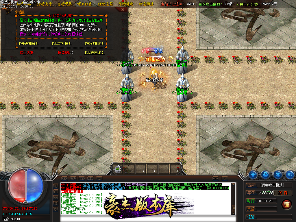 另外打激情玩家可参与下午4点合区后的擂台地图无限激情!!!装备爆爆爆!!!Rmb点压压压!!!
