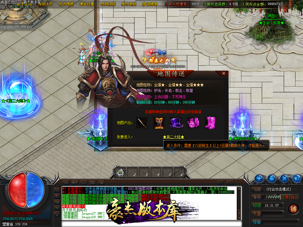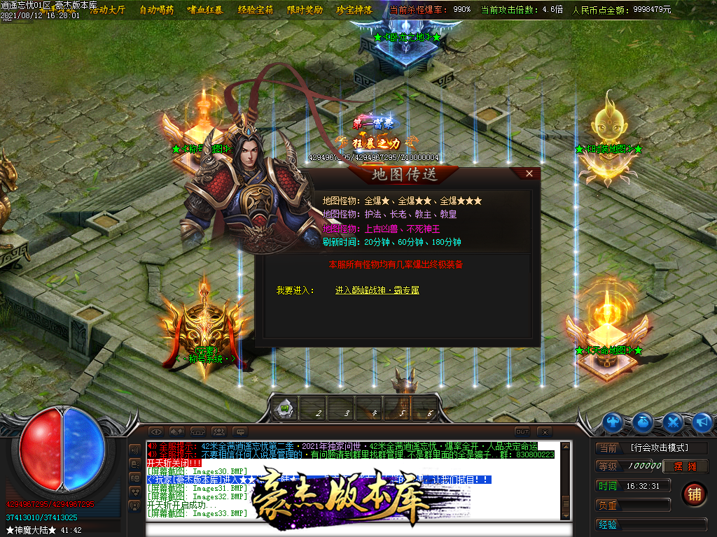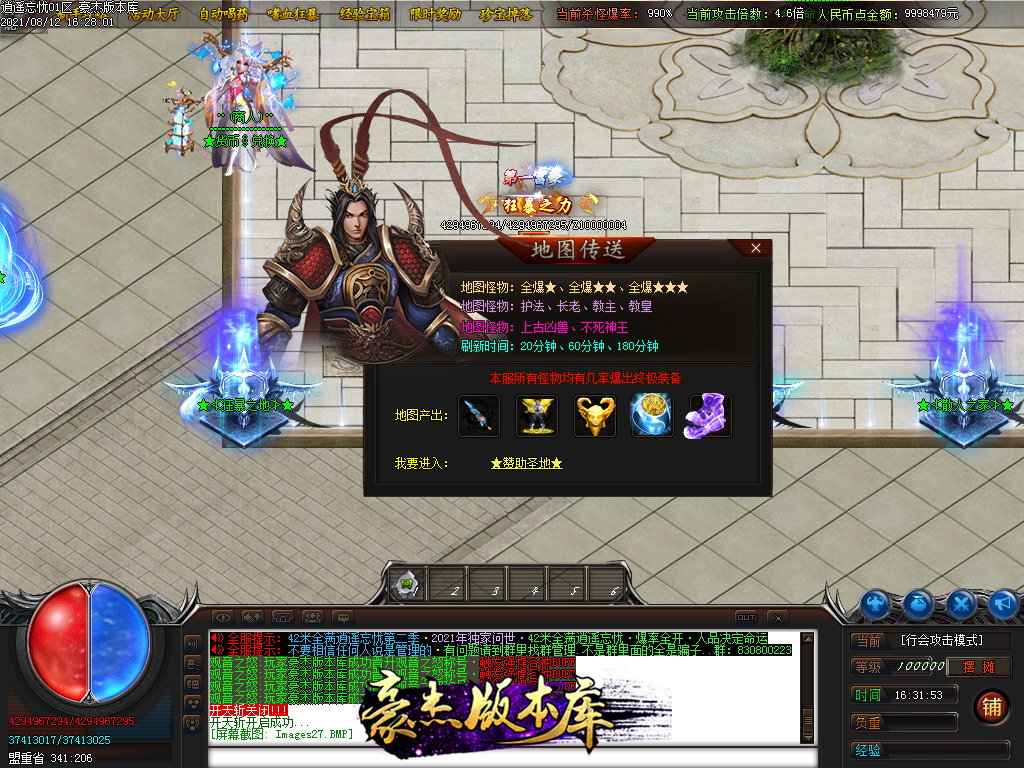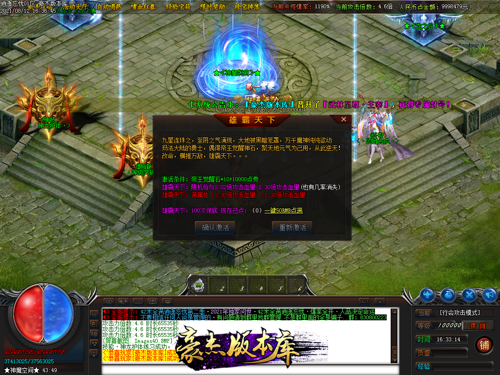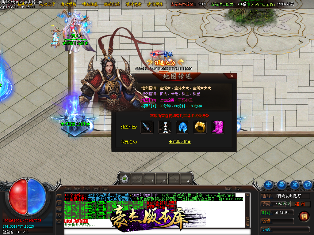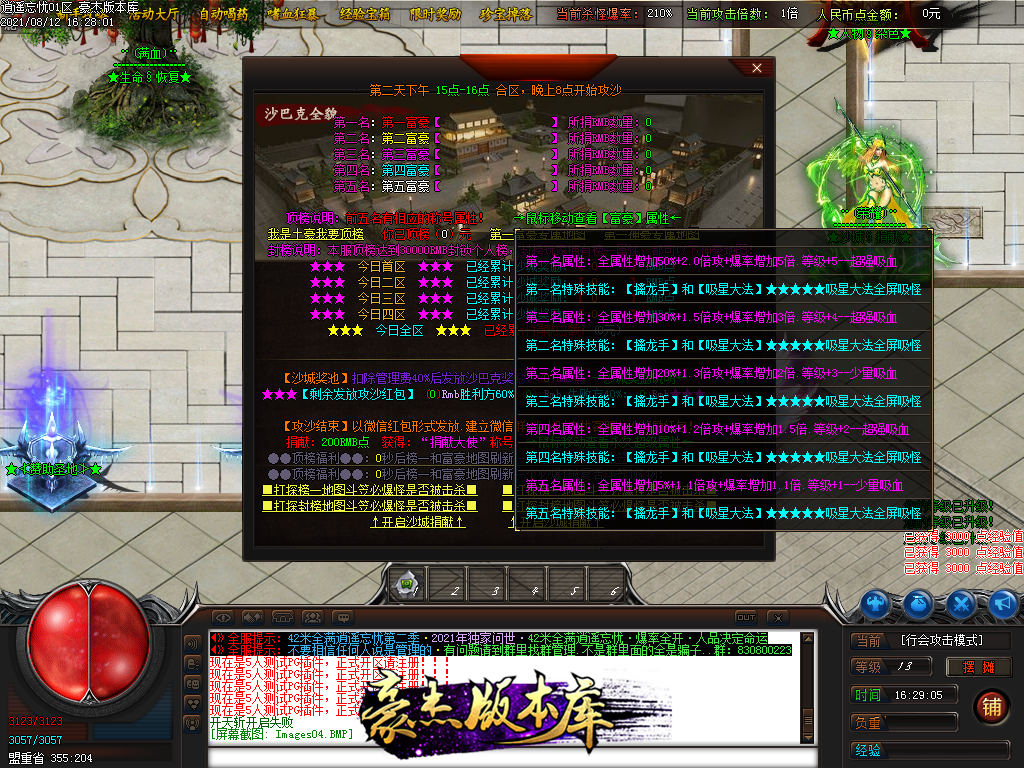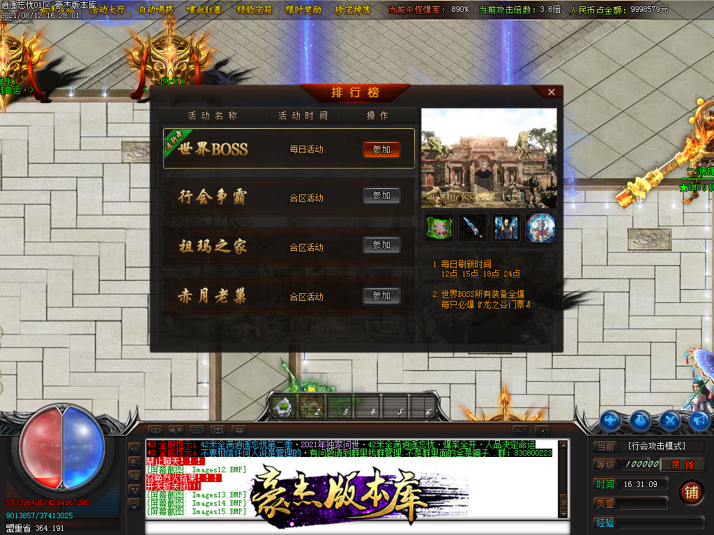 另外打激情玩家可参与下午4点合区后的擂台地图无限激情!!!装备爆爆爆!!!Rmb点压压压!!!