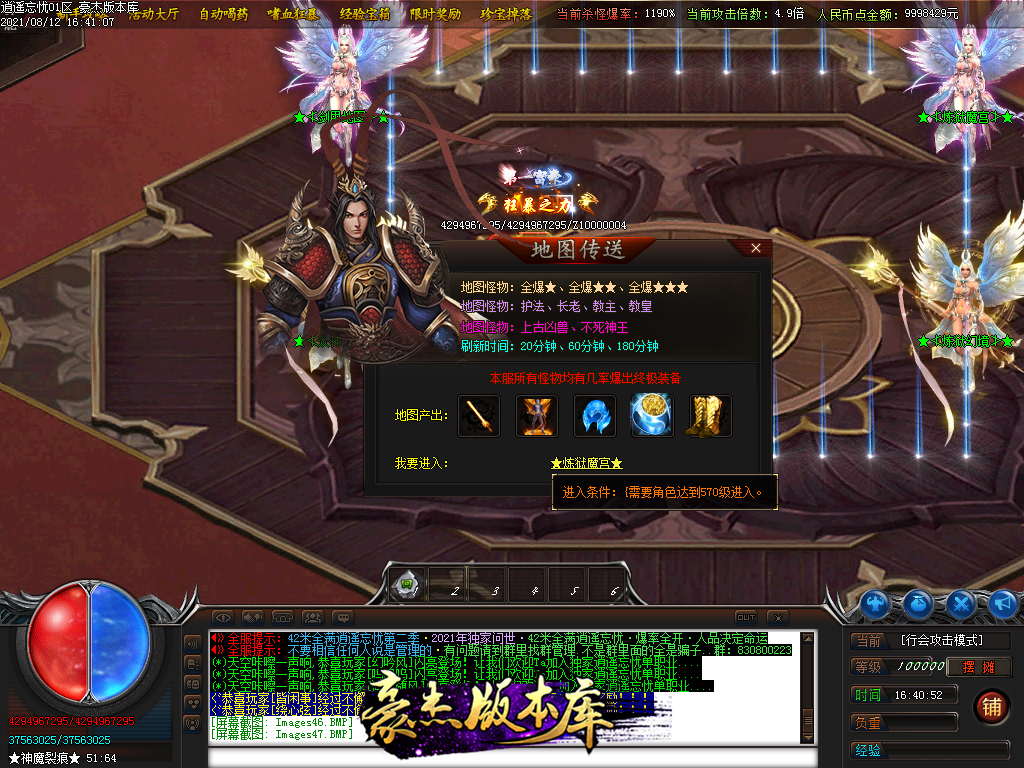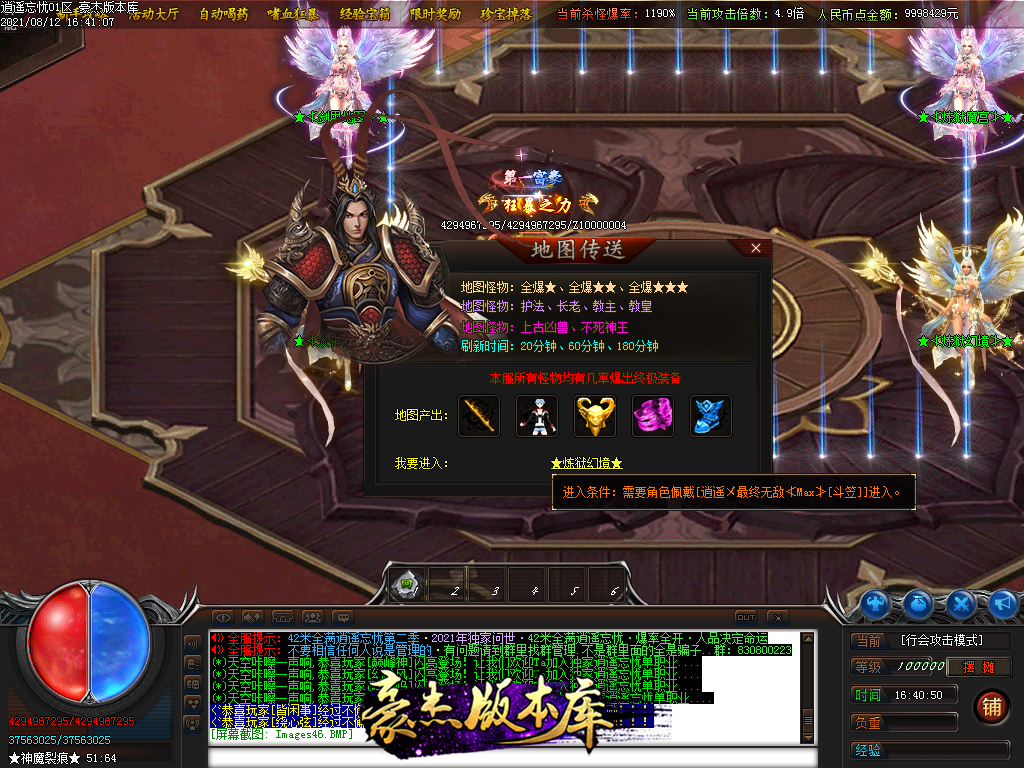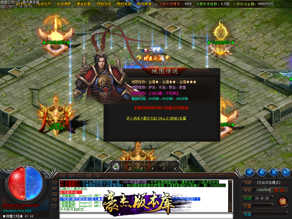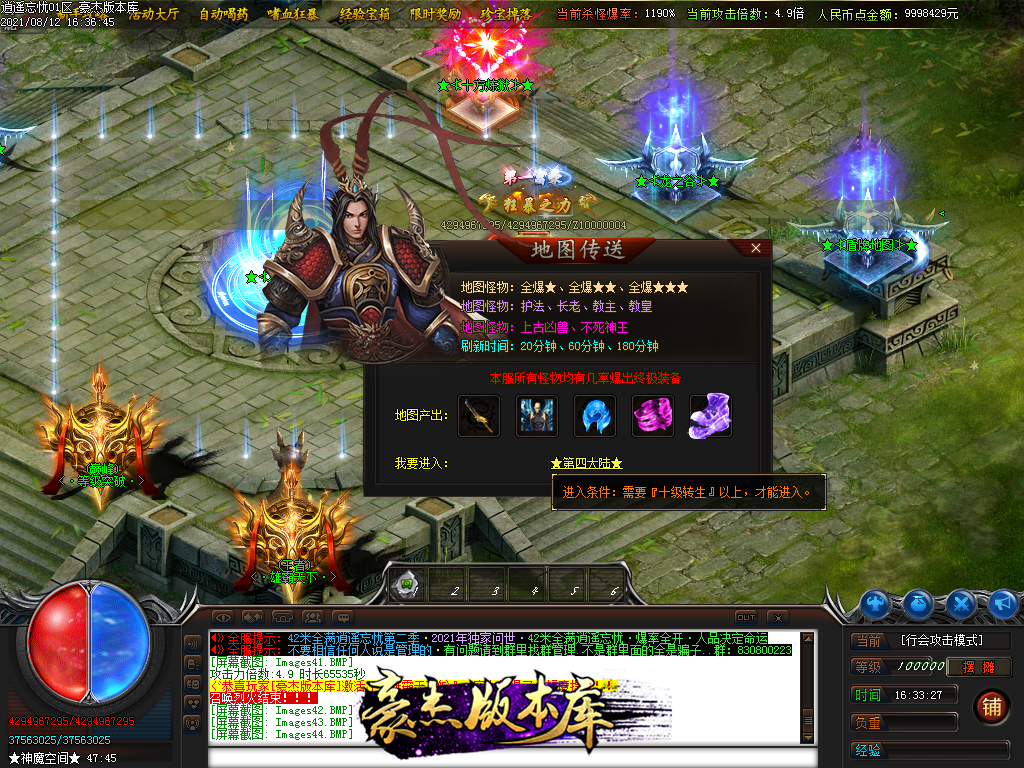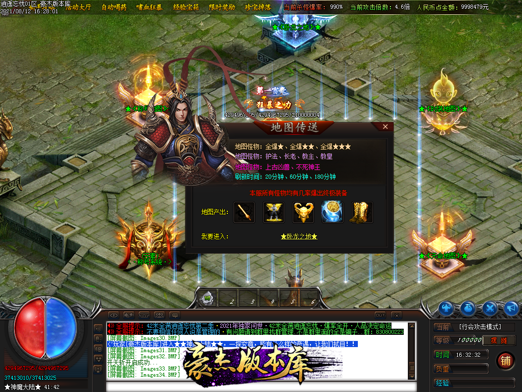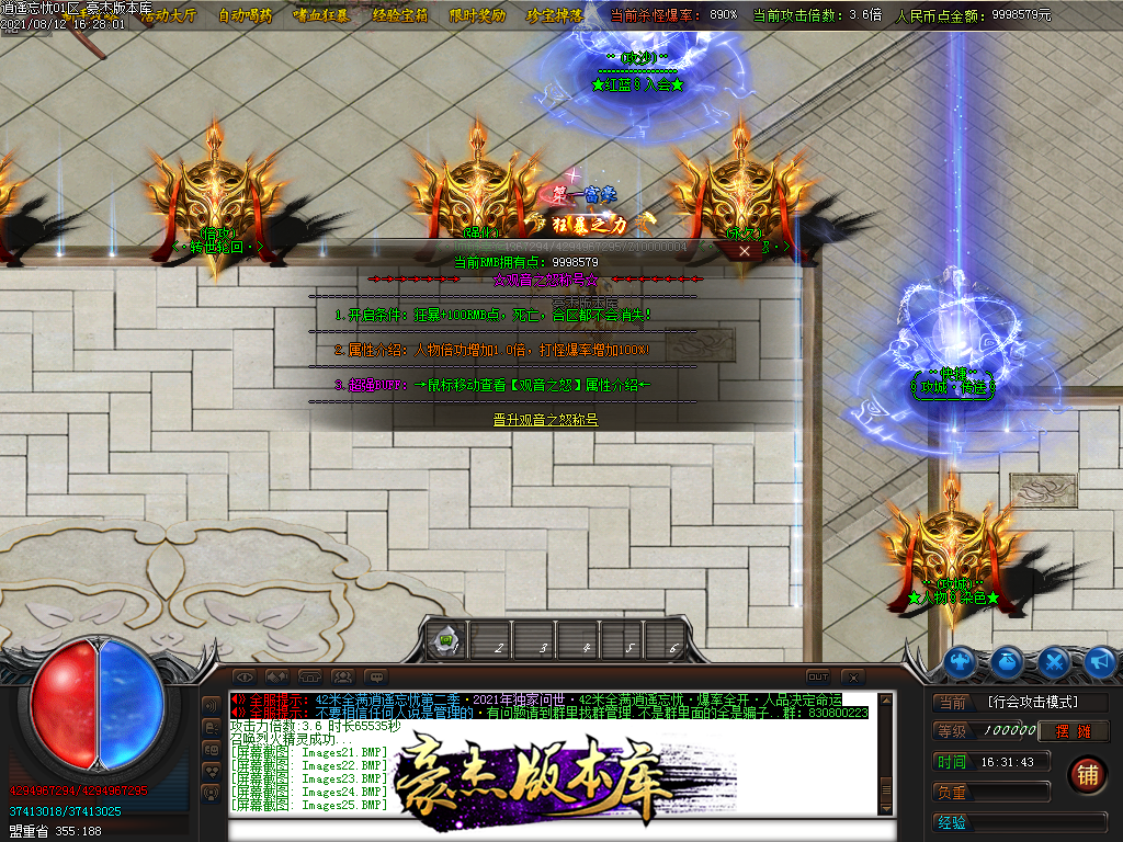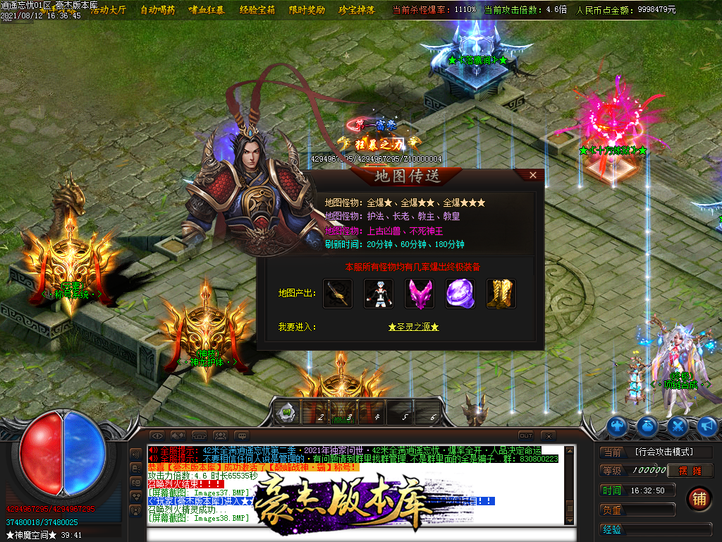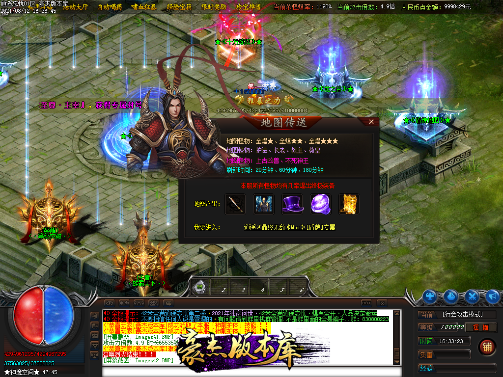 另外打激情玩家可参与下午4点合区后的擂台地图无限激情!!!装备爆爆爆!!!Rmb点压压压!!!