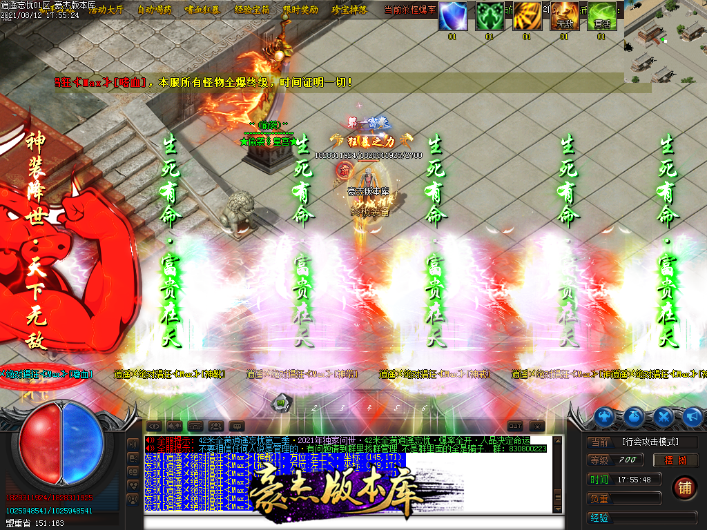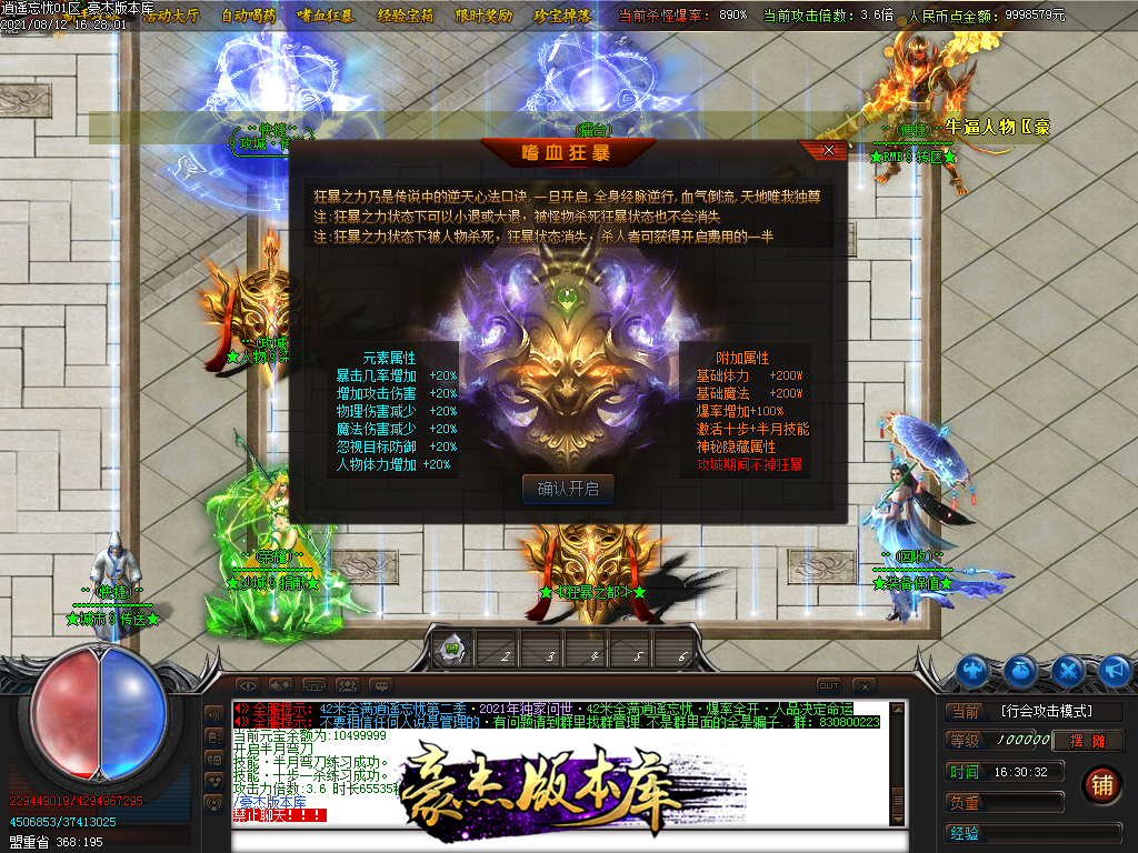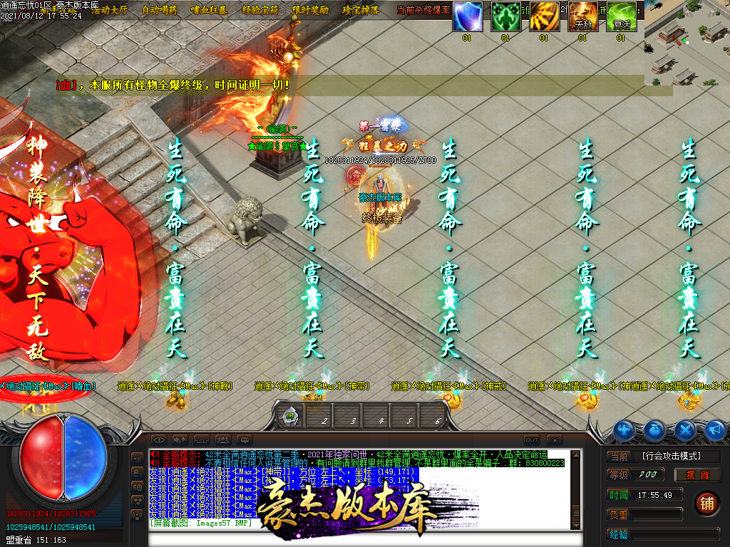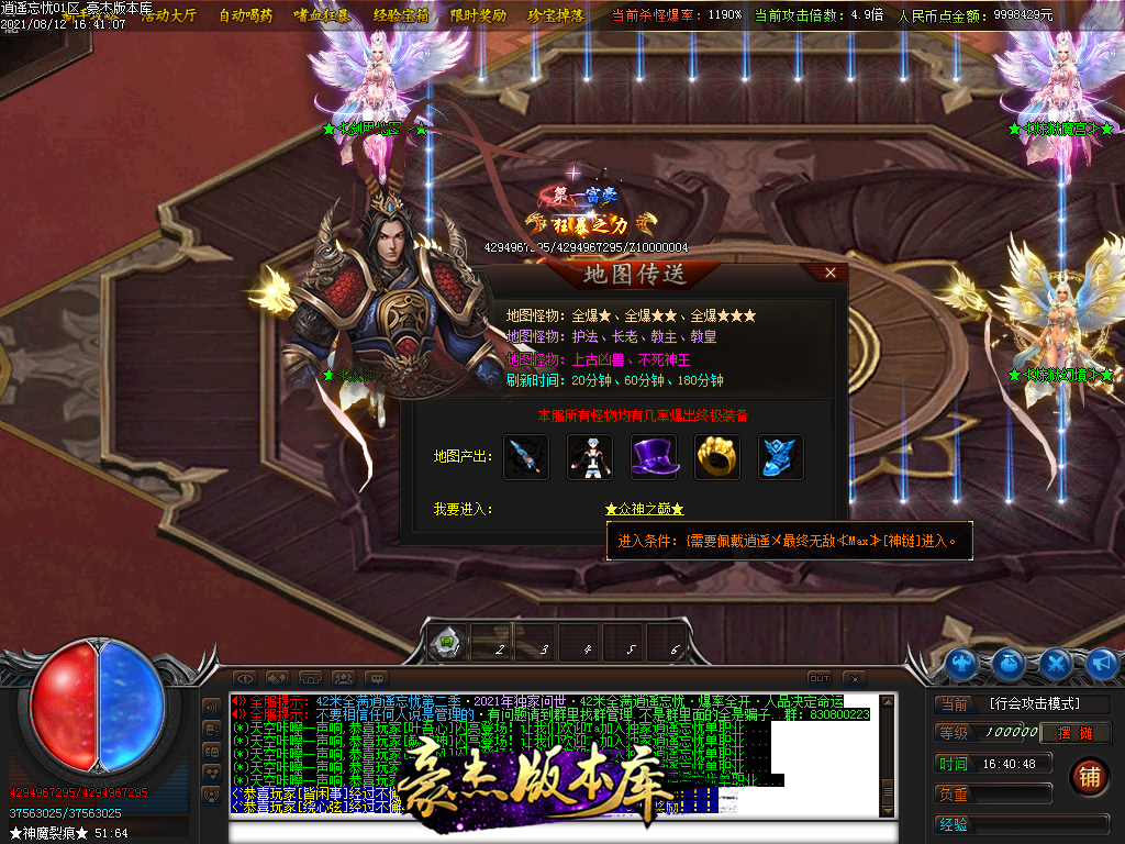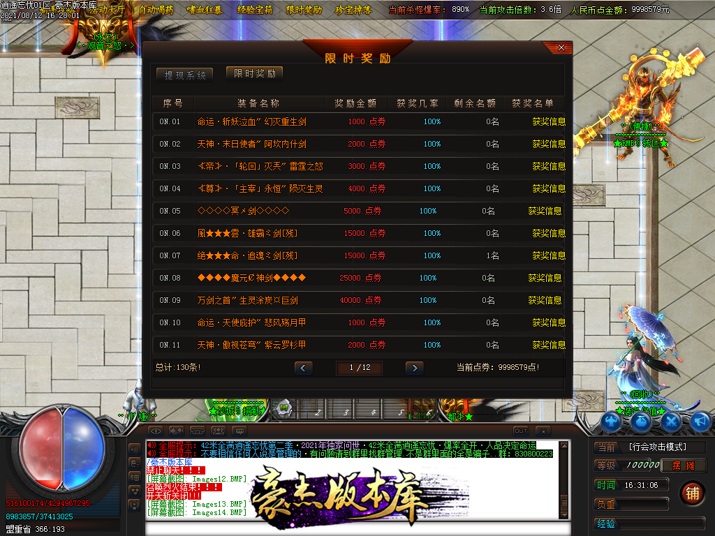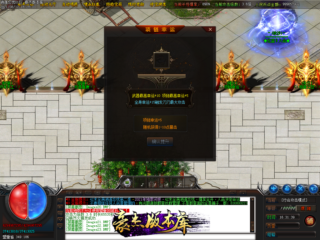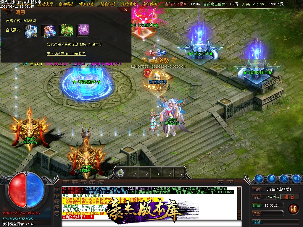 另外打激情玩家可参与下午4点合区后的擂台地图无限激情!!!装备爆爆爆!!!Rmb点压压压!!!