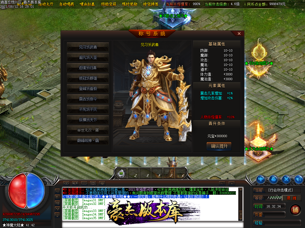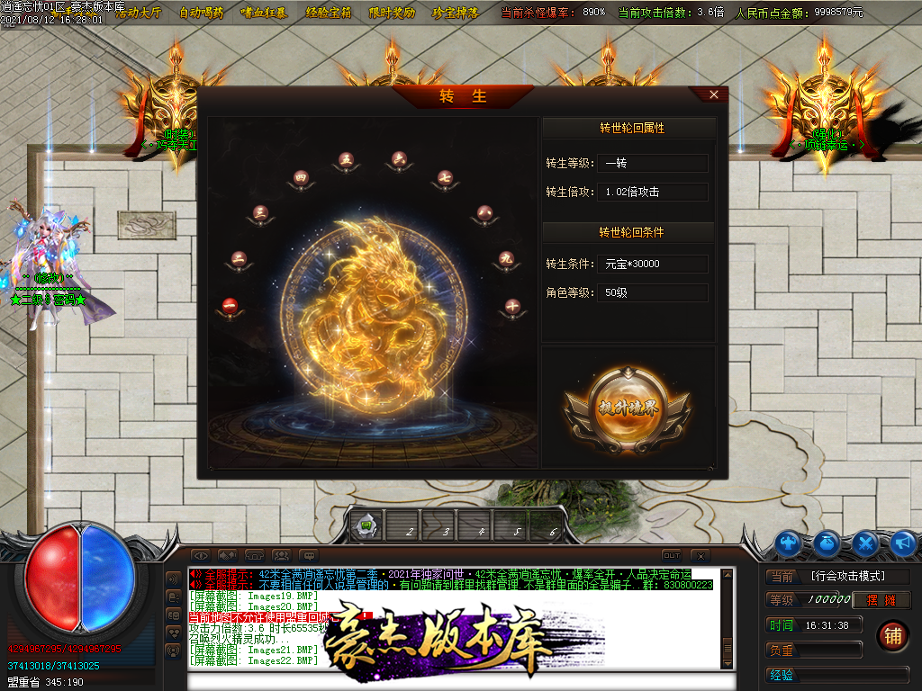 攻沙条件( 沙城捐献,十级转生,满称号,满点霸)