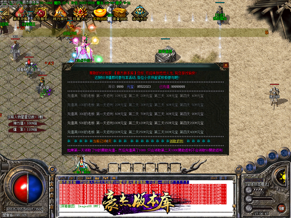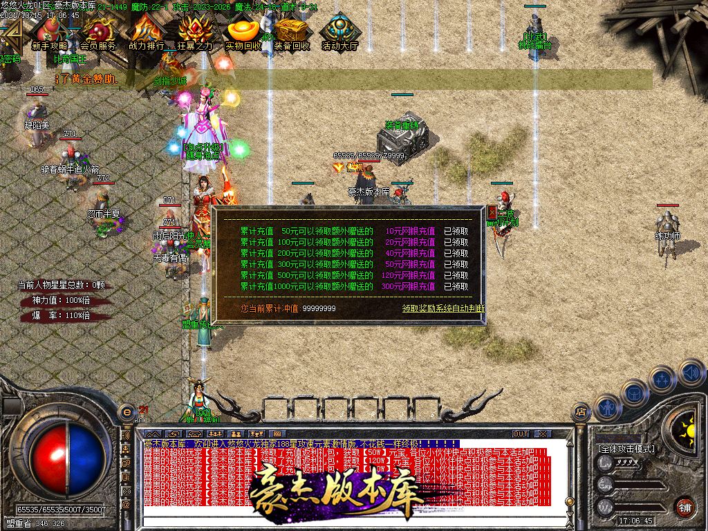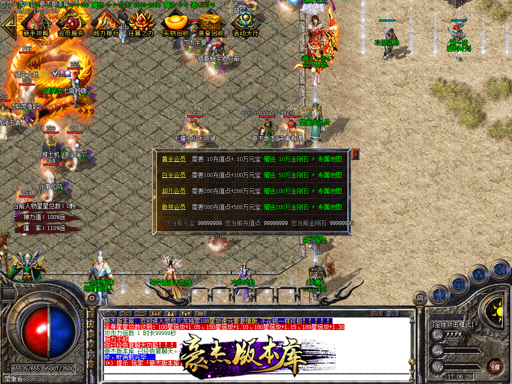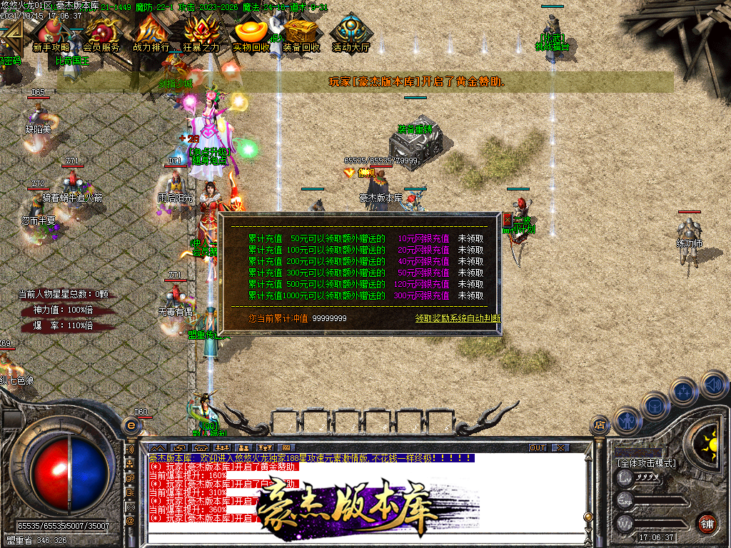 会员58 狂暴10元 沙城捐献30元 98元满消费 其余全可打