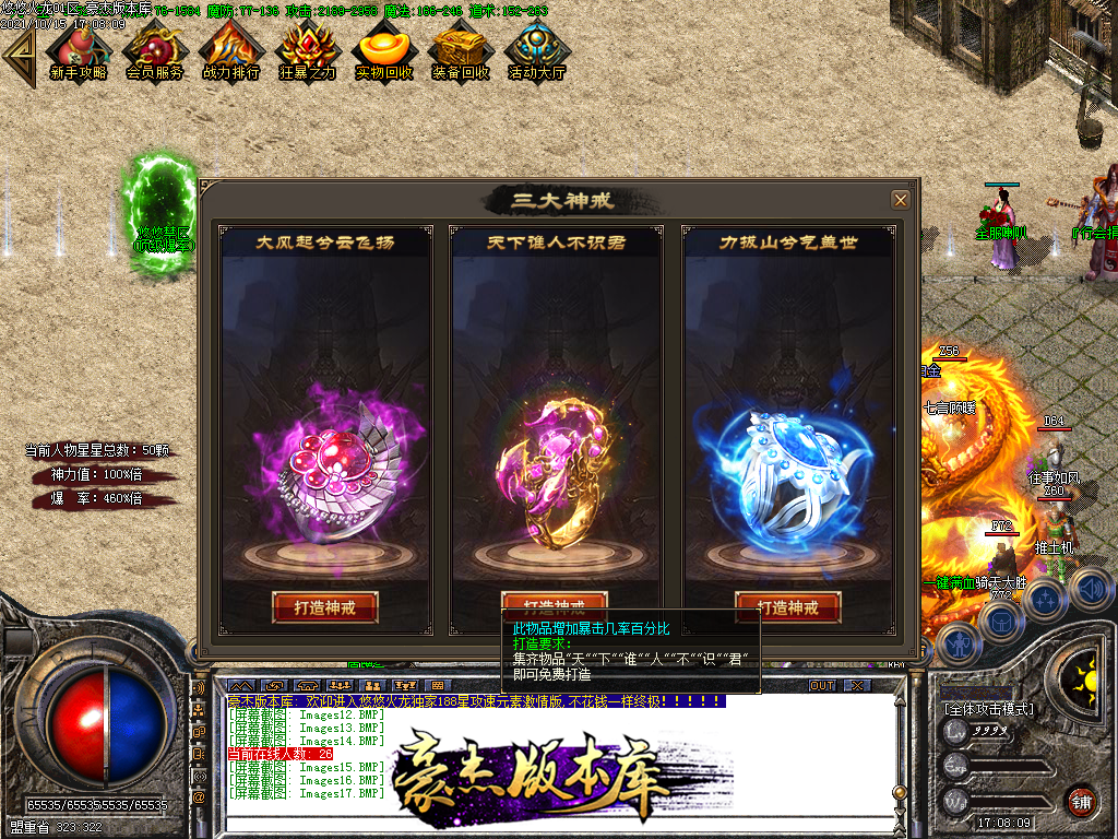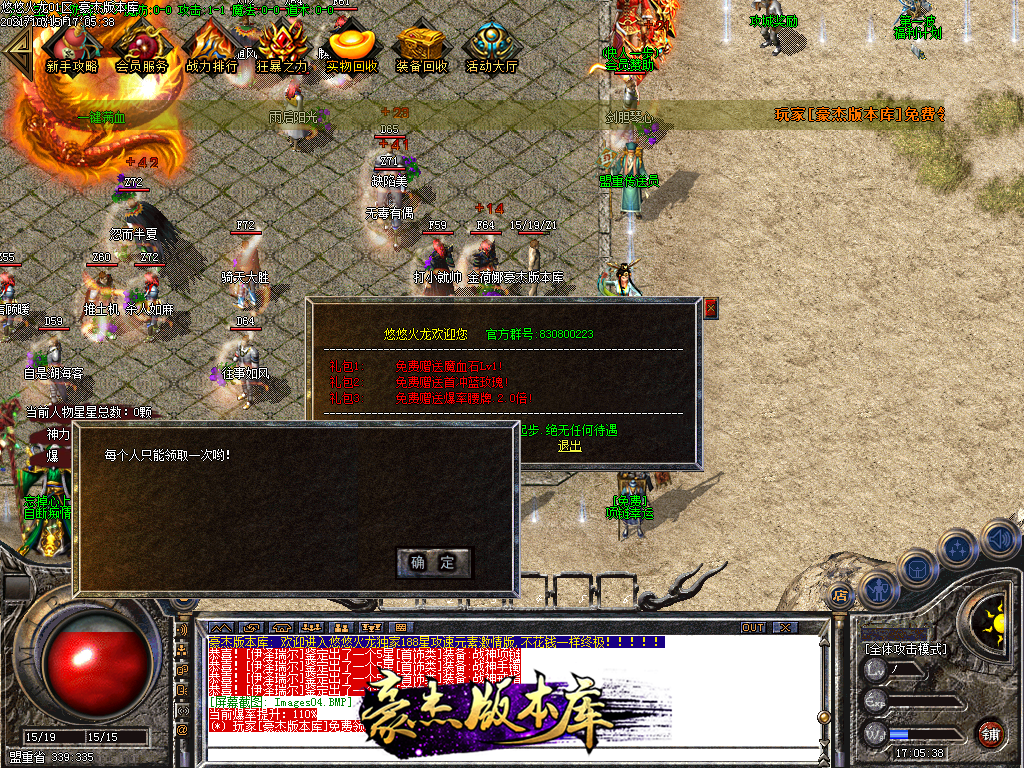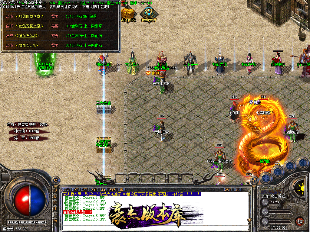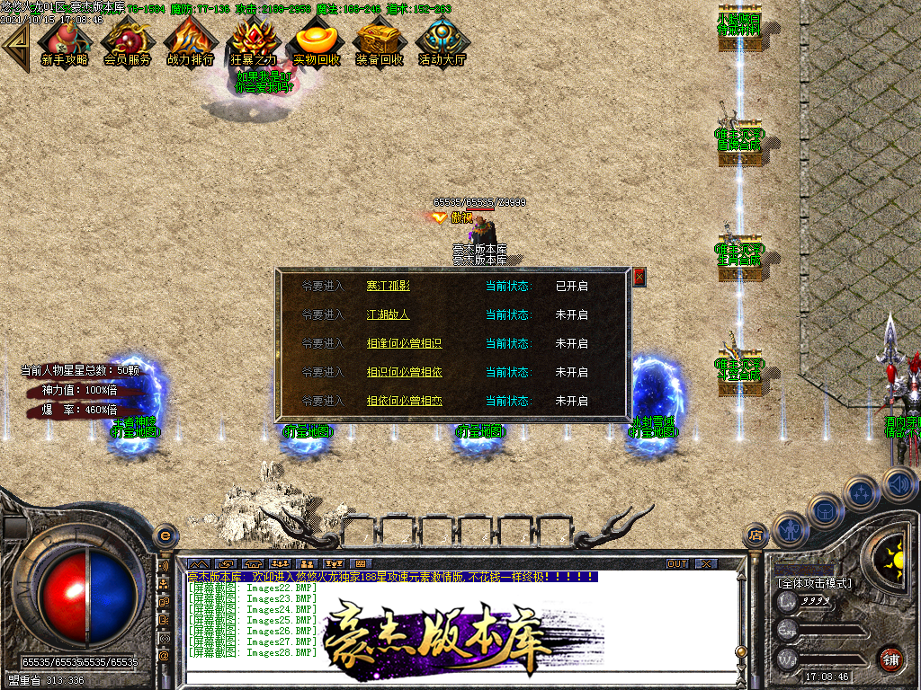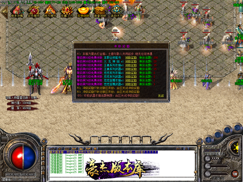 会员58 狂暴10元 沙城捐献30元 98元满消费 其余全可打